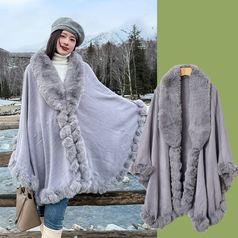 2025 봄 신작 케이프 재킷 여성 가을, 겨울 후드 모피 칼라 여신 기질 느슨한 술 외부 목도리