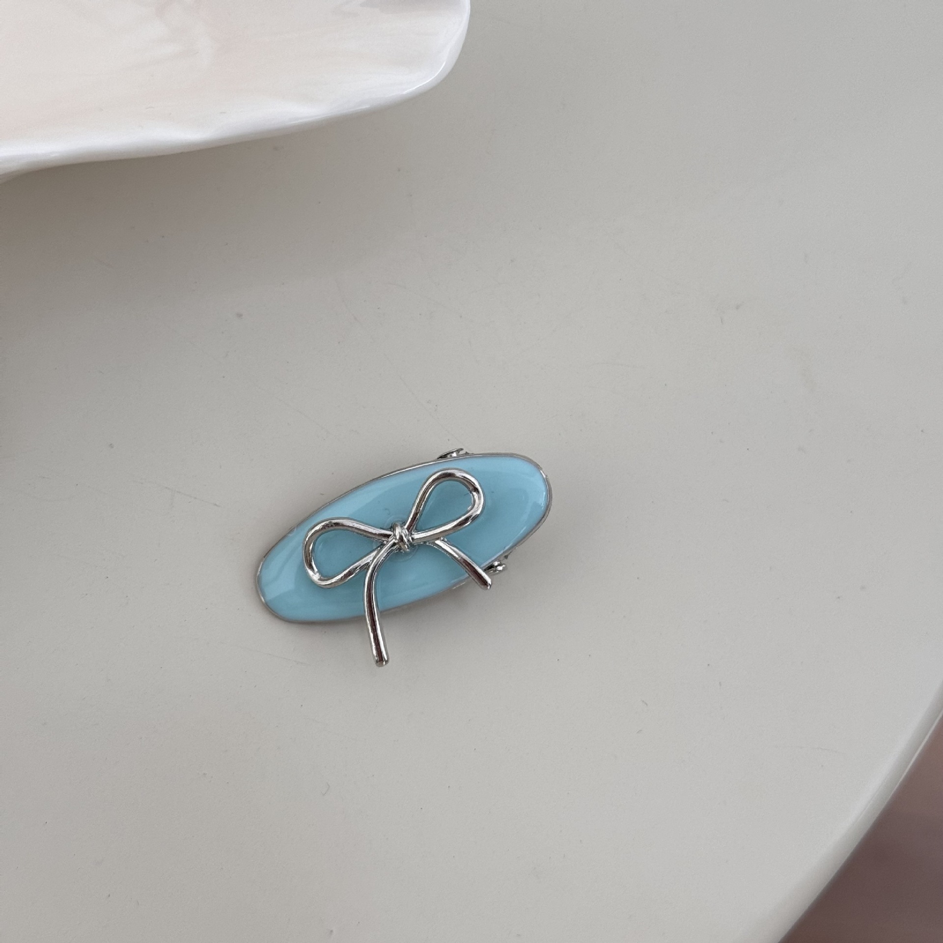 한국식 드롭 글레이즈 메탈 리본 작은 머리핀 앞머리 클립 새로운 달콤하고 시원한 소녀 사이드 클립 이마 클립 머리핀