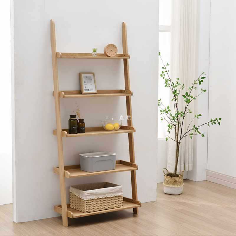 ✅ 북유럽 오크 책장 사다리형 수납 선반 단단한 나무 책장 바닥에서 천장까지 다층 거실 사다리 벽 선반 계단식스토어 가기