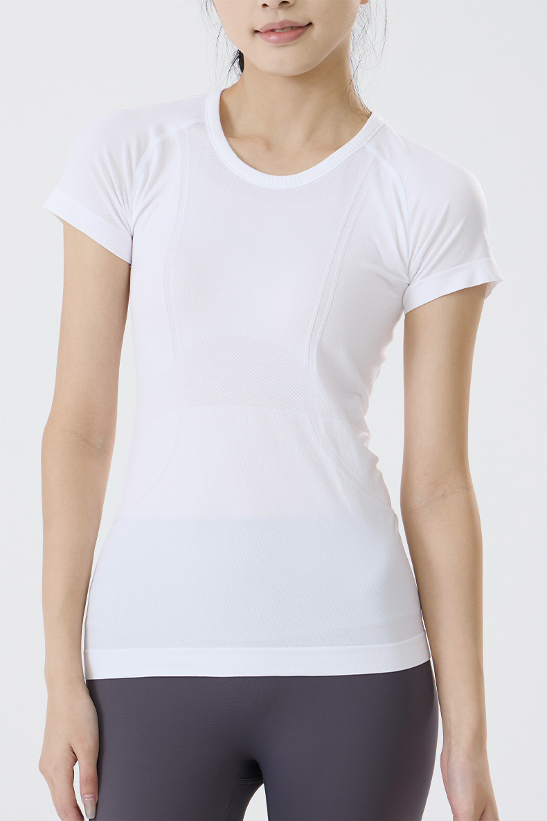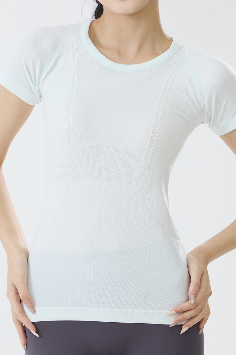 요가 의류 여성 요가 티셔츠 통기성 슬리밍 빠른 건조 달리기 스포츠 피트니스 벌거 벗은 원활한 스포츠 짧은 소매