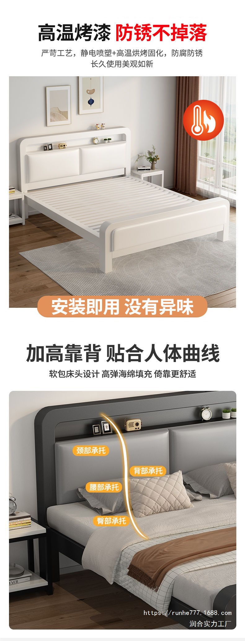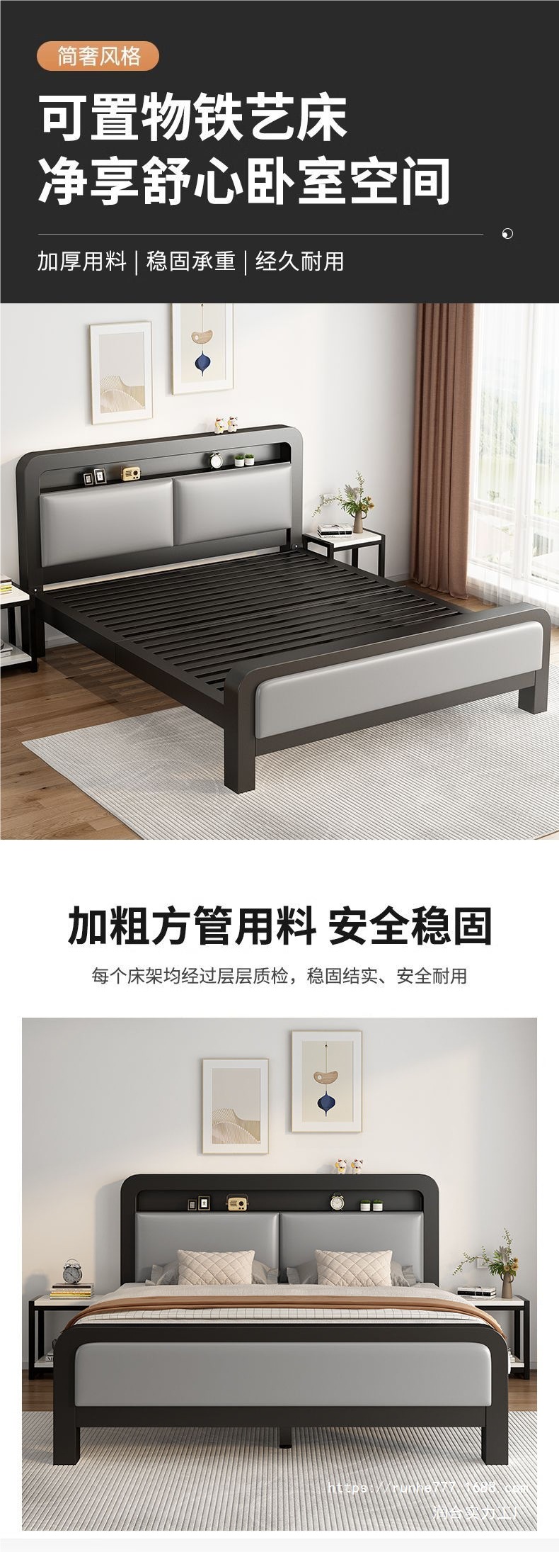 연철 침대, 바닥에서 천장까지 이어지는 더블 침대, 마스터 침실, 심플하고 고급스러운 기숙사 임대 주택, 싱글 침대, 철제 프레임 침대, 강화 및 두꺼워짐스토어 가기