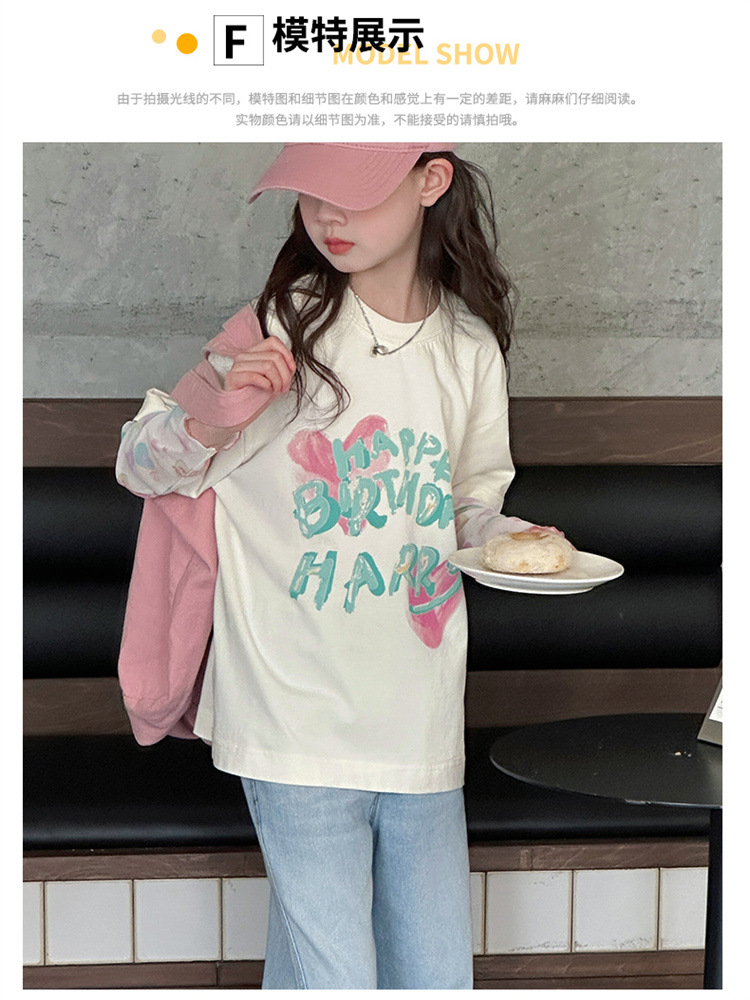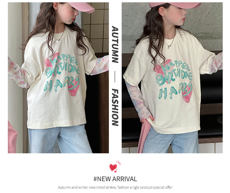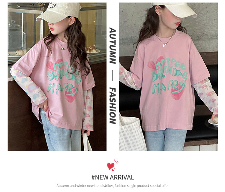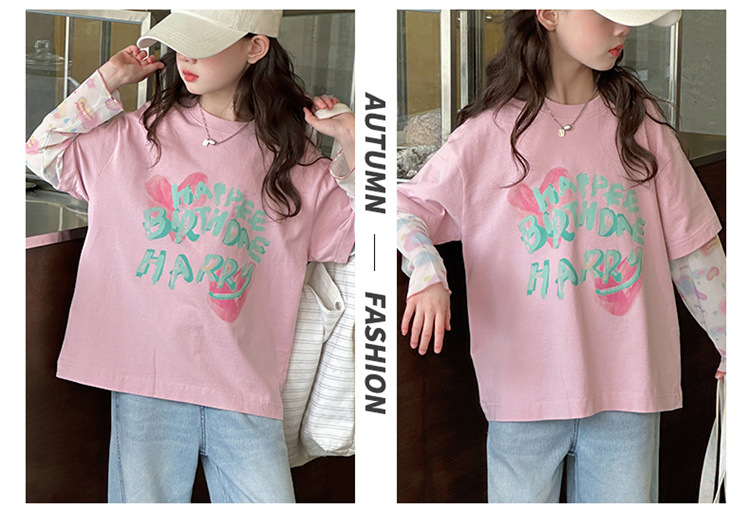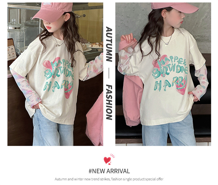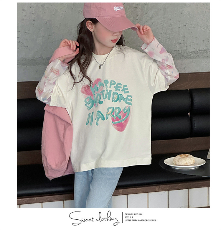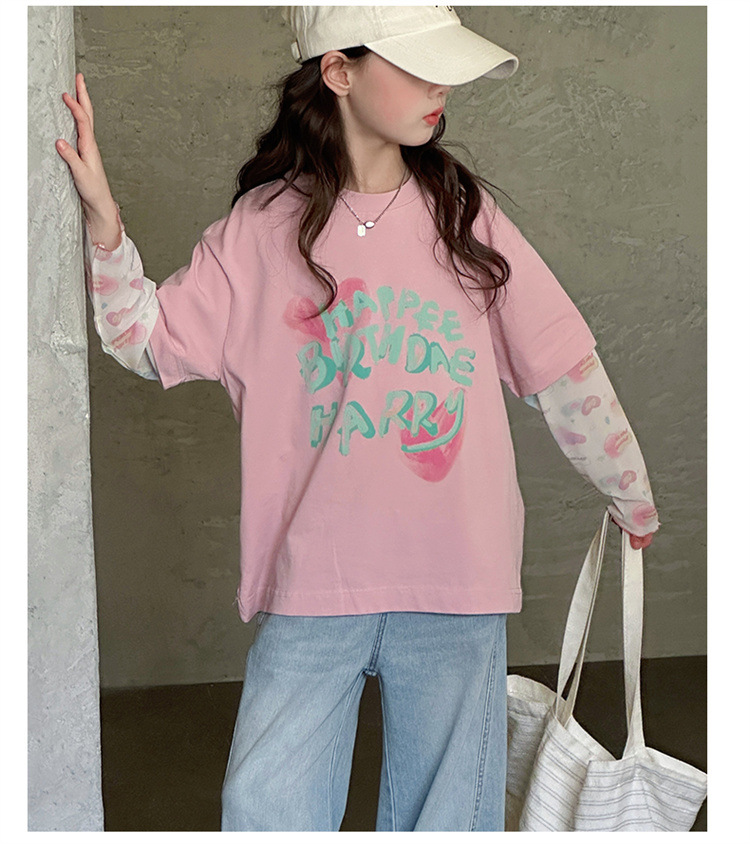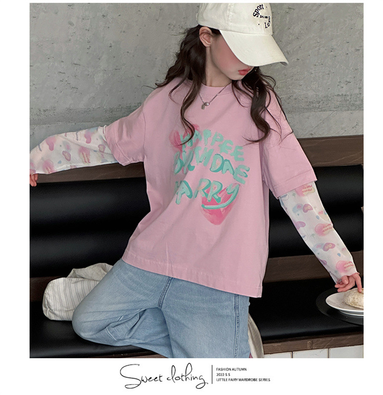 소녀 가짜 투피스 선스크린 슬리브 티셔츠 여름 2025 새로운 소녀 유행 느슨한 편지 안티 모기 탑스토어 가기