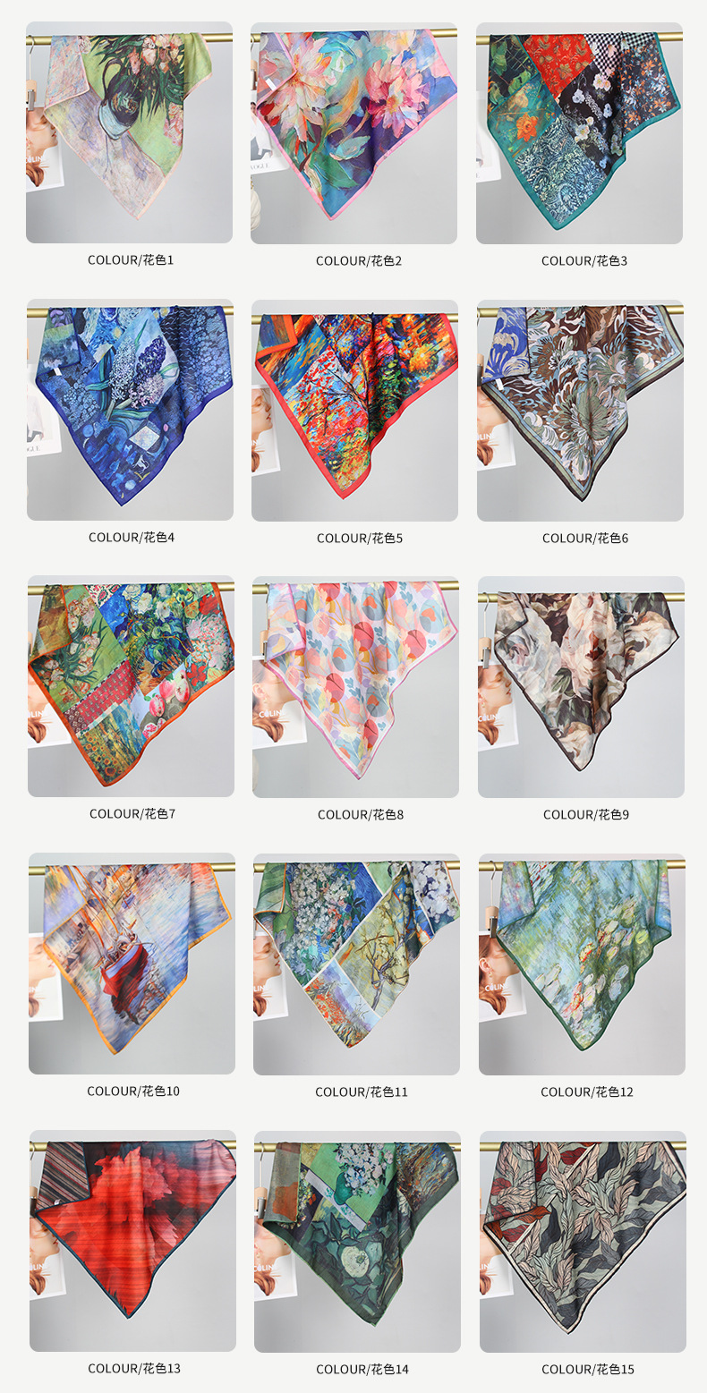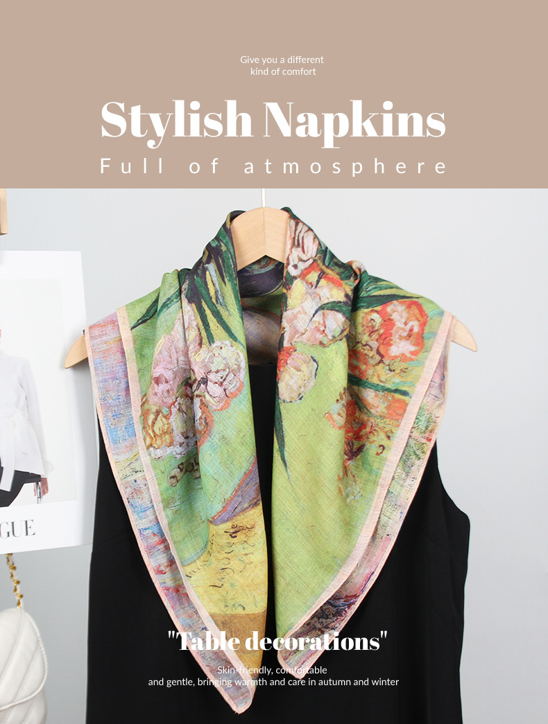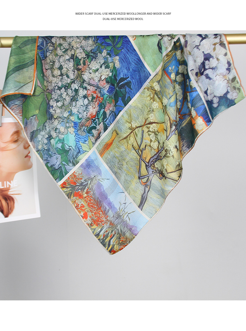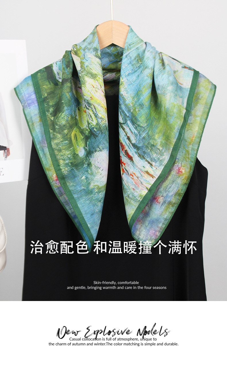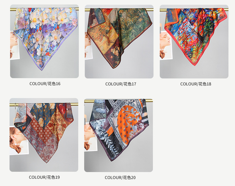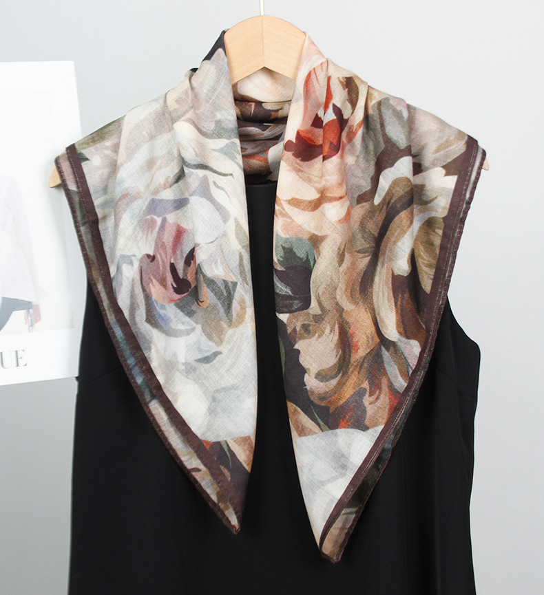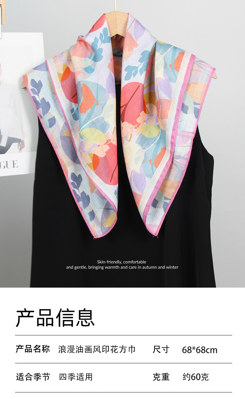예술적 꽃 우아한 양면 벨벳 스퀘어 스카프 서양식 여성 로맨틱 유화 스타일 헤드 스카프 올 매치 따뜻한 실크 스카프