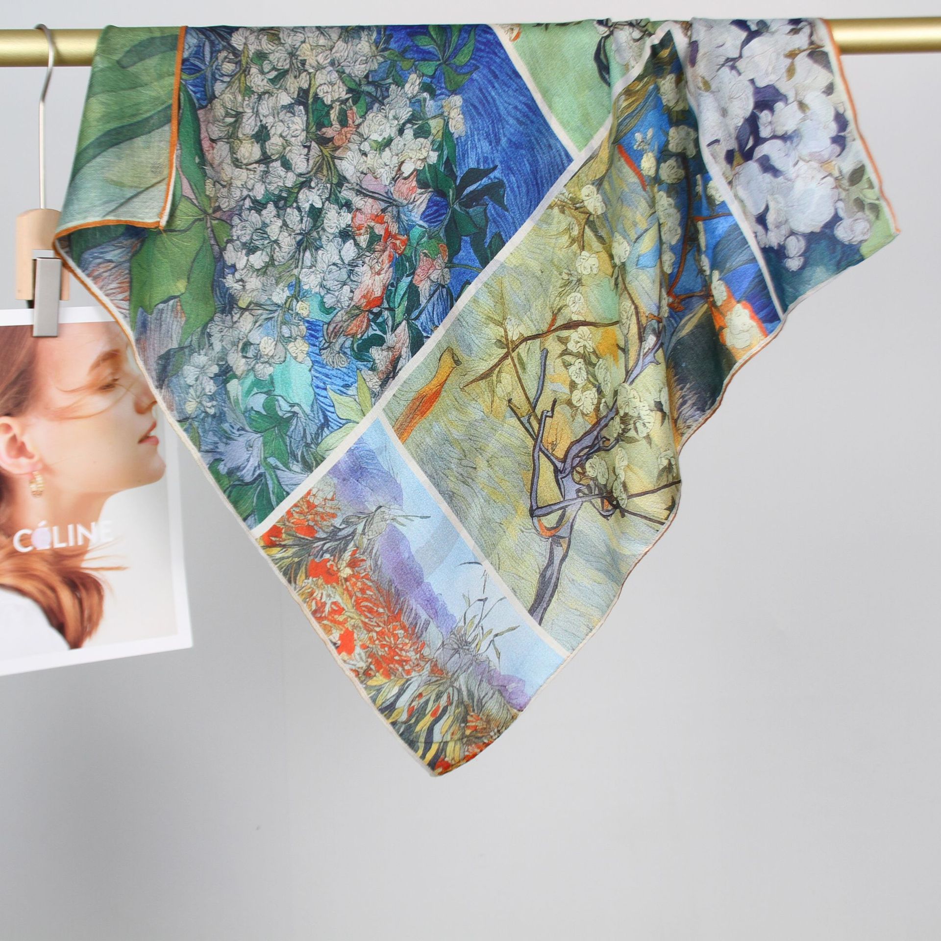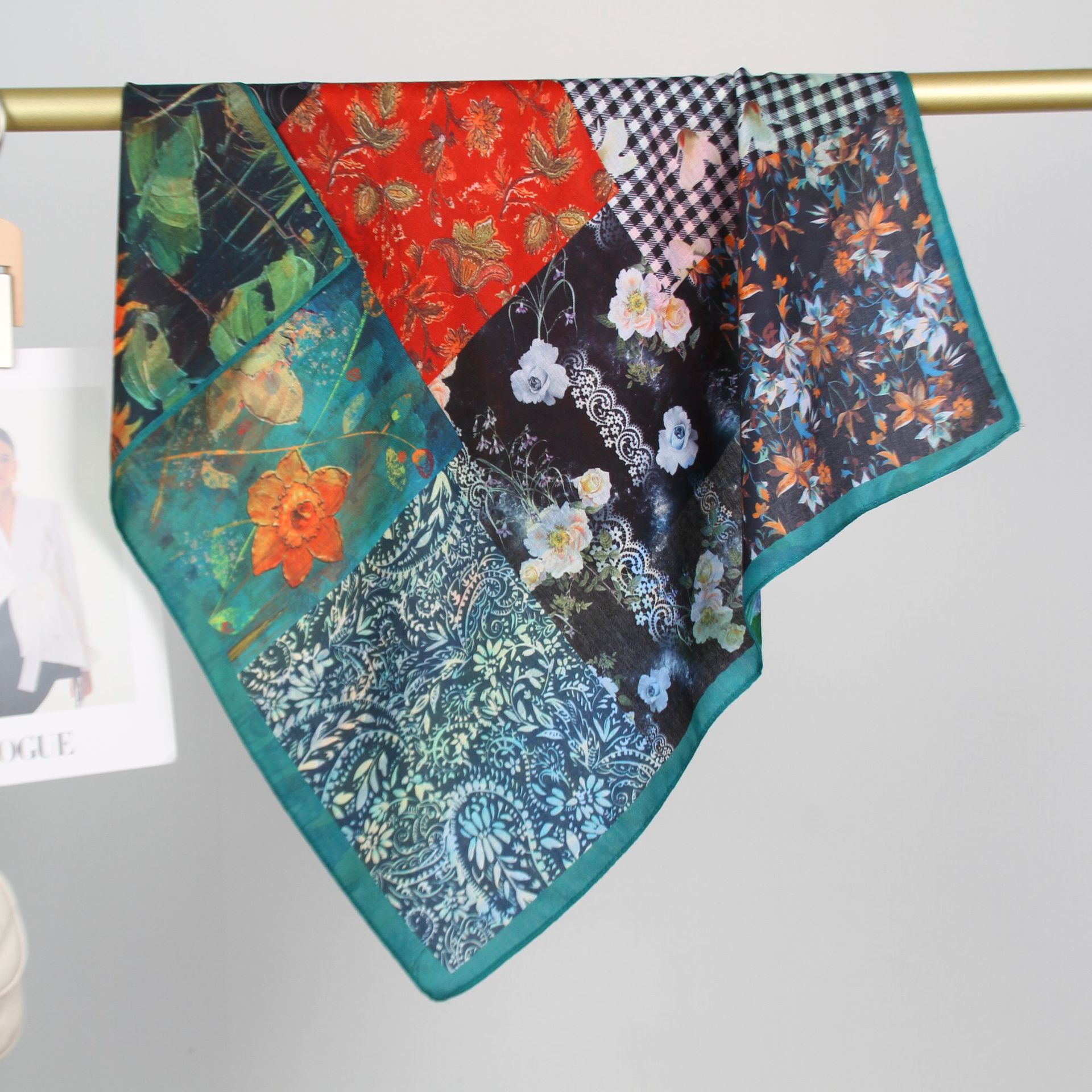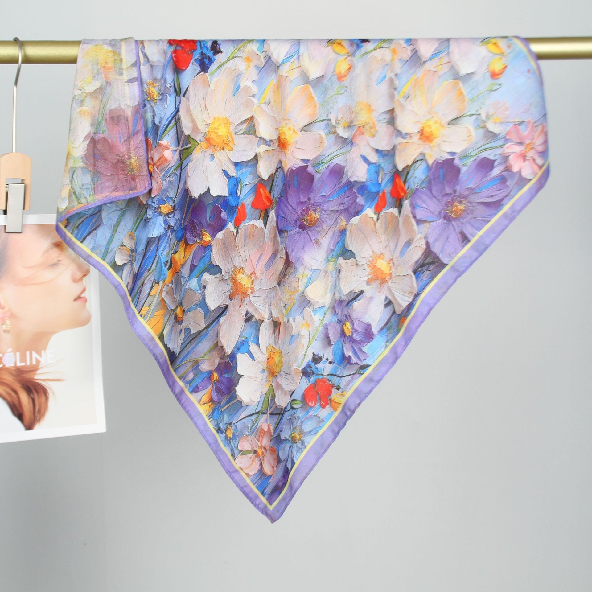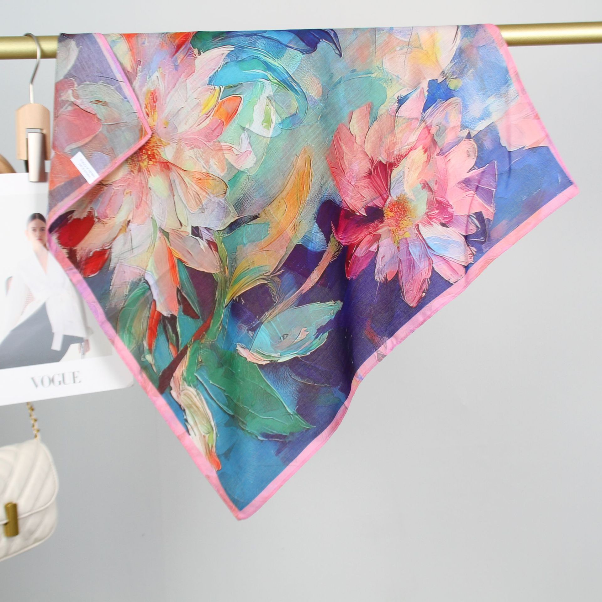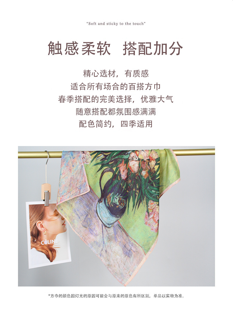 예술적 꽃 우아한 양면 벨벳 스퀘어 스카프 서양식 여성 로맨틱 유화 스타일 헤드 스카프 올 매치 따뜻한 실크 스카프