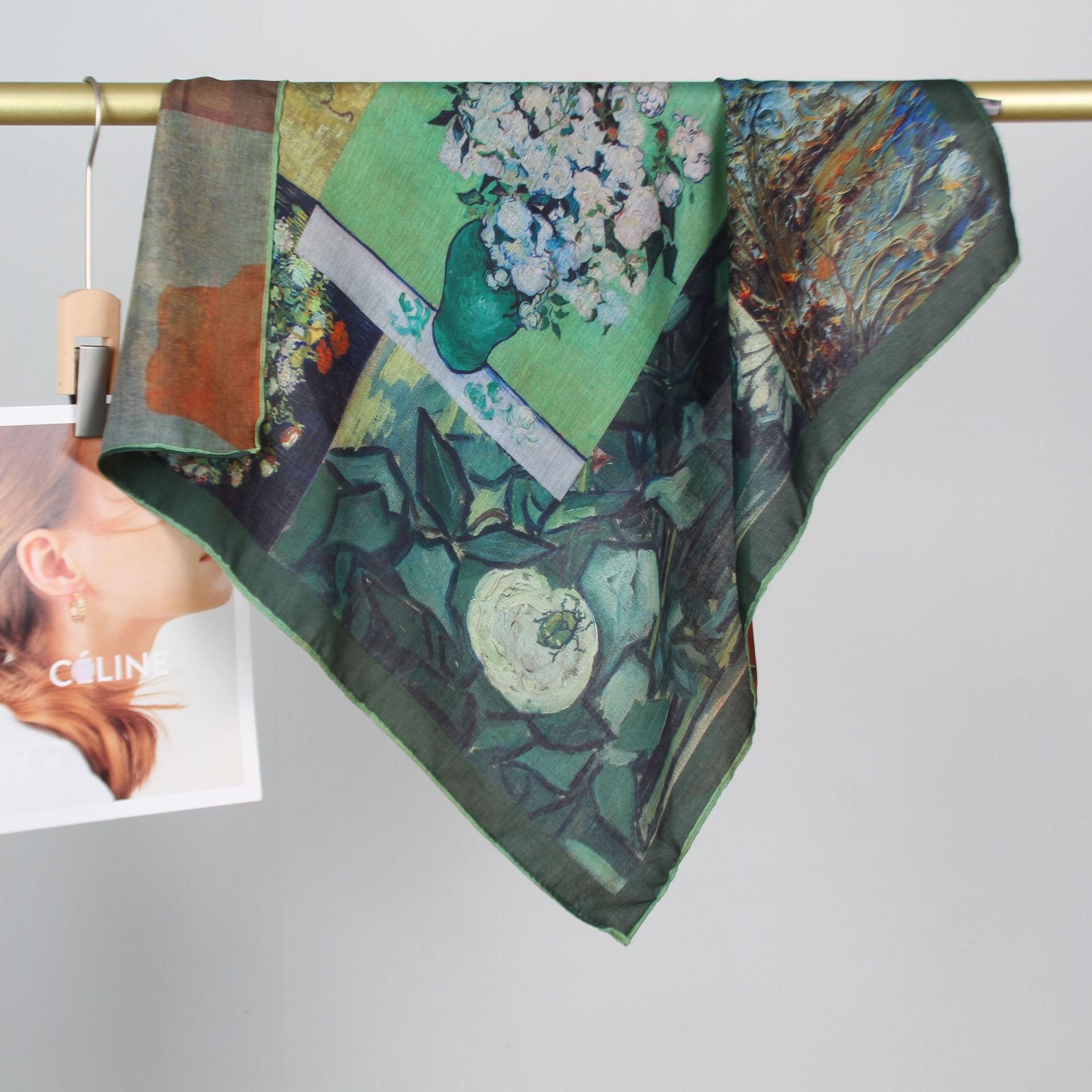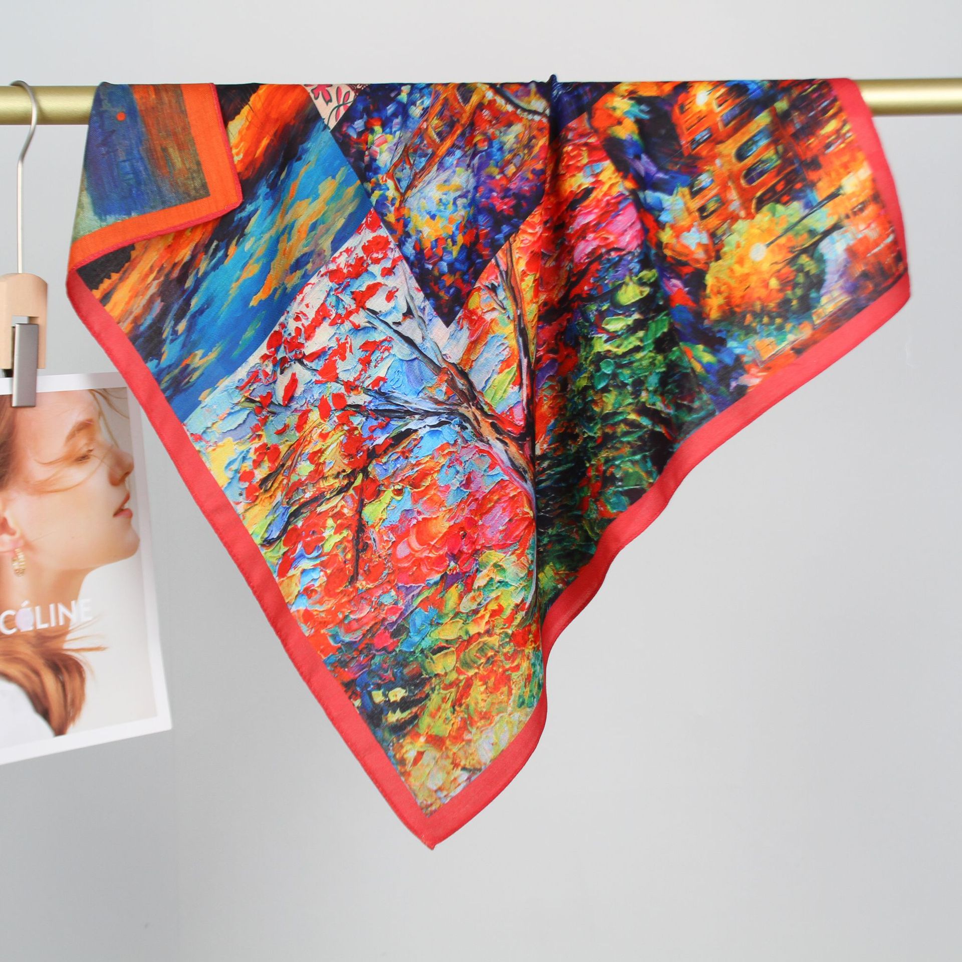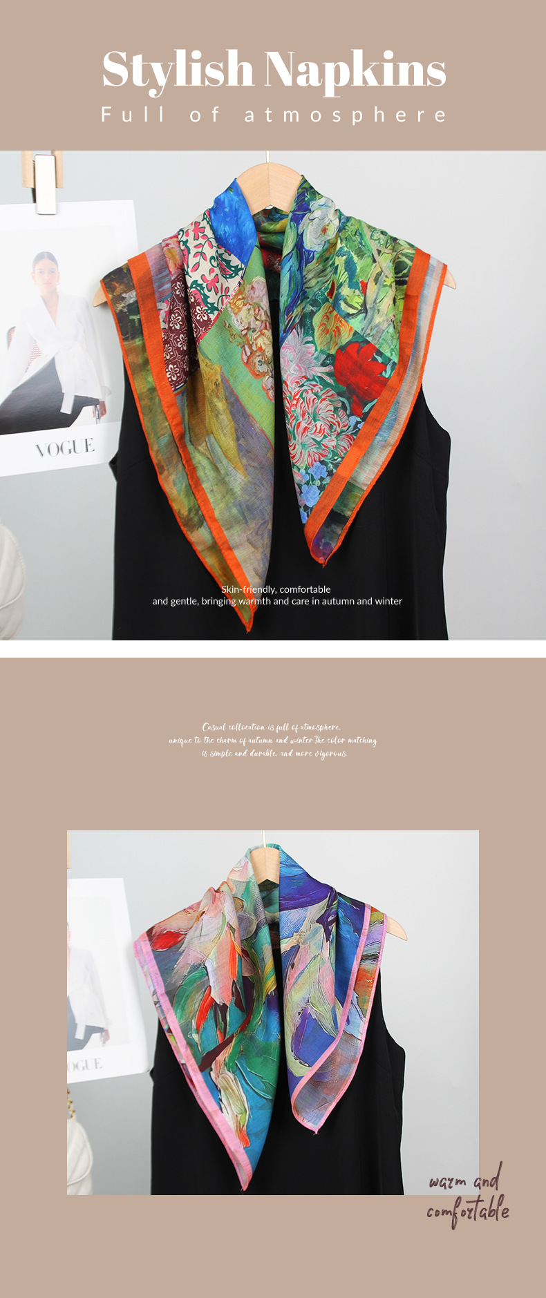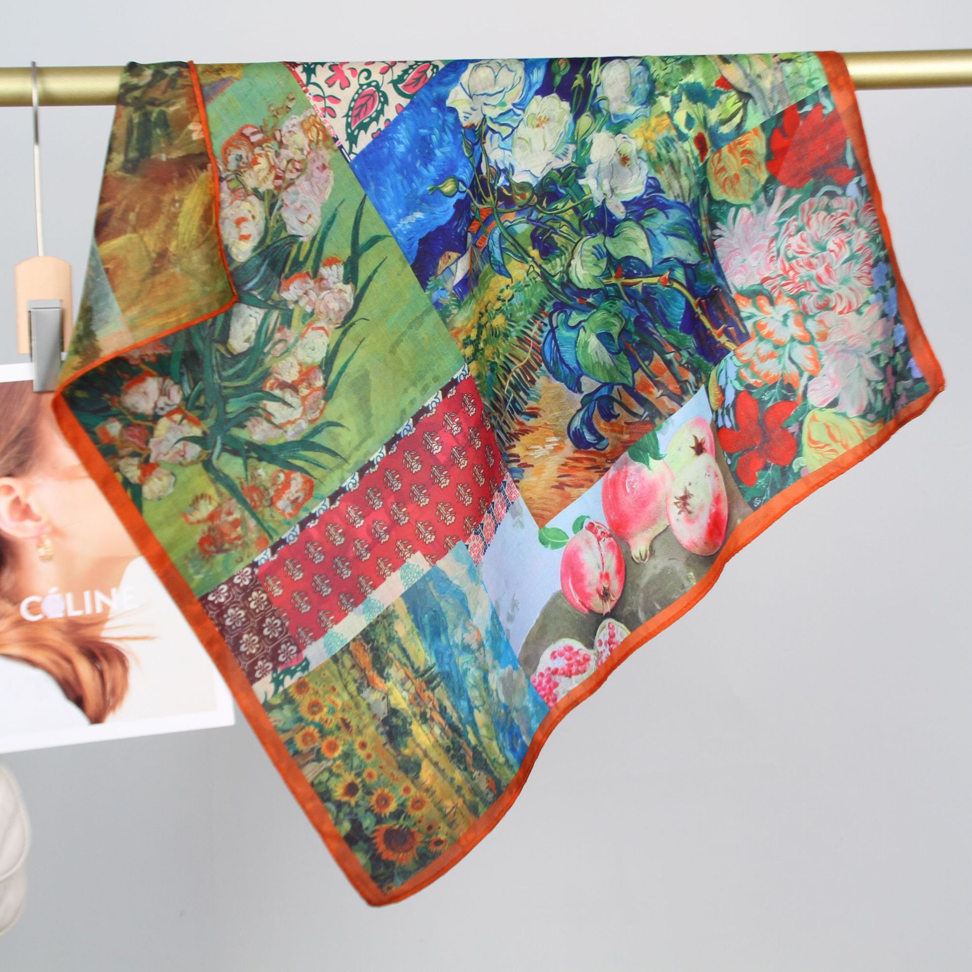 예술적 꽃 우아한 양면 벨벳 스퀘어 스카프 서양식 여성 로맨틱 유화 스타일 헤드 스카프 올 매치 따뜻한 실크 스카프