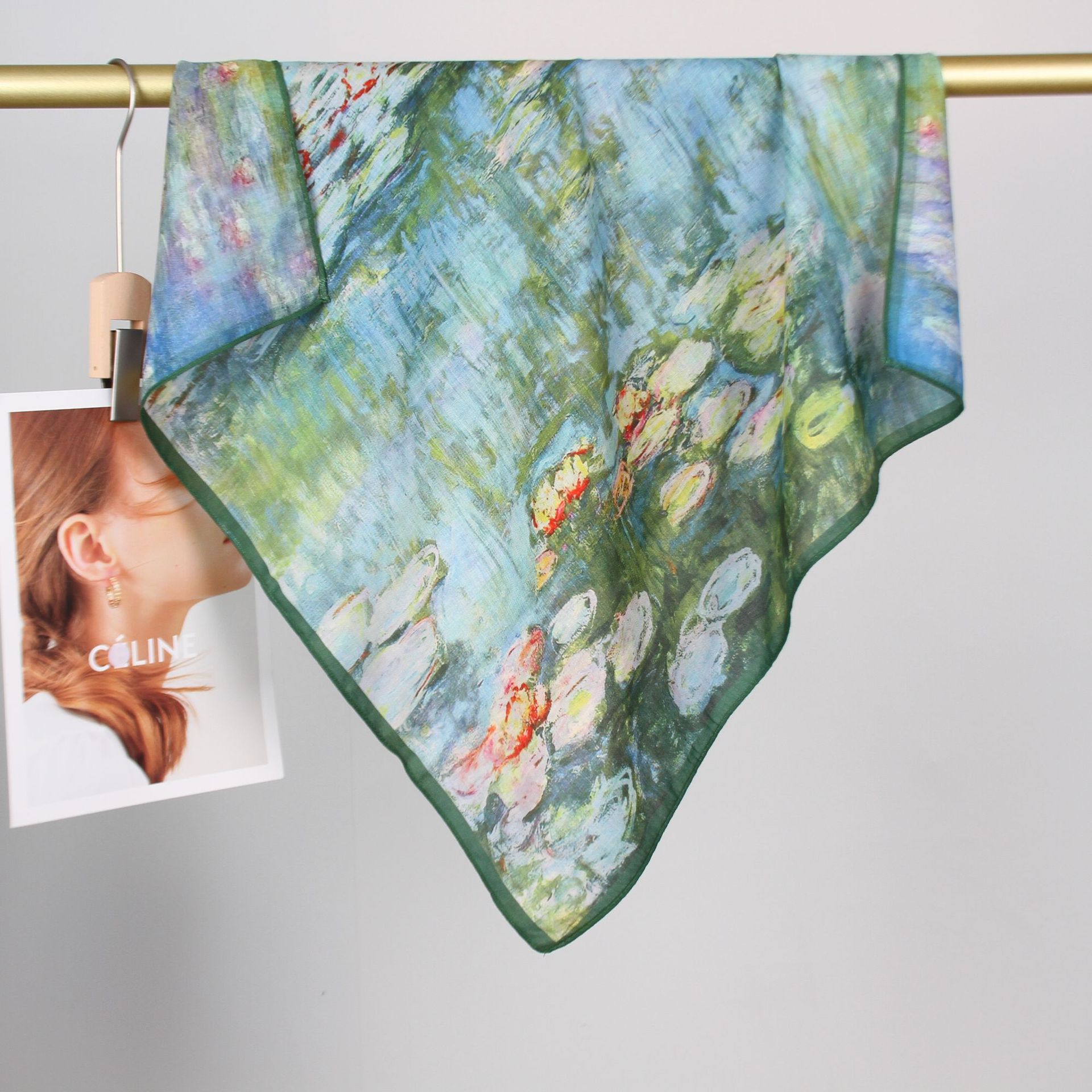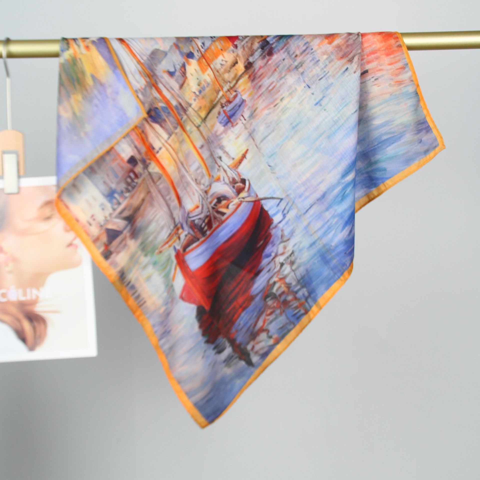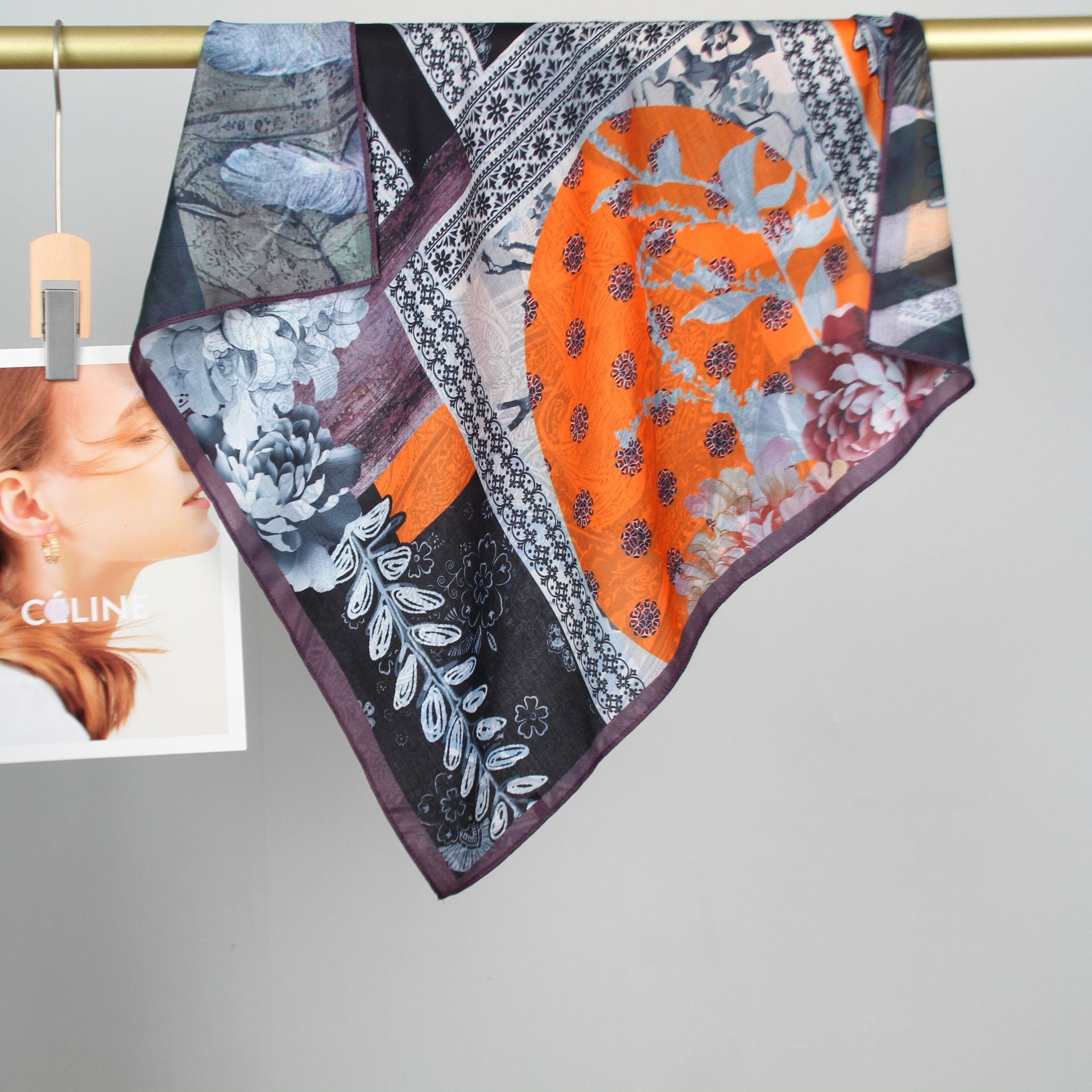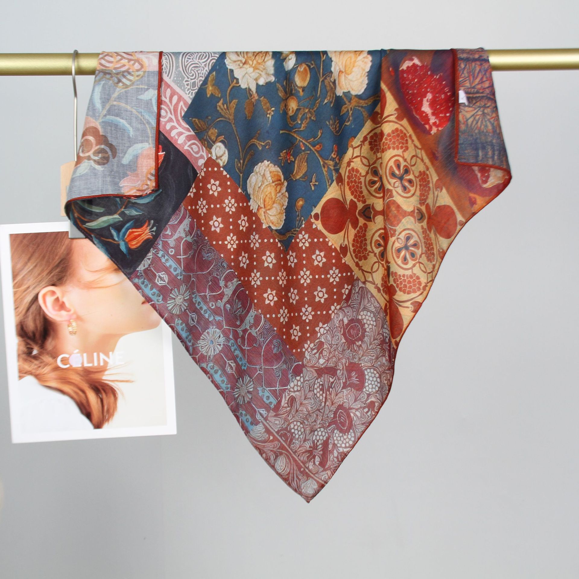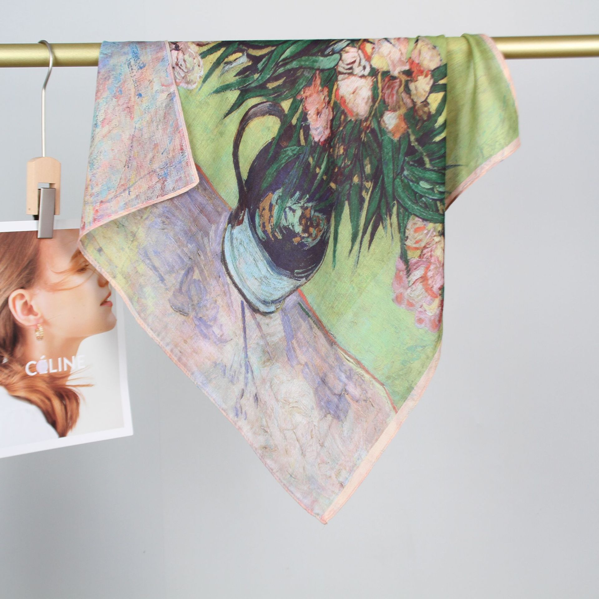 예술적 꽃 우아한 양면 벨벳 스퀘어 스카프 서양식 여성 로맨틱 유화 스타일 헤드 스카프 올 매치 따뜻한 실크 스카프
