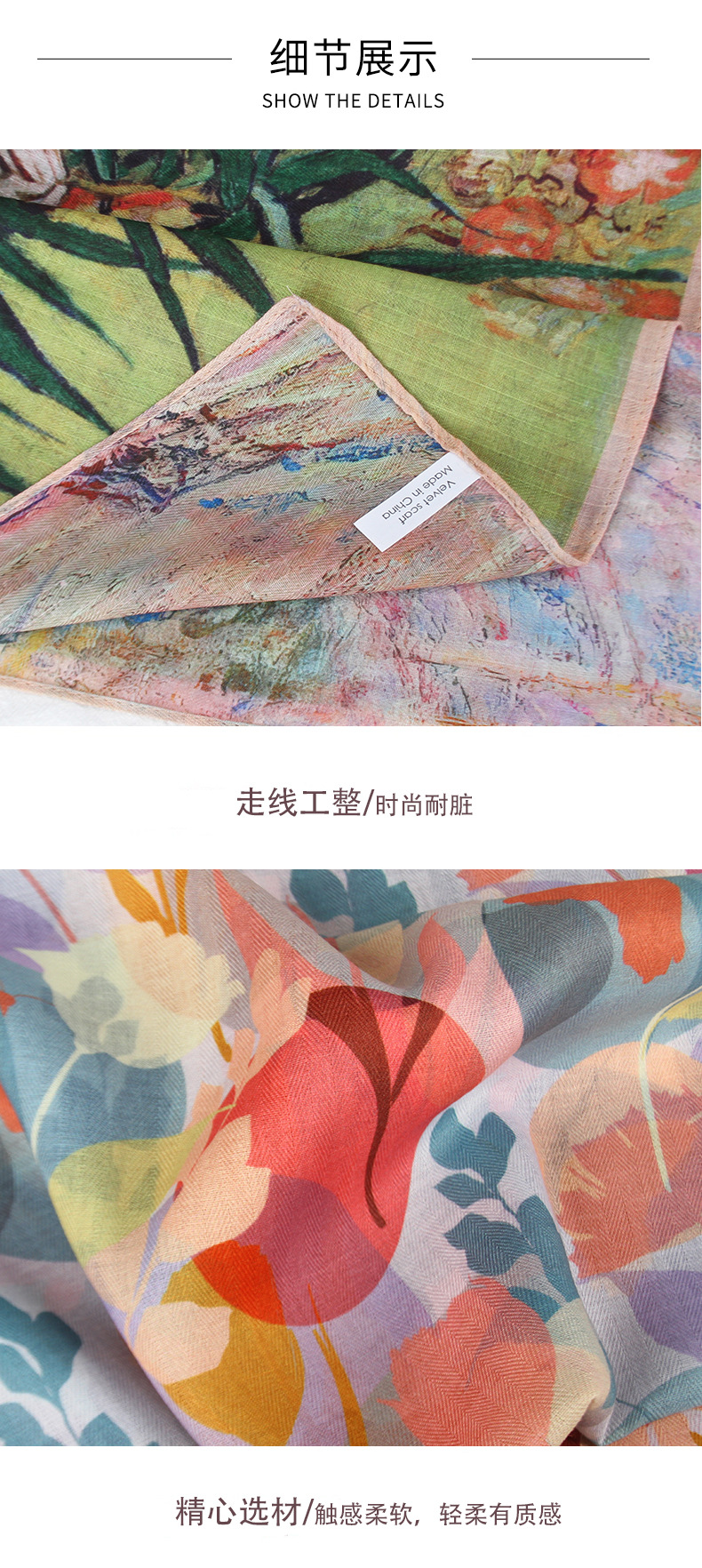 예술적 꽃 우아한 양면 벨벳 스퀘어 스카프 서양식 여성 로맨틱 유화 스타일 헤드 스카프 올 매치 따뜻한 실크 스카프스토어 가기