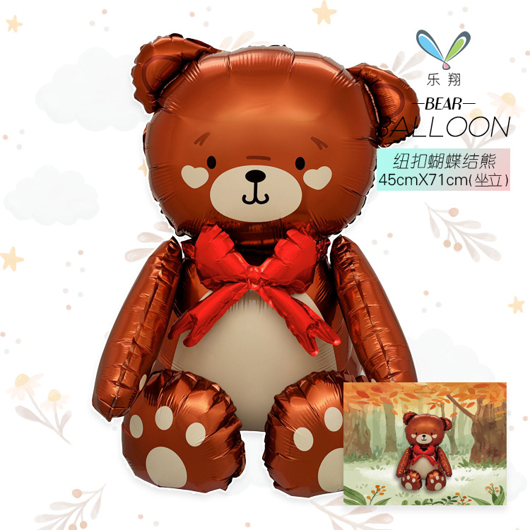새로운 매트 버튼 활 곰 앉아 조립 다크 브라운 곰 어린이 생일 성인 파티 장식 풍선스토어 가기