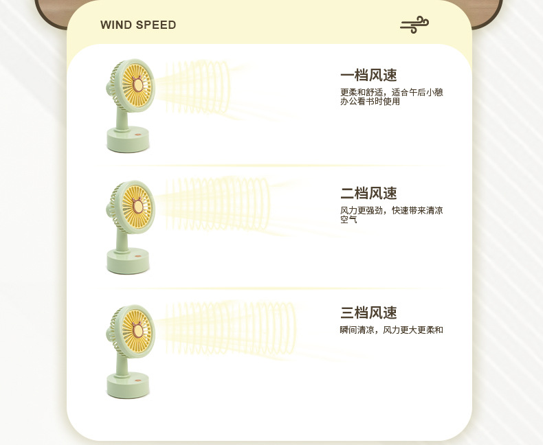 고급스러운 미니 충전식 데스크탑 소형 팬 선물 회사 도매 3단 편리한 소형 책상 팬스토어 가기