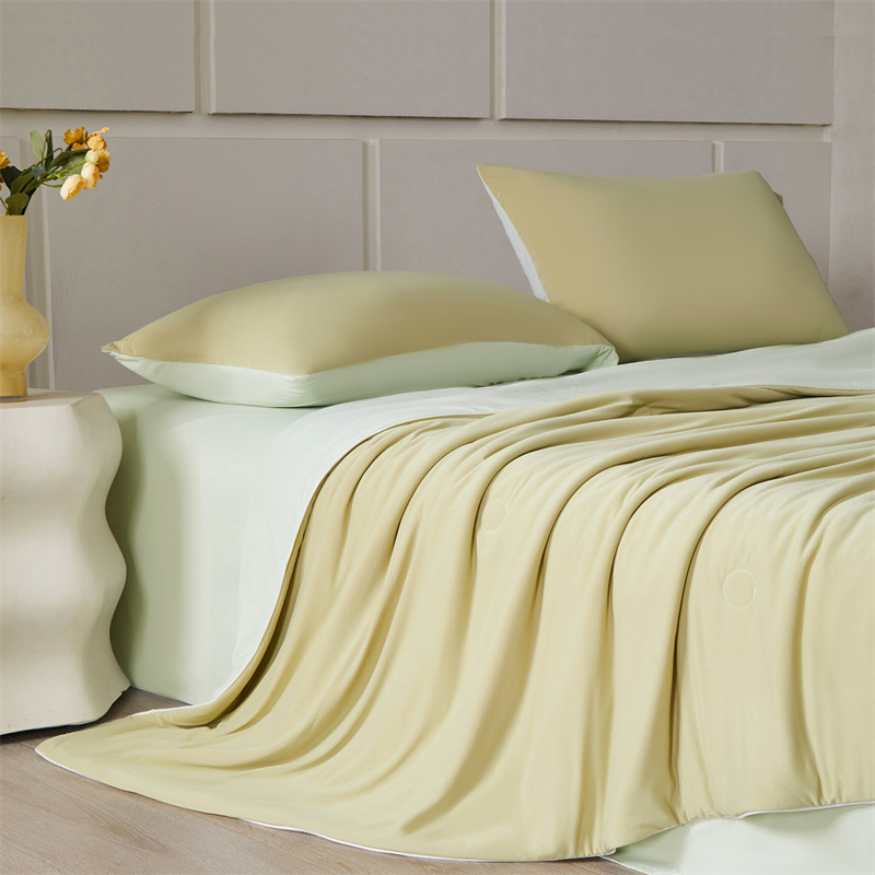 • 얼어붙는 시원한 여름 이불 - 밀더미 옐로우 + 플럼 그린