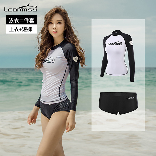 한국 커플 남녀공용 잠수복, 대형 긴팔 해파리복, 보수적인 슬리밍 팬츠, 스노클링 서핑 수영복스토어 가기