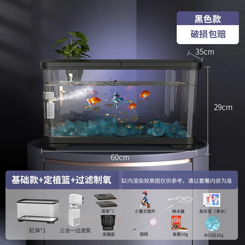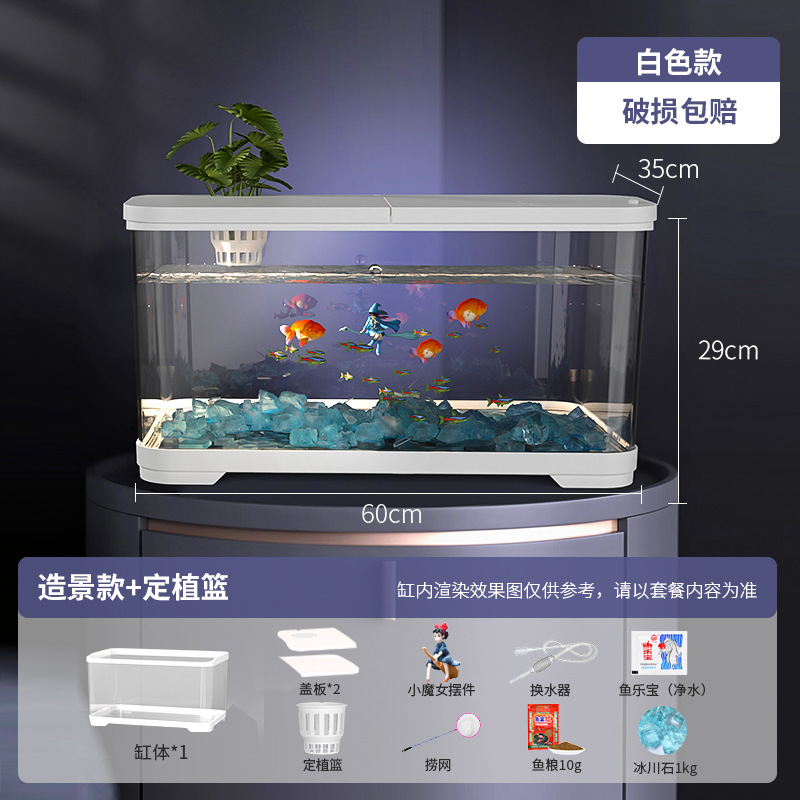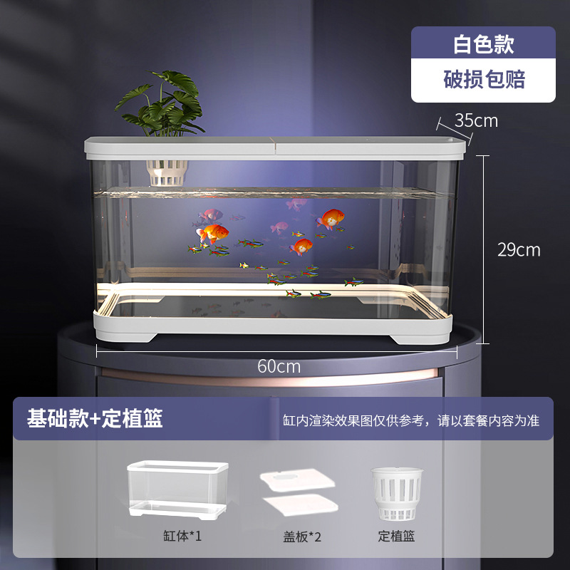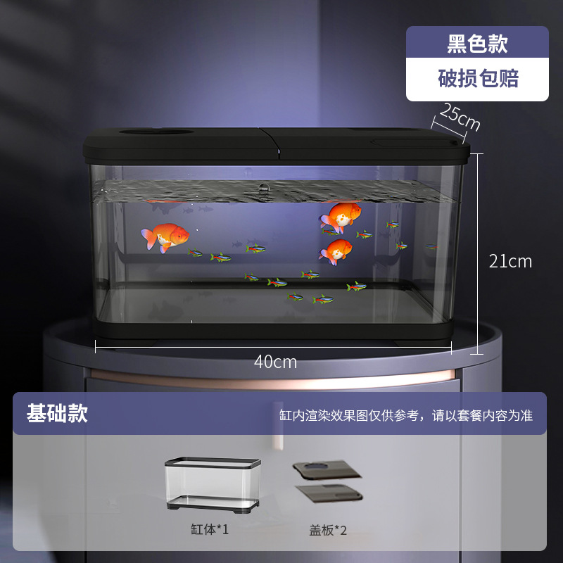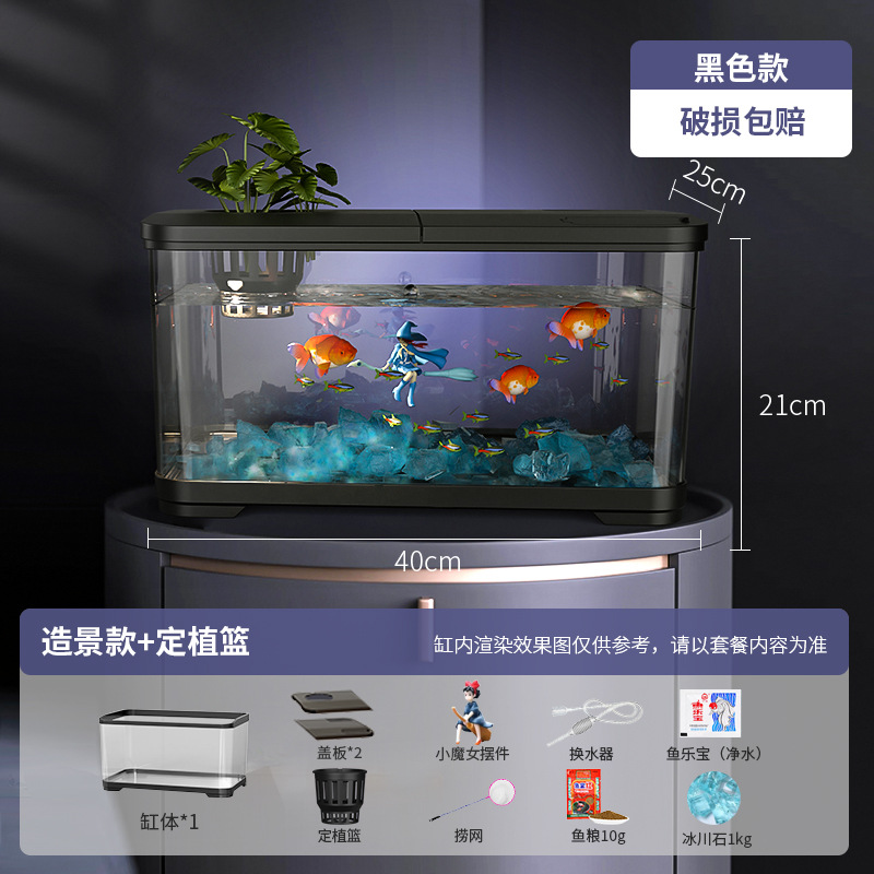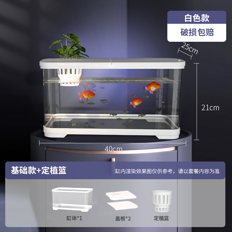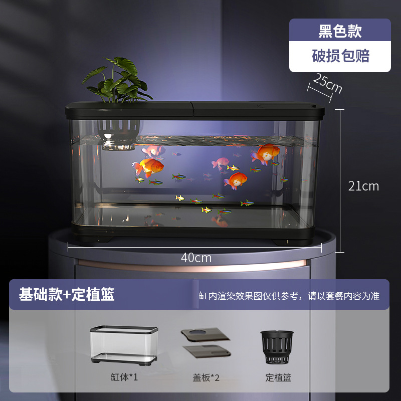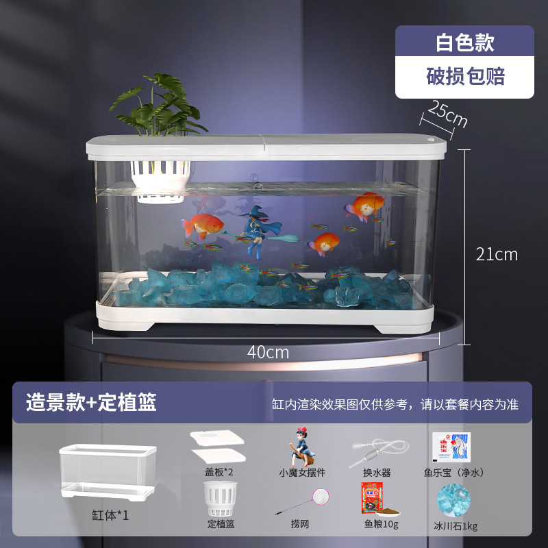 가정용 소형 금붕어 수조, 고화질 투명, 물갈이 필요 없는 생태 수족관, 뚜껑 포함 풀세트