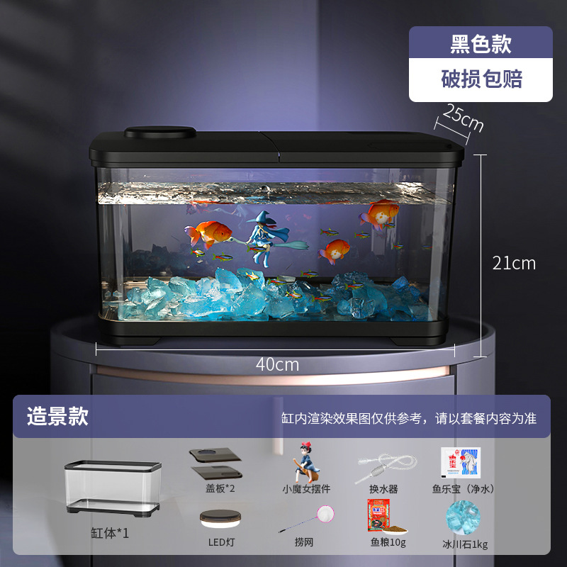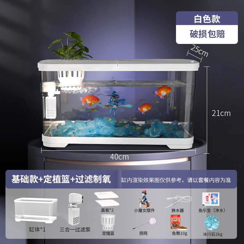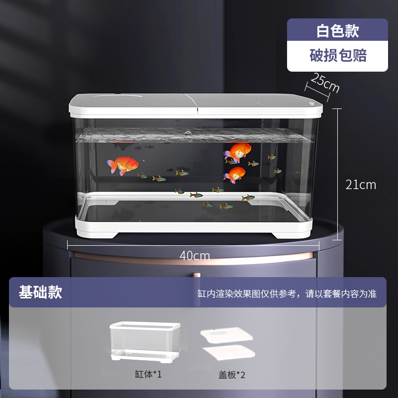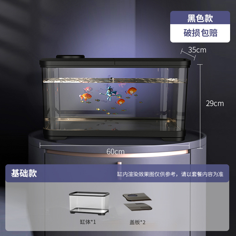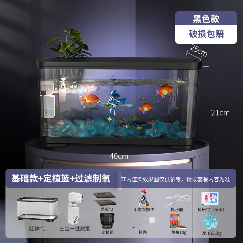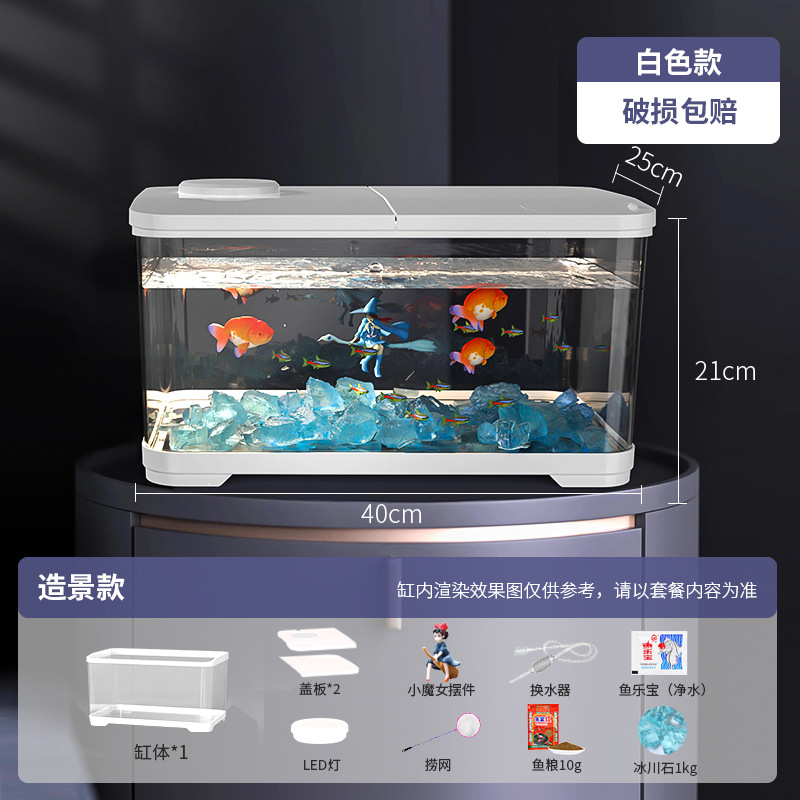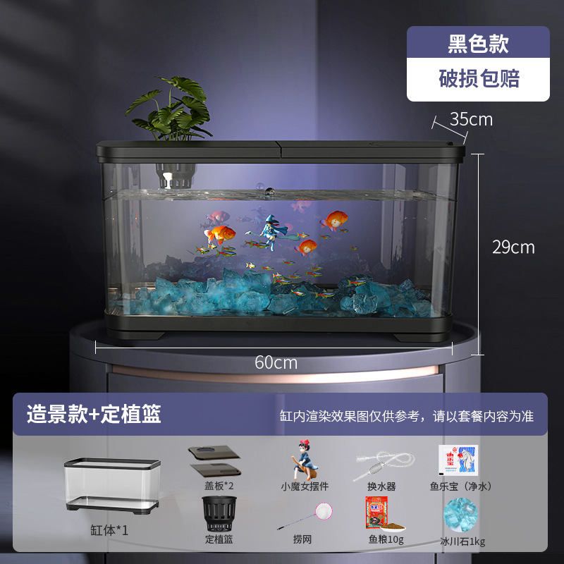 가정용 소형 금붕어 수조, 고화질 투명, 물갈이 필요 없는 생태 수족관, 뚜껑 포함 풀세트