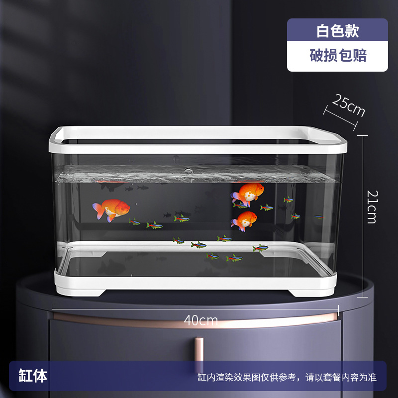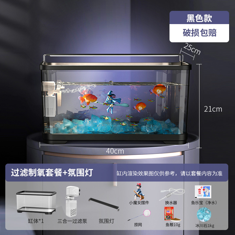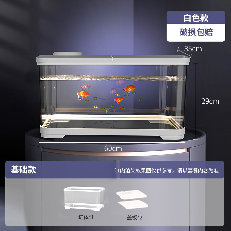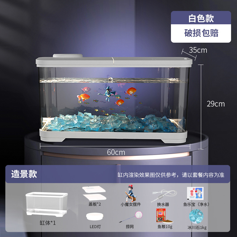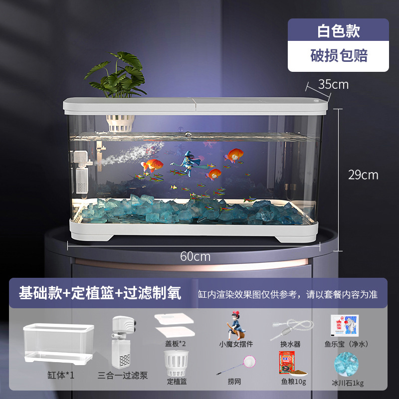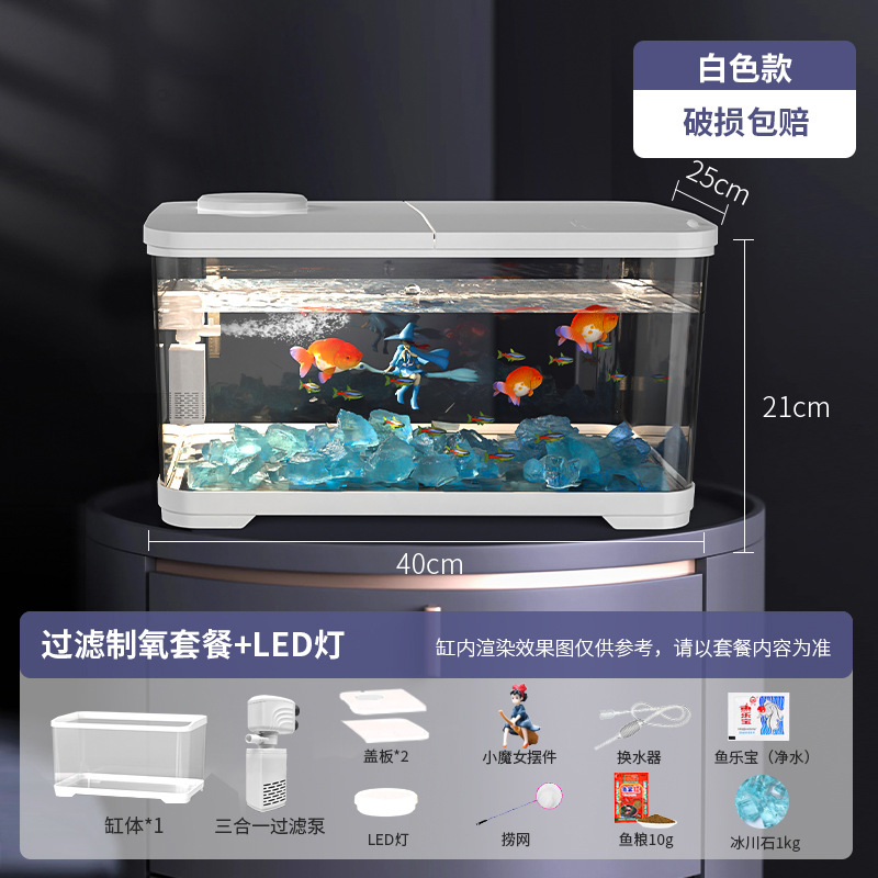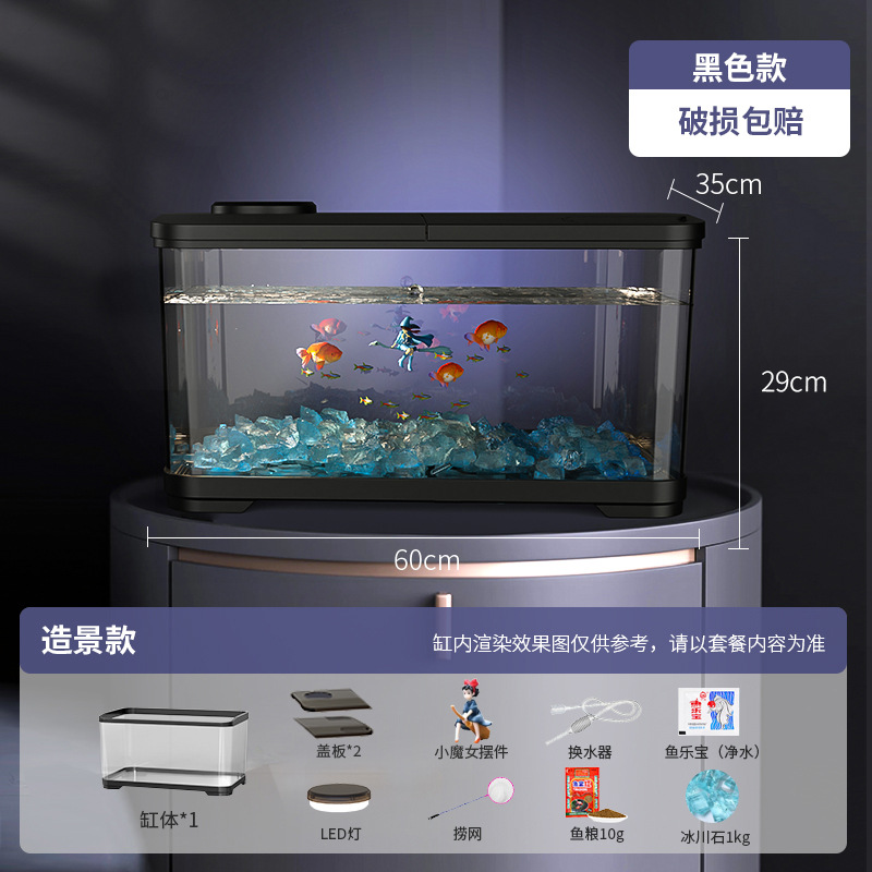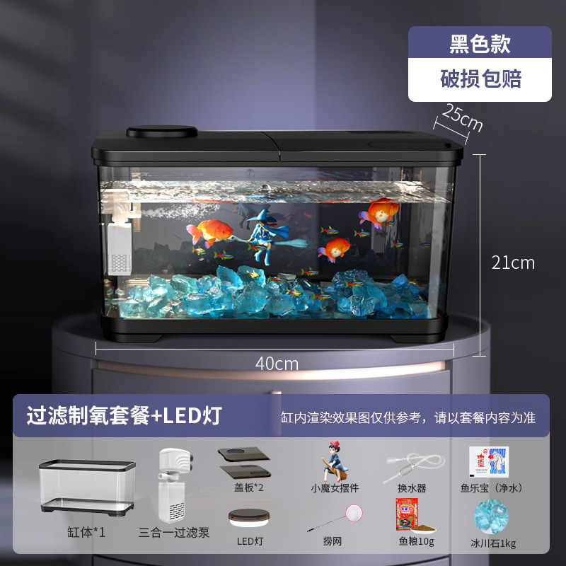 가정용 소형 금붕어 수조, 고화질 투명, 물갈이 필요 없는 생태 수족관, 뚜껑 포함 풀세트