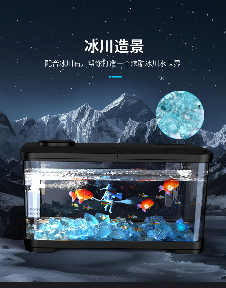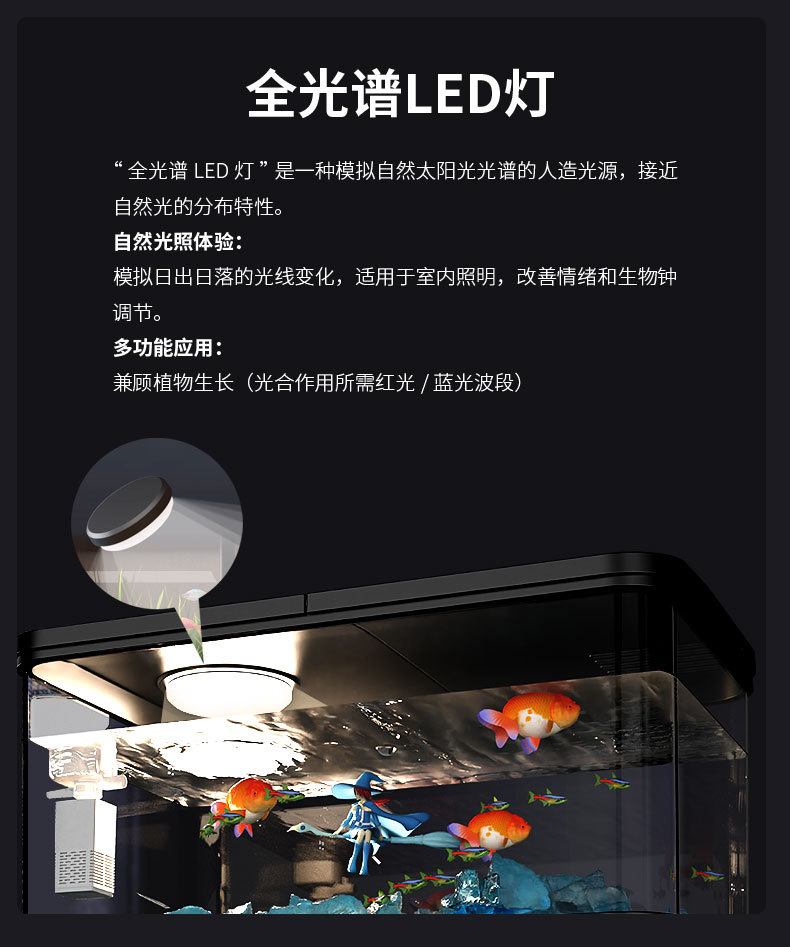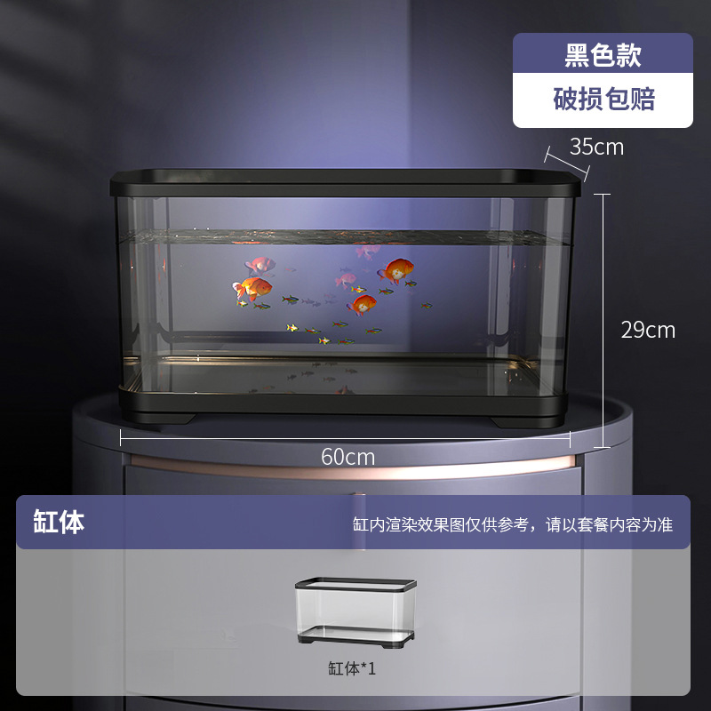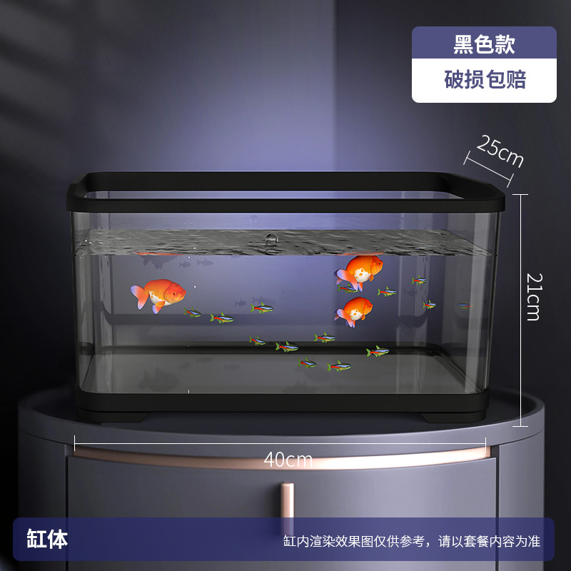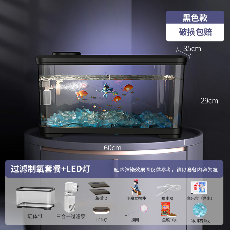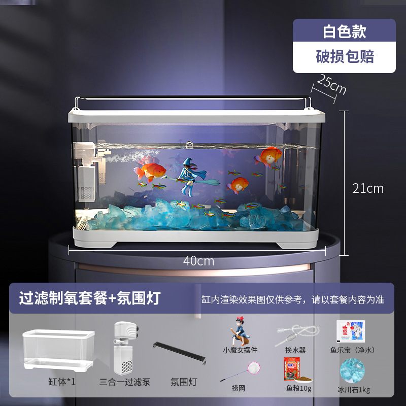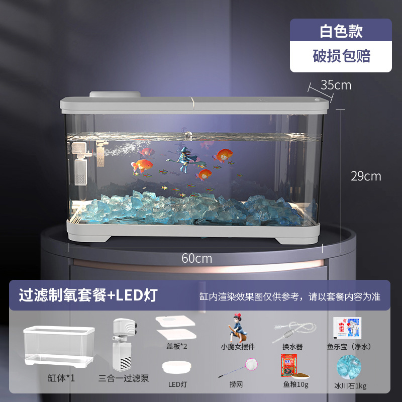 가정용 소형 금붕어 수조, 고화질 투명, 물갈이 필요 없는 생태 수족관, 뚜껑 포함 풀세트