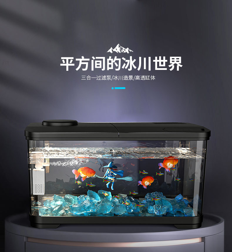가정용 소형 금붕어 수조, 고화질 투명, 물갈이 필요 없는 생태 수족관, 뚜껑 포함 풀세트스토어 가기