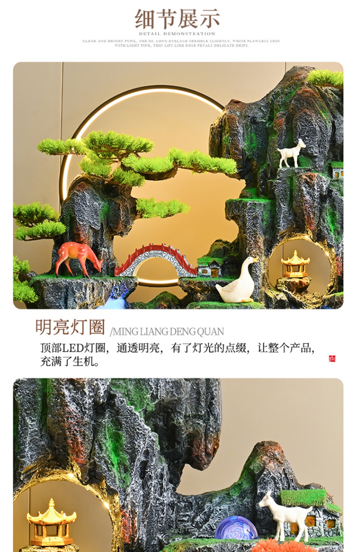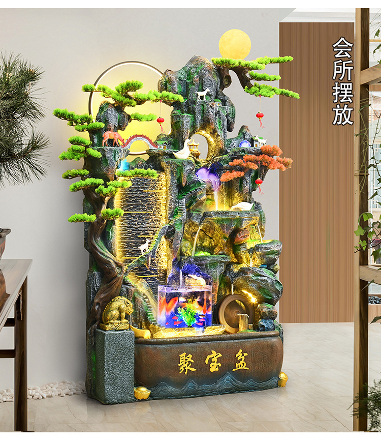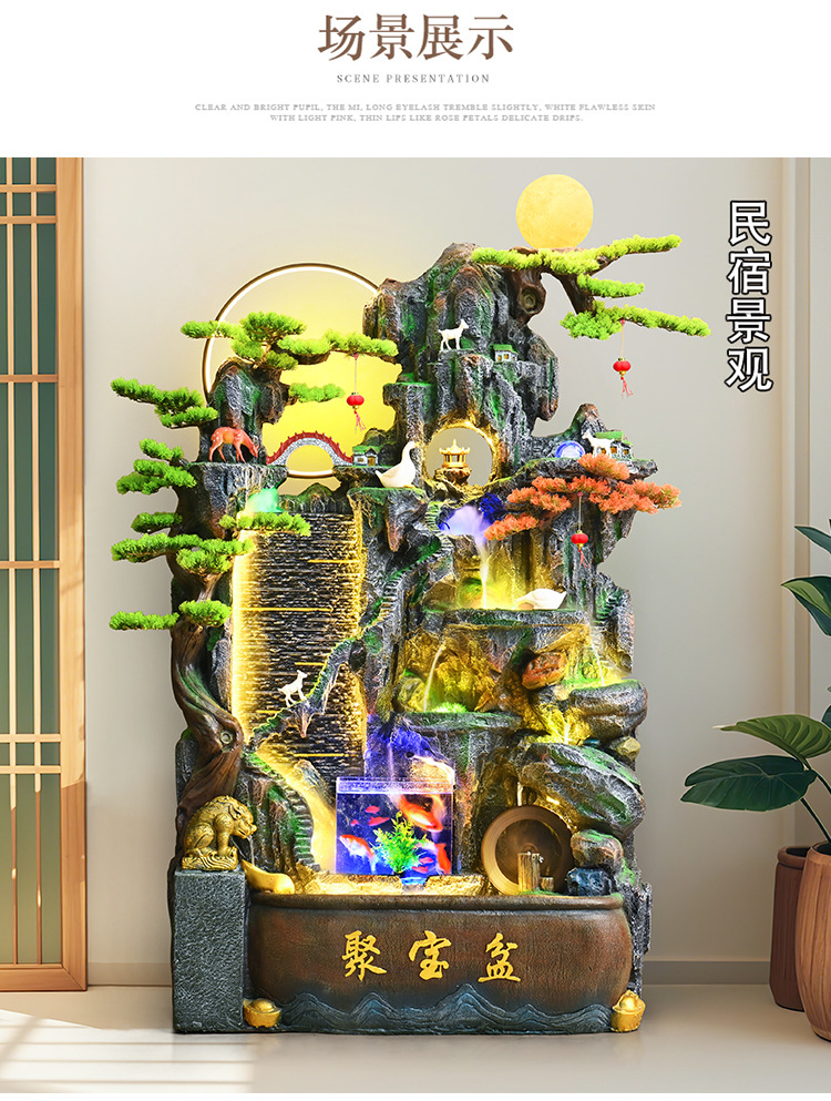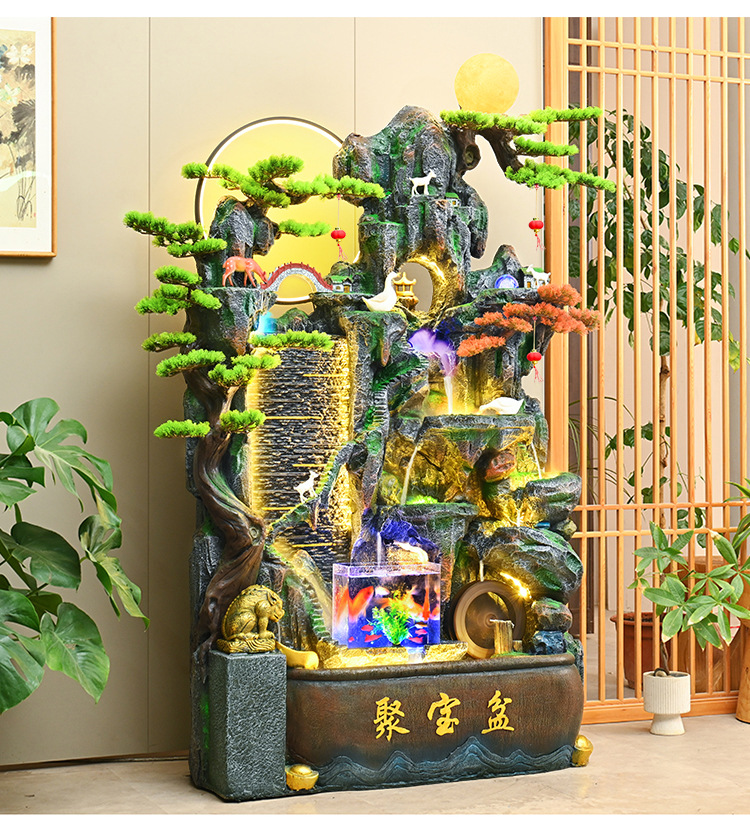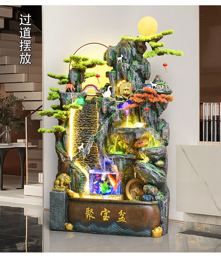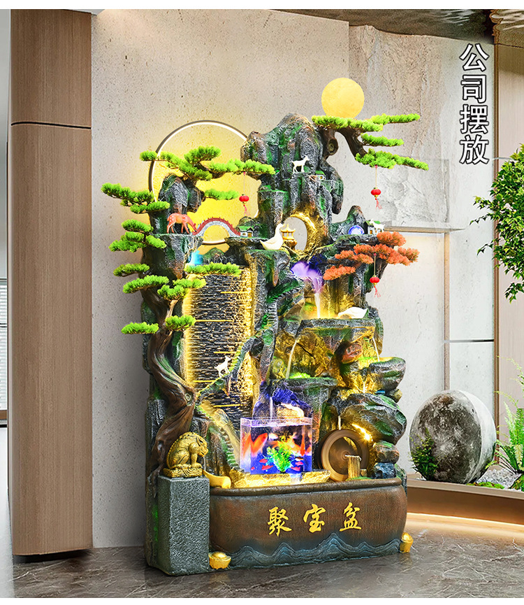 거실의 바위와 흐르는 물 분수, 실내 풍경, 발코니, 안뜰, 물고기 연못, 행운을 빌어주는 풍수 휠 장식, 순환하는 물 장식품스토어 가기