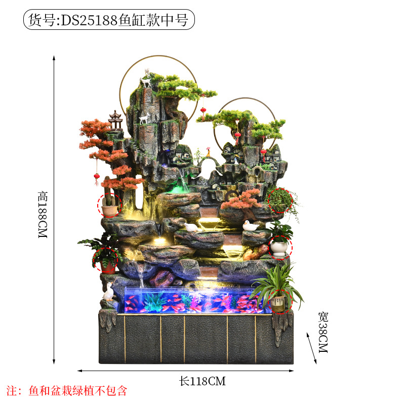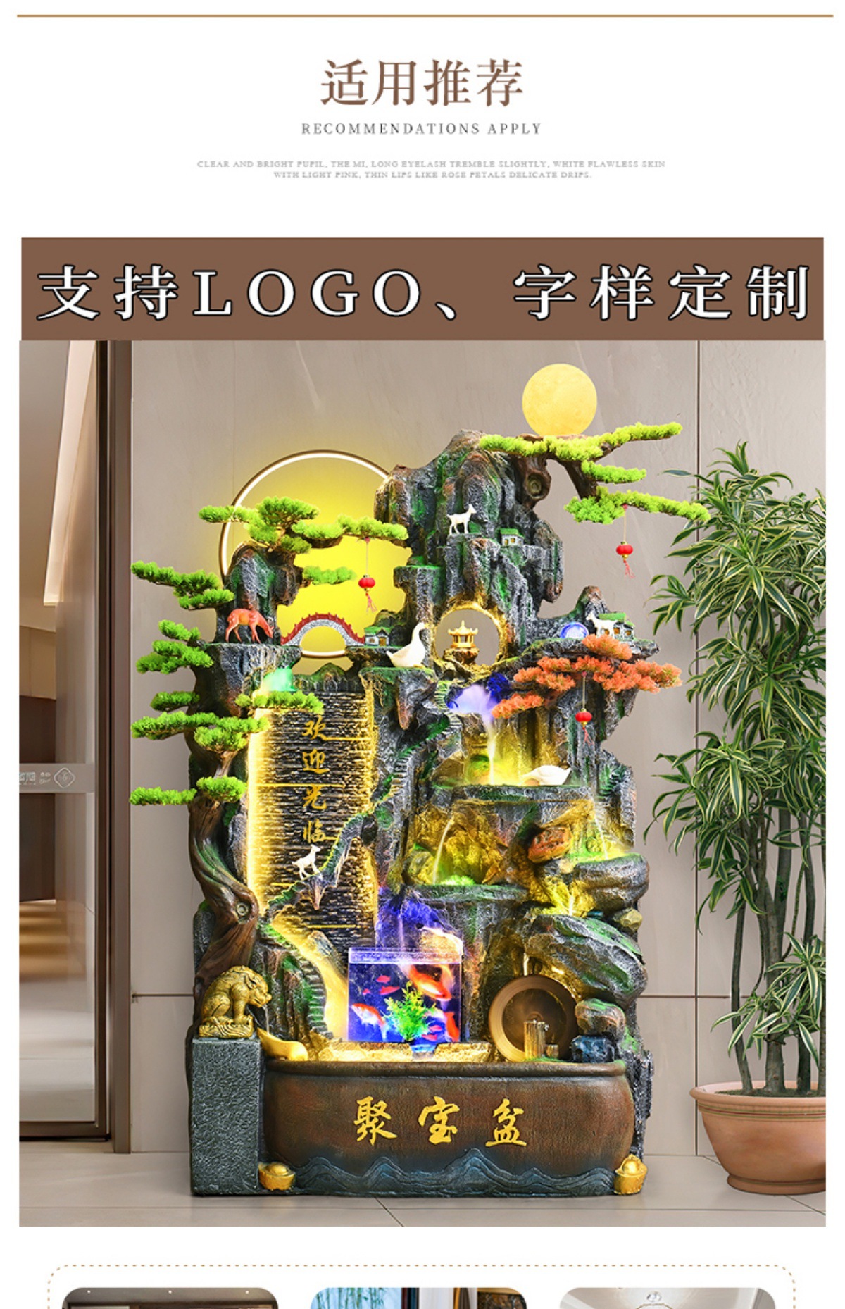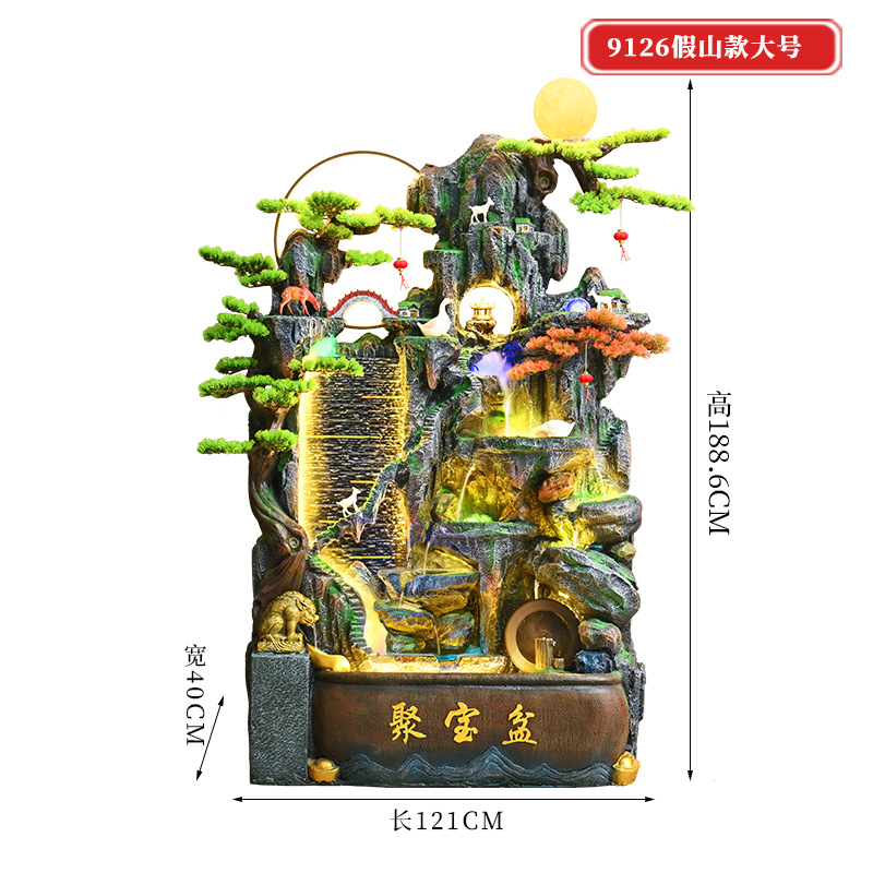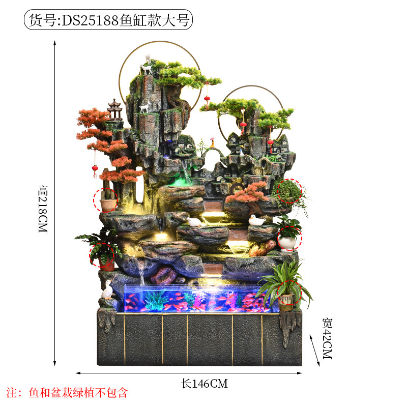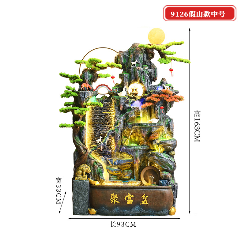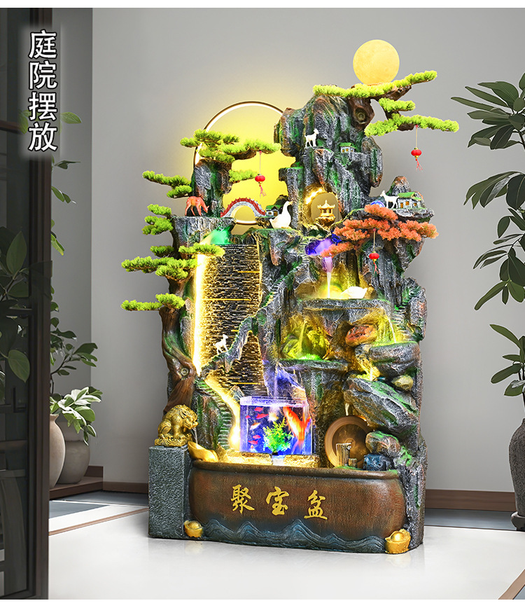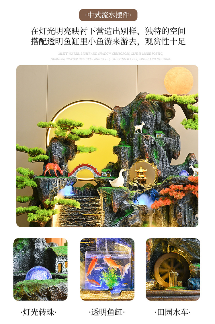 거실의 바위와 흐르는 물 분수, 실내 풍경, 발코니, 안뜰, 물고기 연못, 행운을 빌어주는 풍수 휠 장식, 순환하는 물 장식품스토어 가기