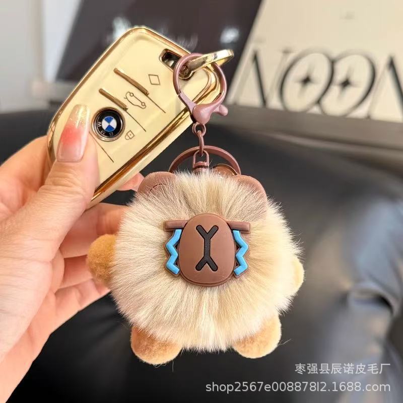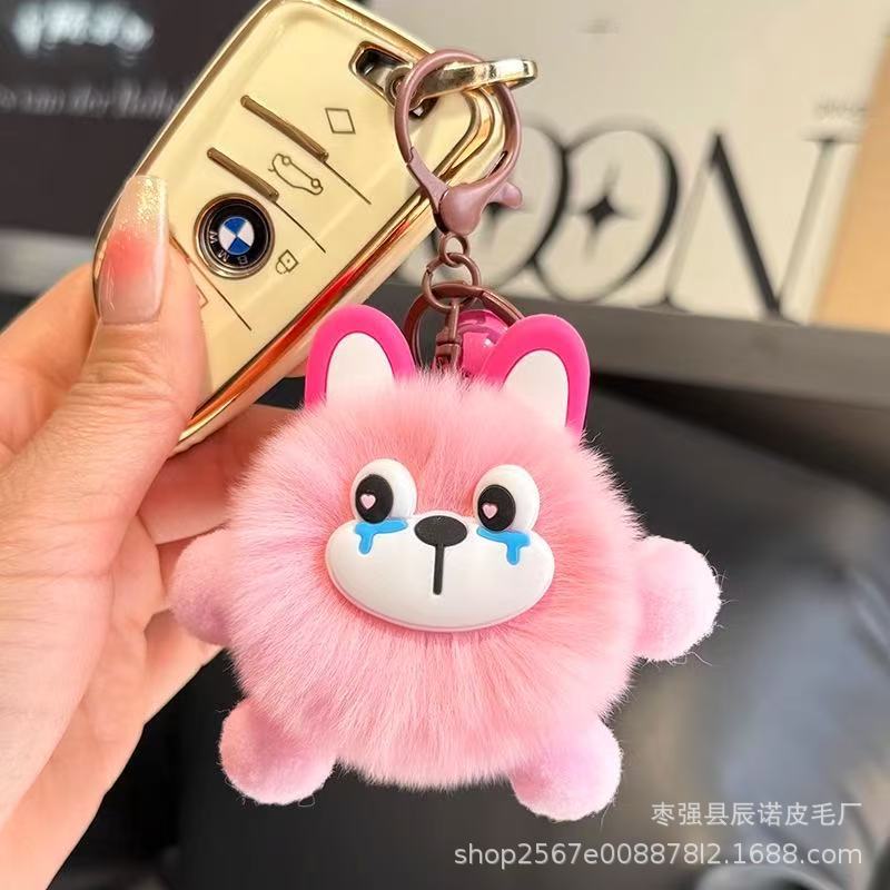여자를위한 창조적 인 귀여운 극단적 인 작은 파트너 치료 모피 공 배낭 펜던트 자동차 키 체인 틈새 선물스토어 가기