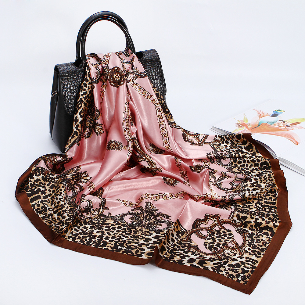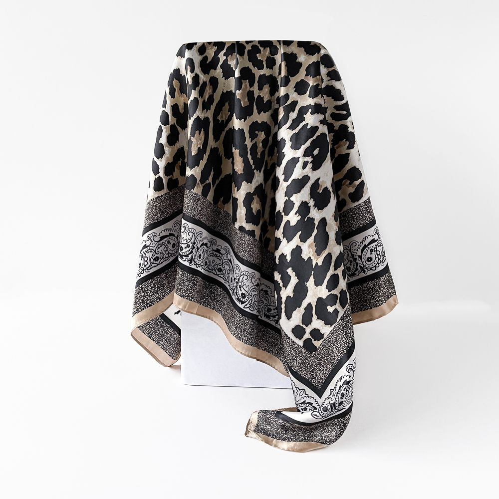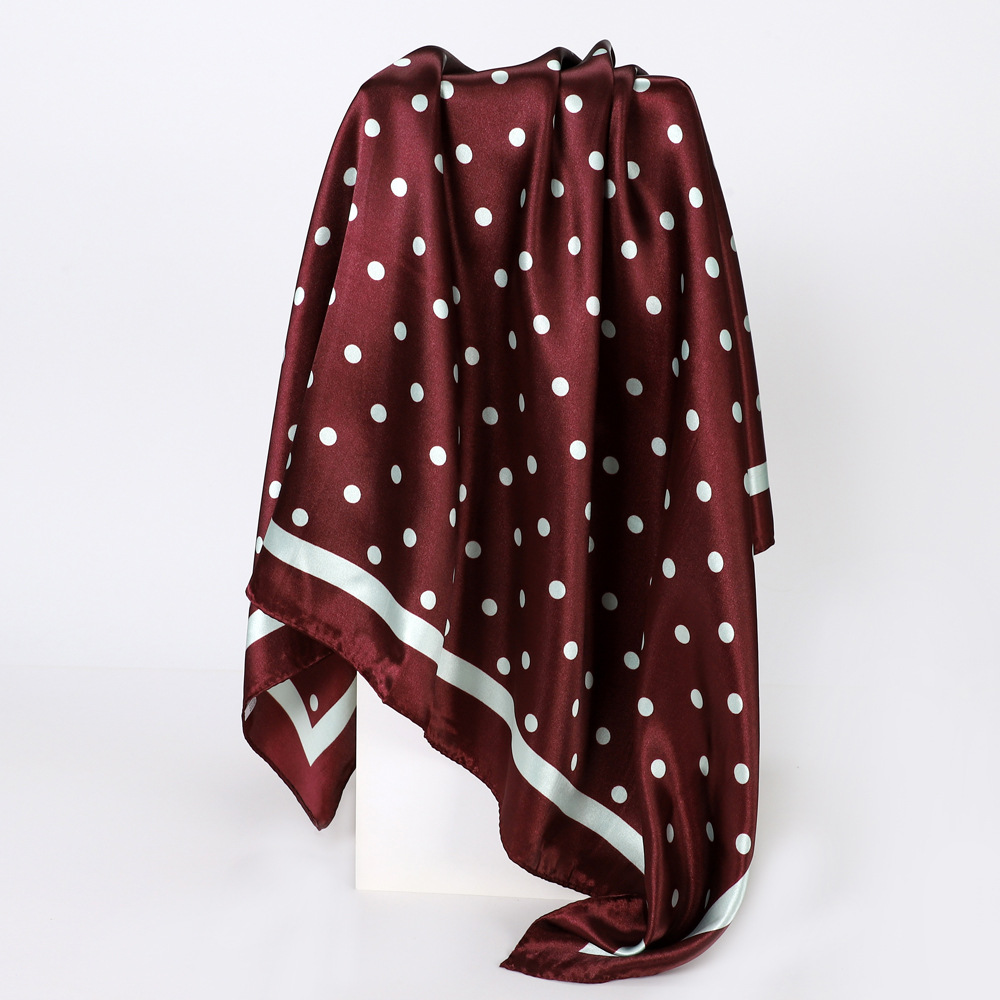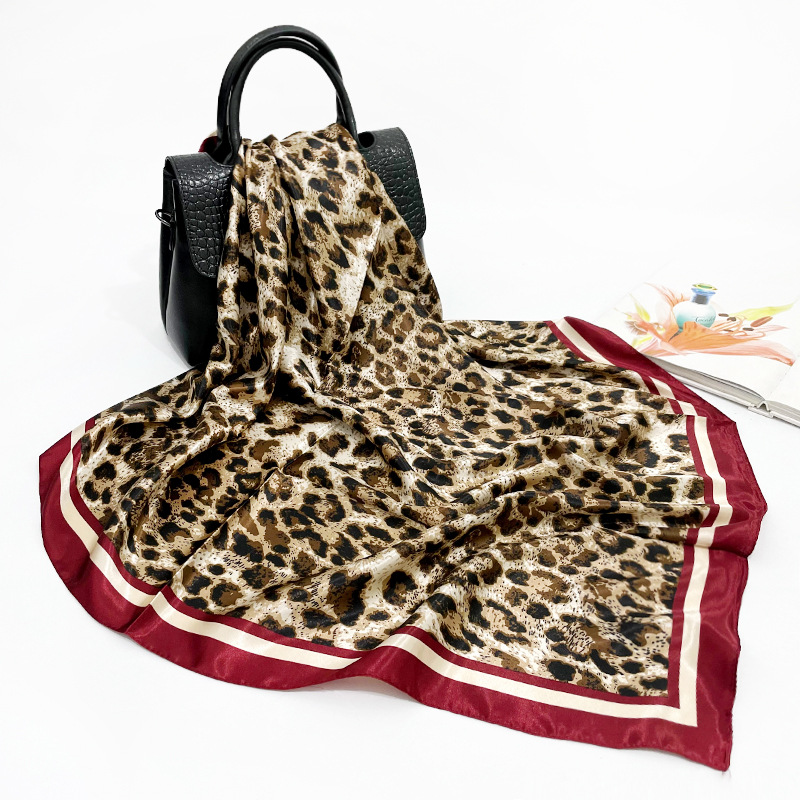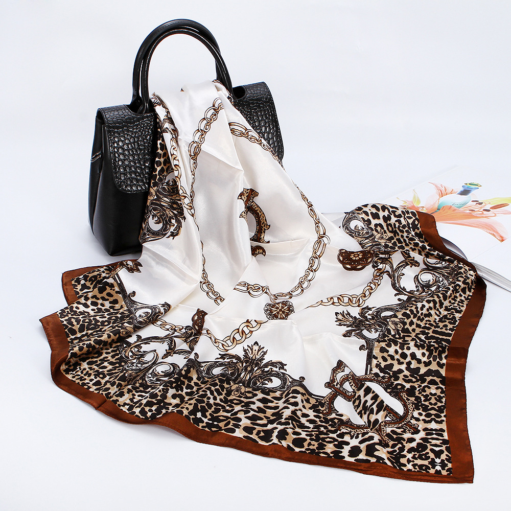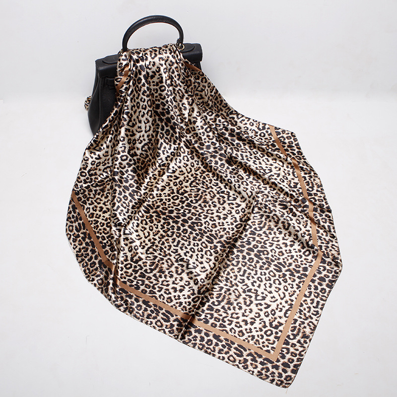 커피색 레오파드 무늬 도트 프린트 실크 스카프 여성용 스카프 인조 실크 새틴 90cm 대형 스카프 유럽 및 미국 스타일 머리 스카프
