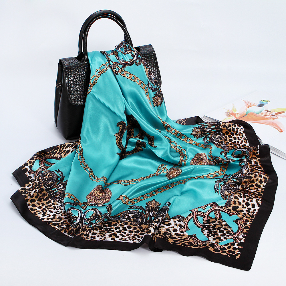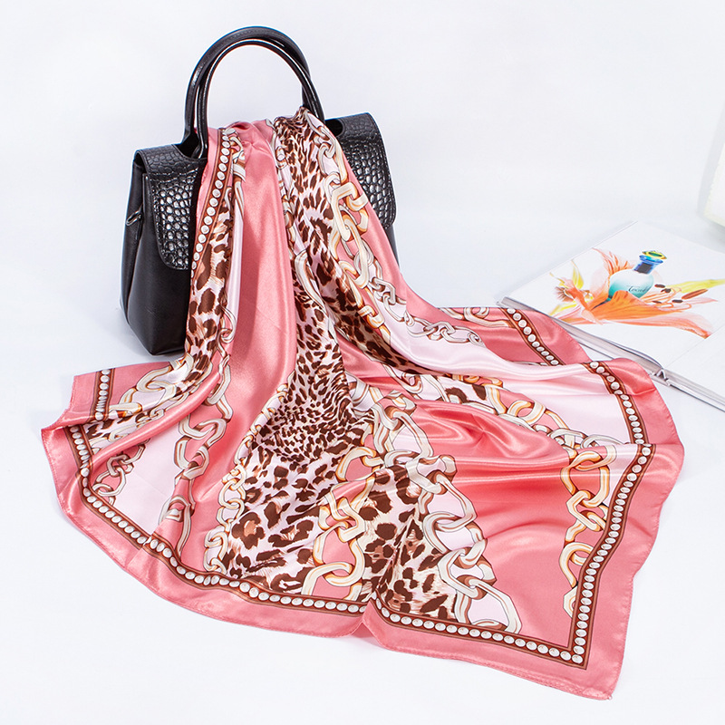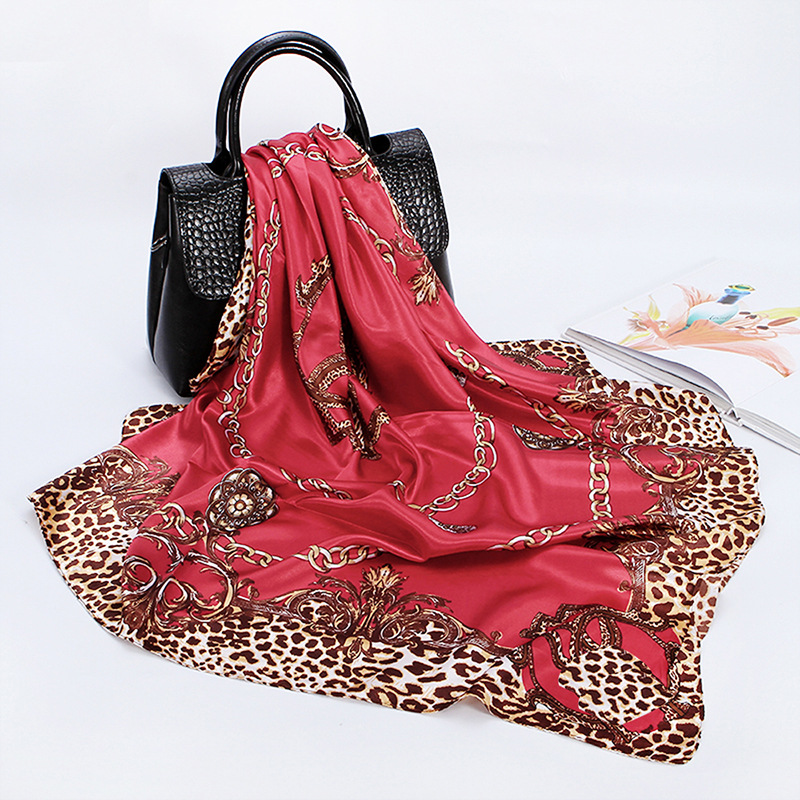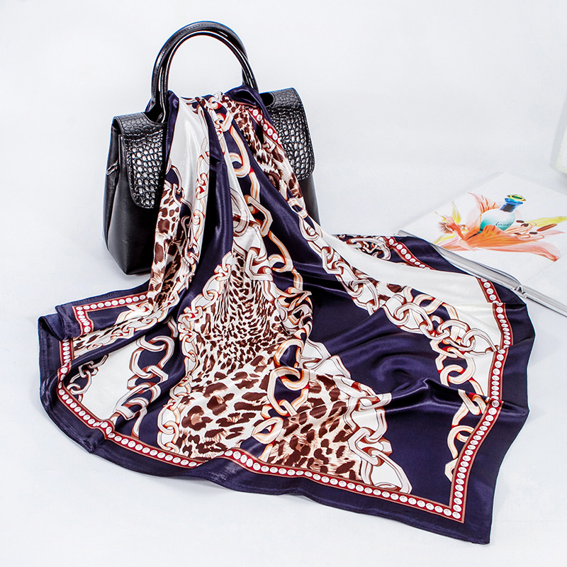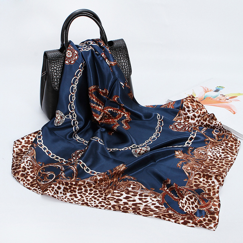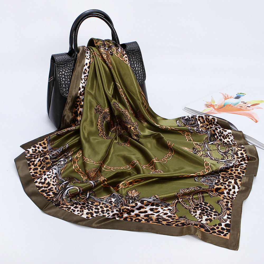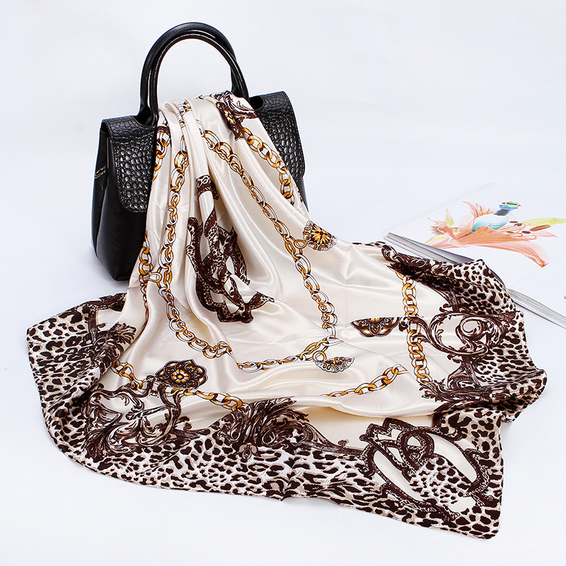 커피색 레오파드 무늬 도트 프린트 실크 스카프 여성용 스카프 인조 실크 새틴 90cm 대형 스카프 유럽 및 미국 스타일 머리 스카프