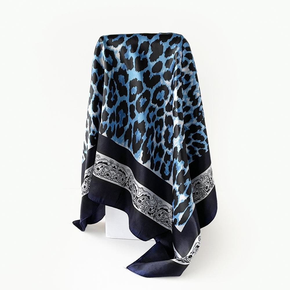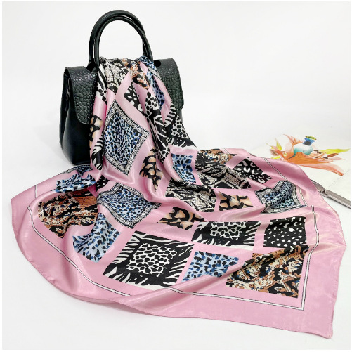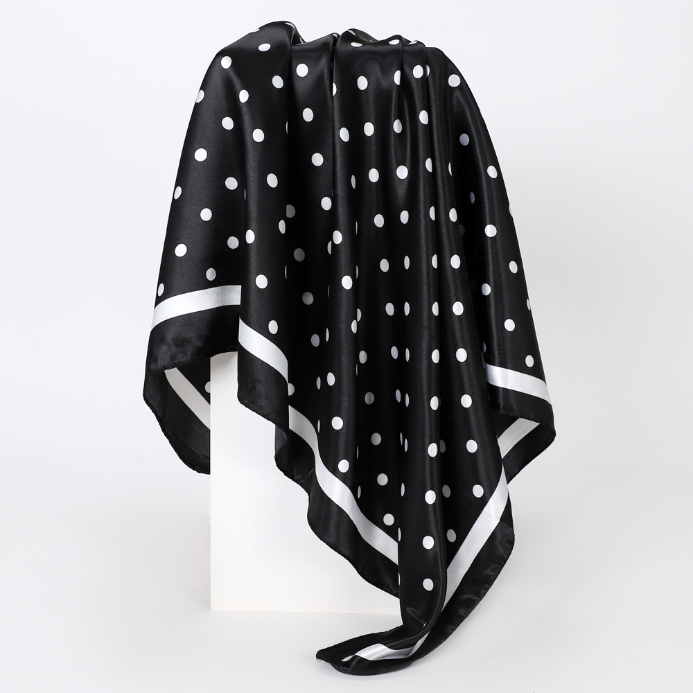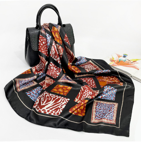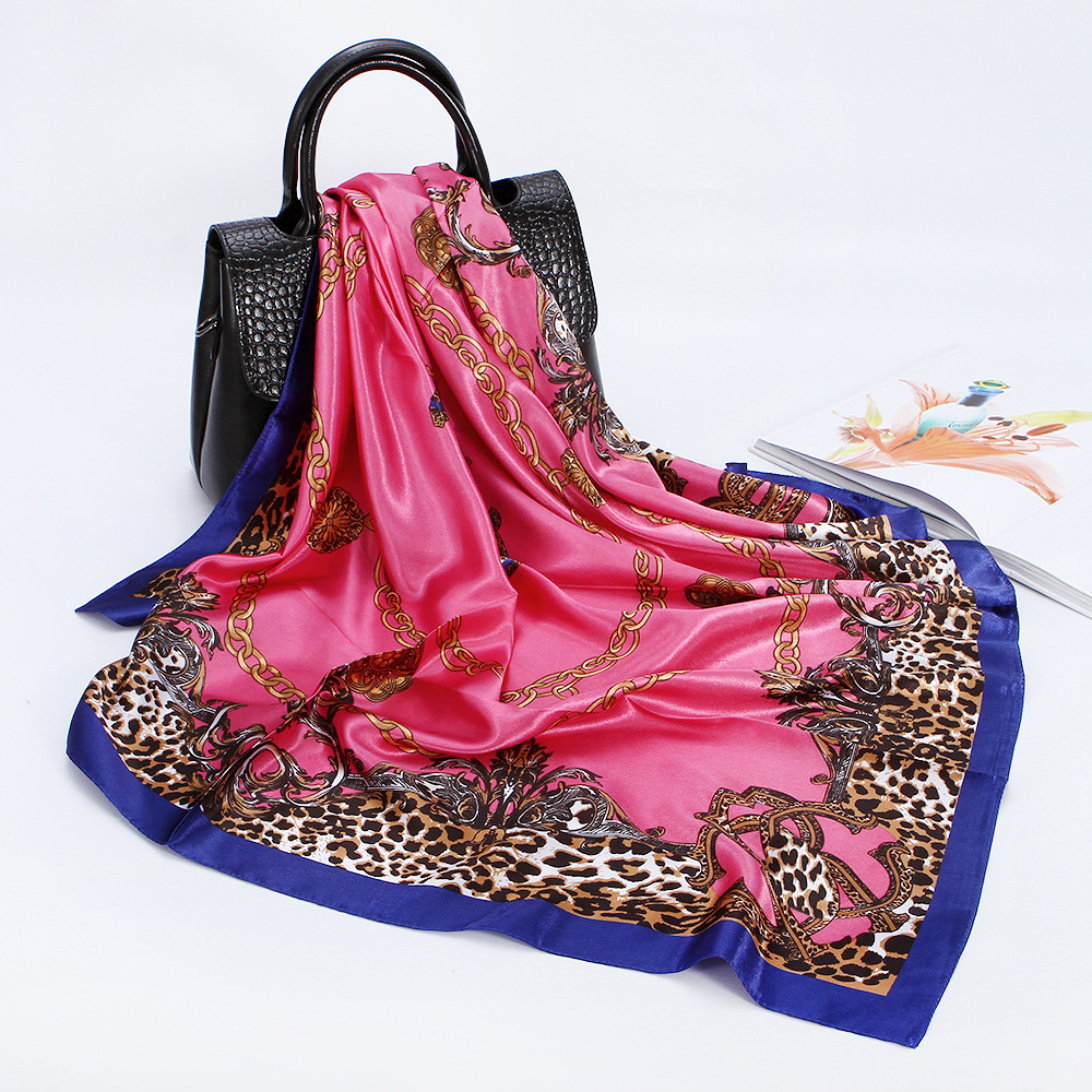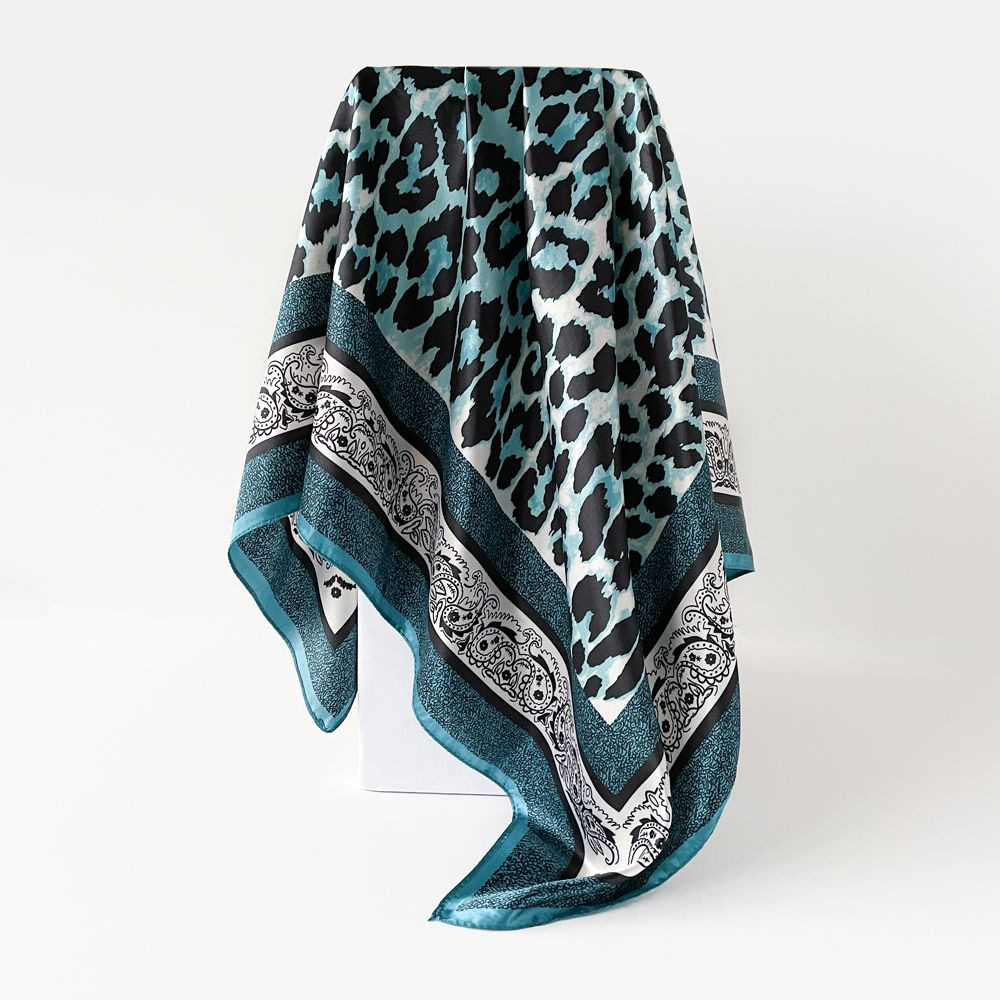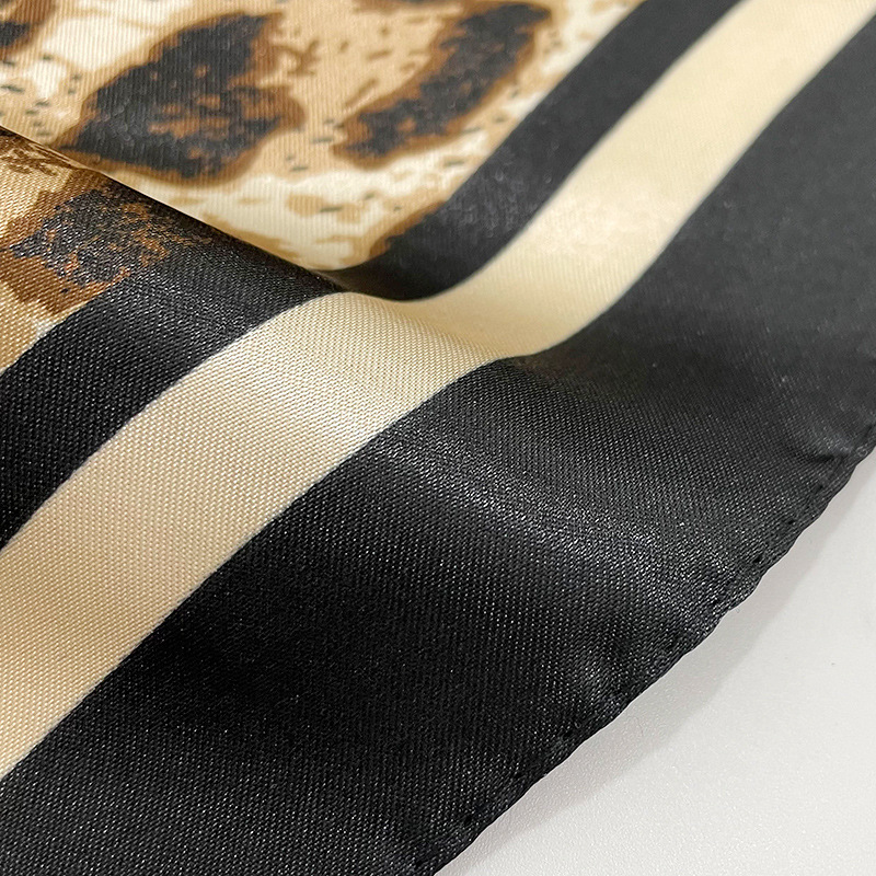 커피색 레오파드 무늬 도트 프린트 실크 스카프 여성용 스카프 인조 실크 새틴 90cm 대형 스카프 유럽 및 미국 스타일 머리 스카프