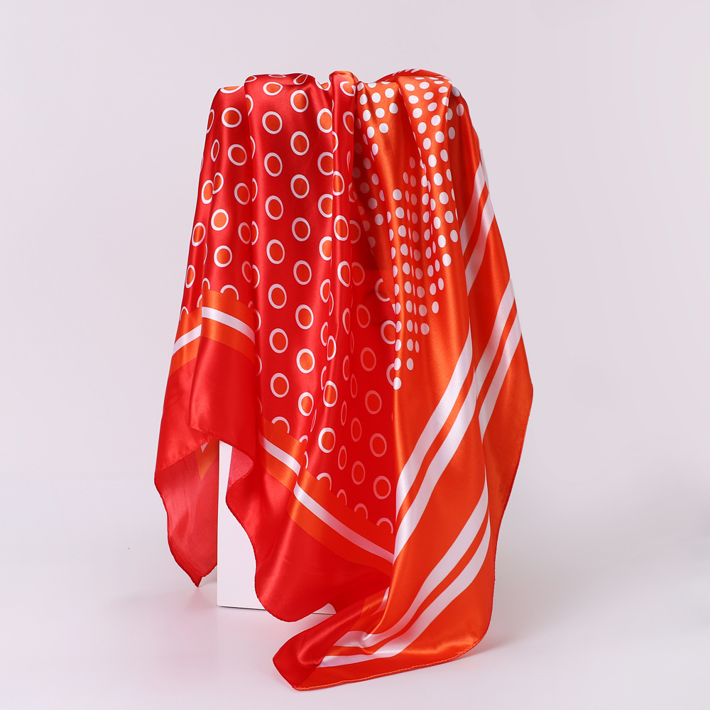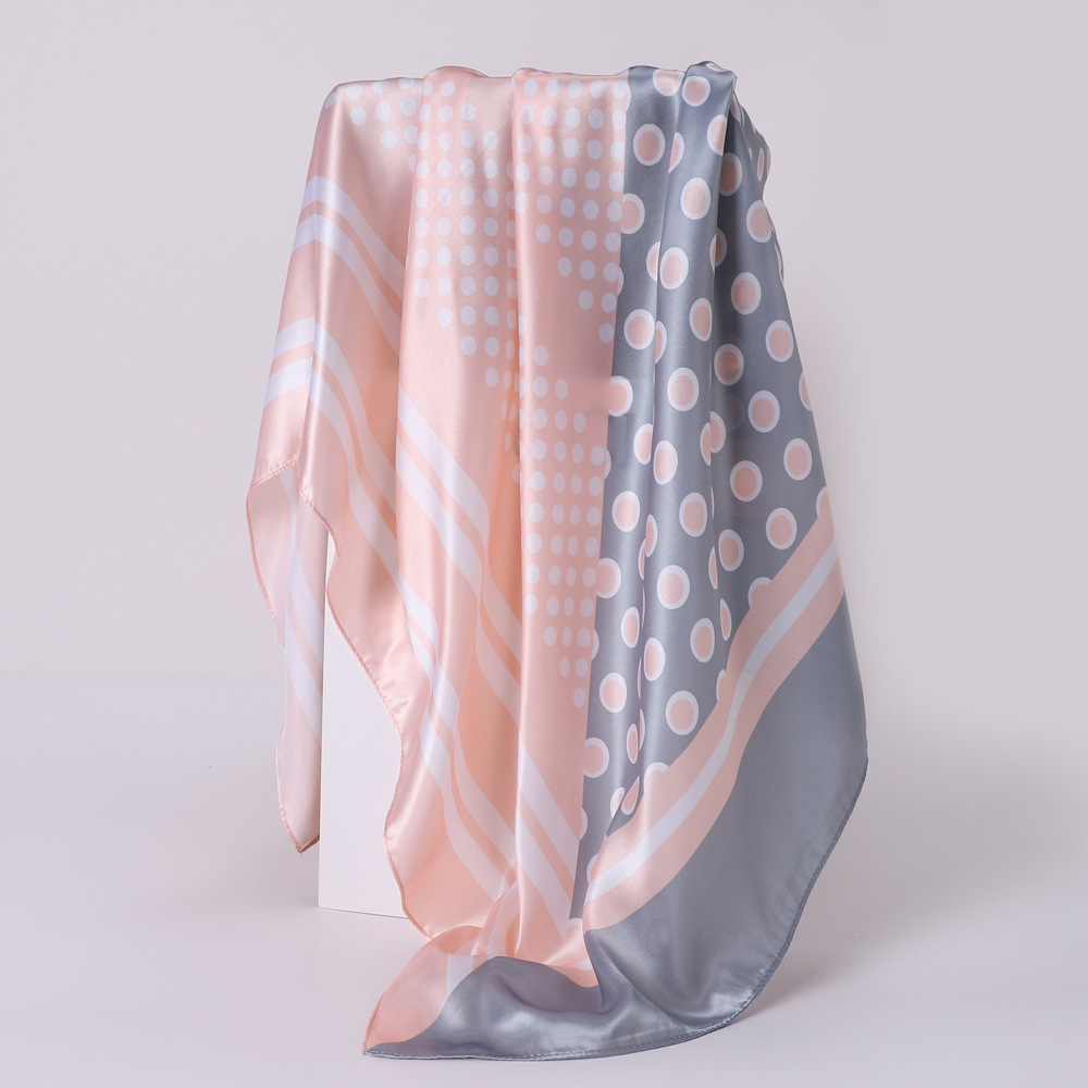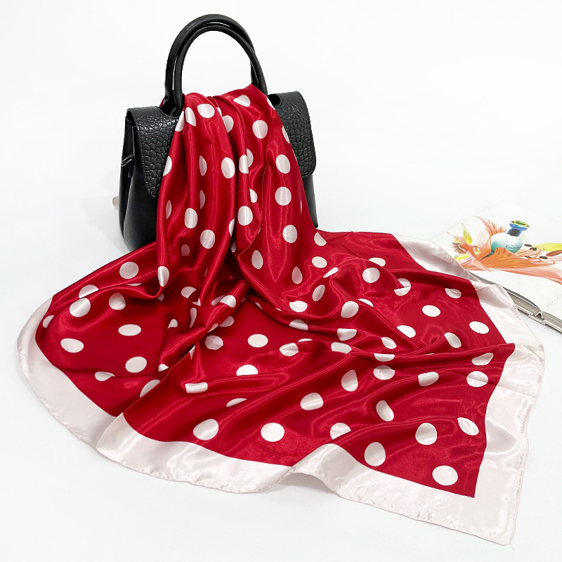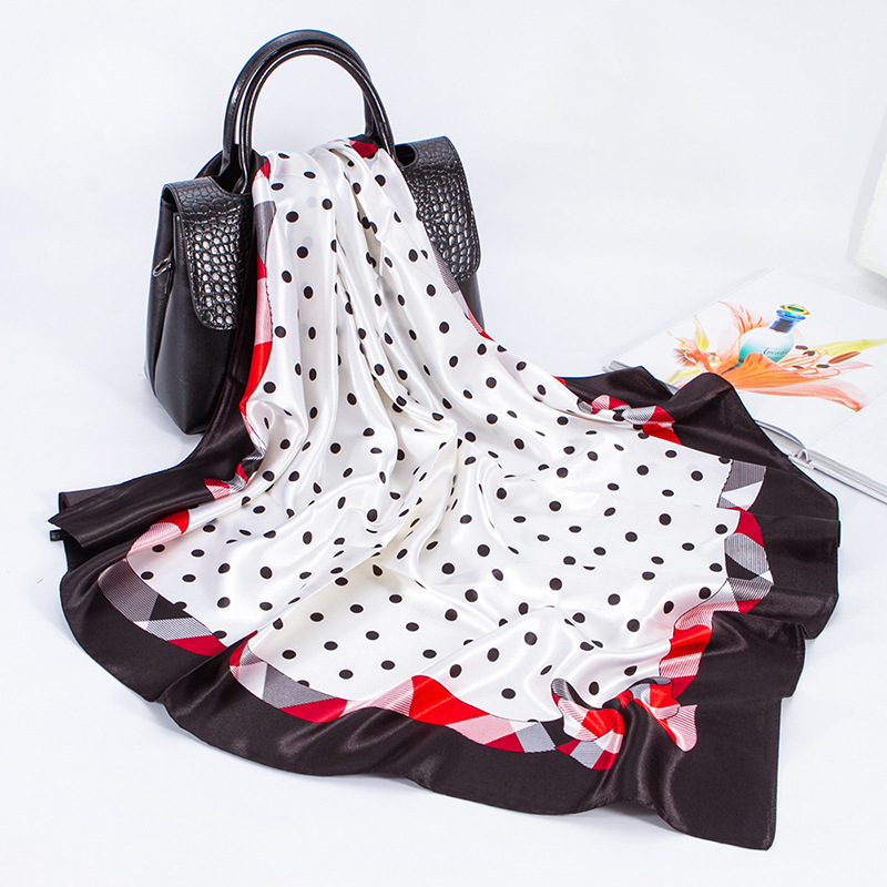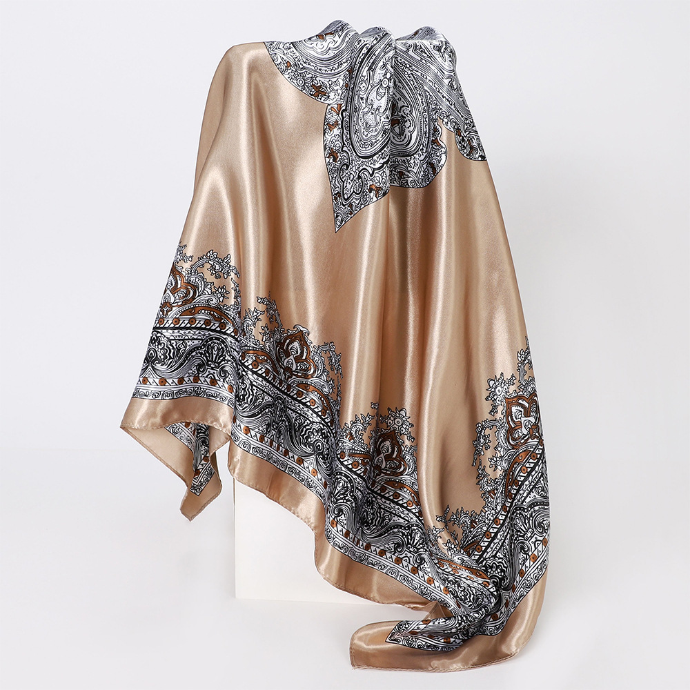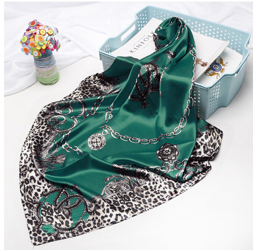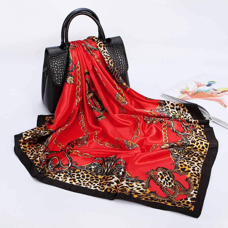 커피색 레오파드 무늬 도트 프린트 실크 스카프 여성용 스카프 인조 실크 새틴 90cm 대형 스카프 유럽 및 미국 스타일 머리 스카프