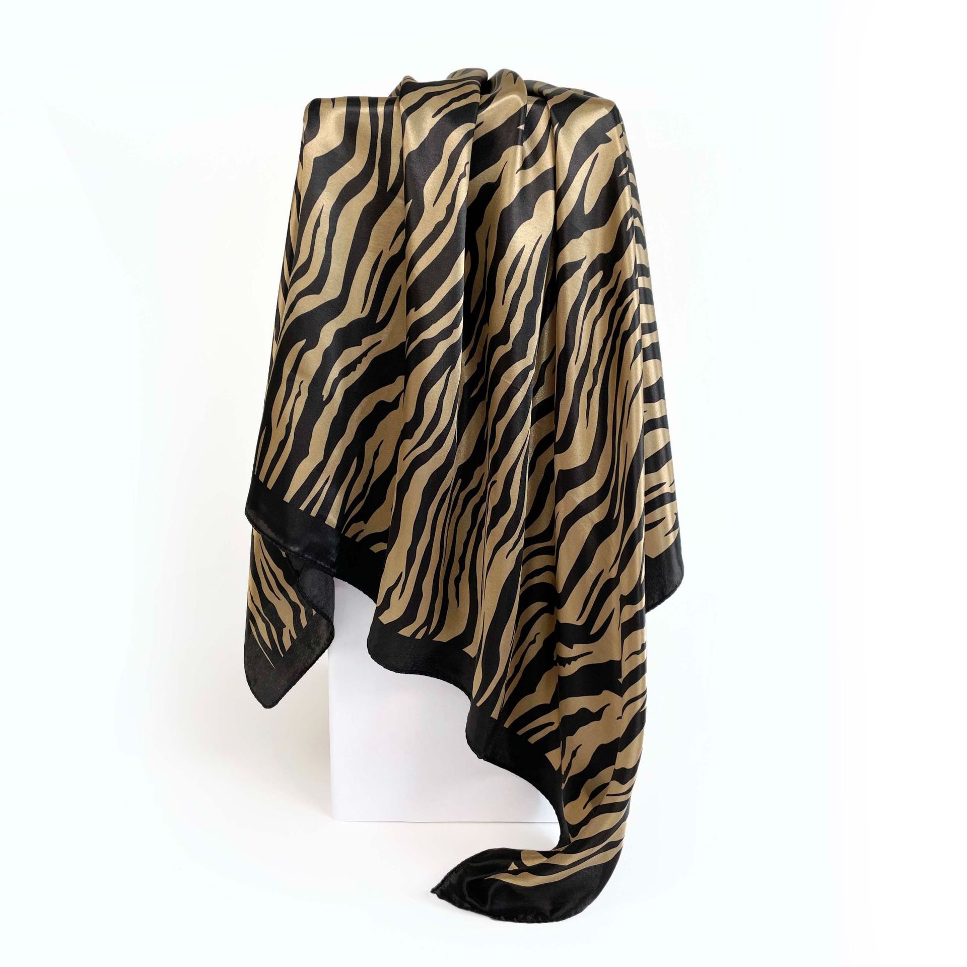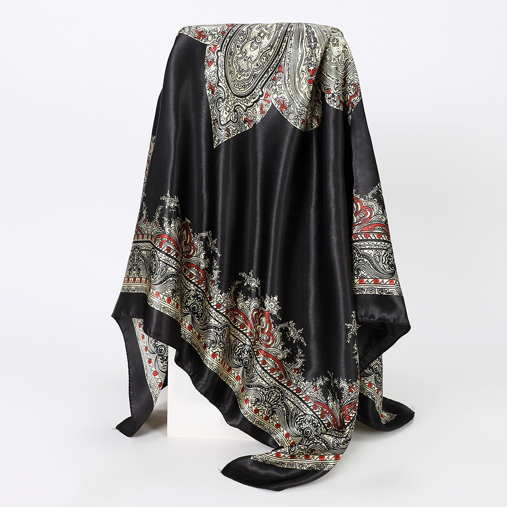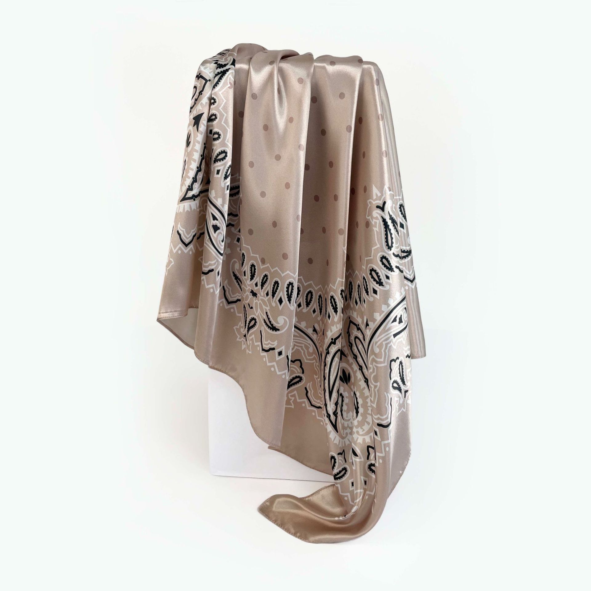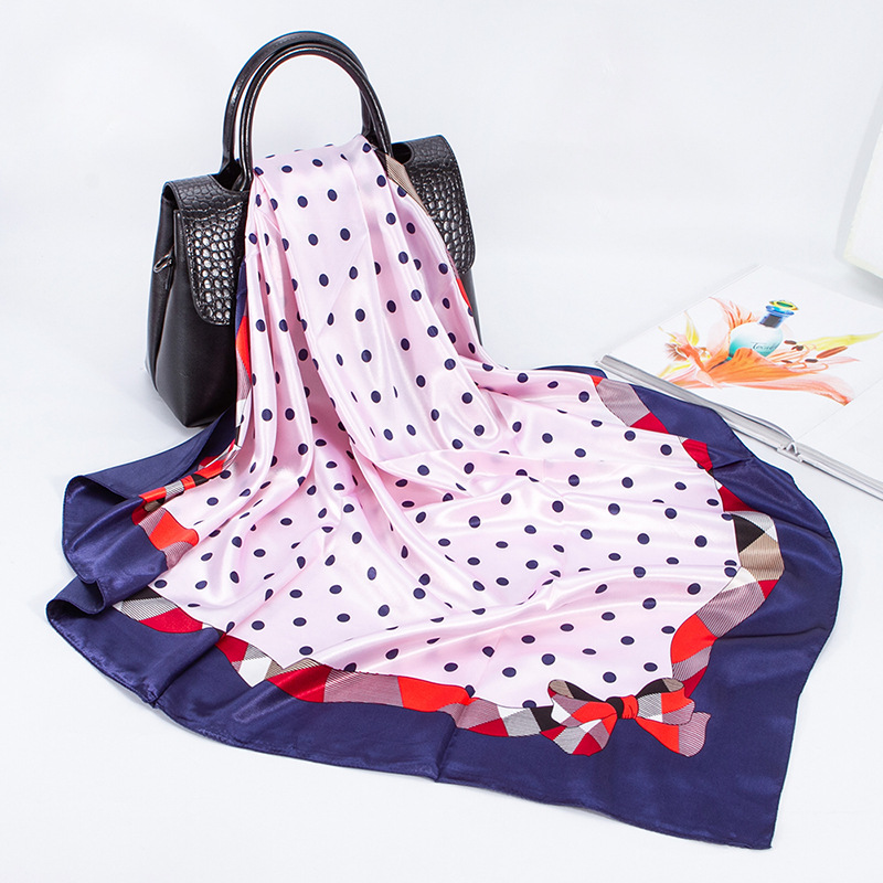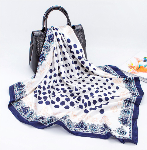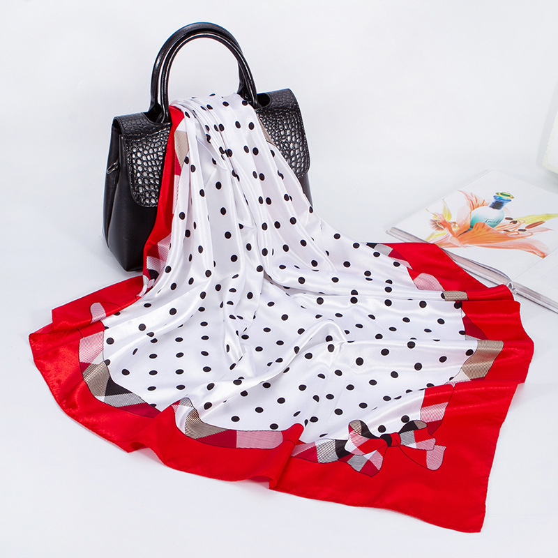 커피색 레오파드 무늬 도트 프린트 실크 스카프 여성용 스카프 인조 실크 새틴 90cm 대형 스카프 유럽 및 미국 스타일 머리 스카프