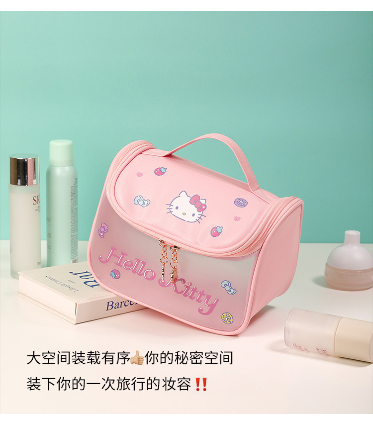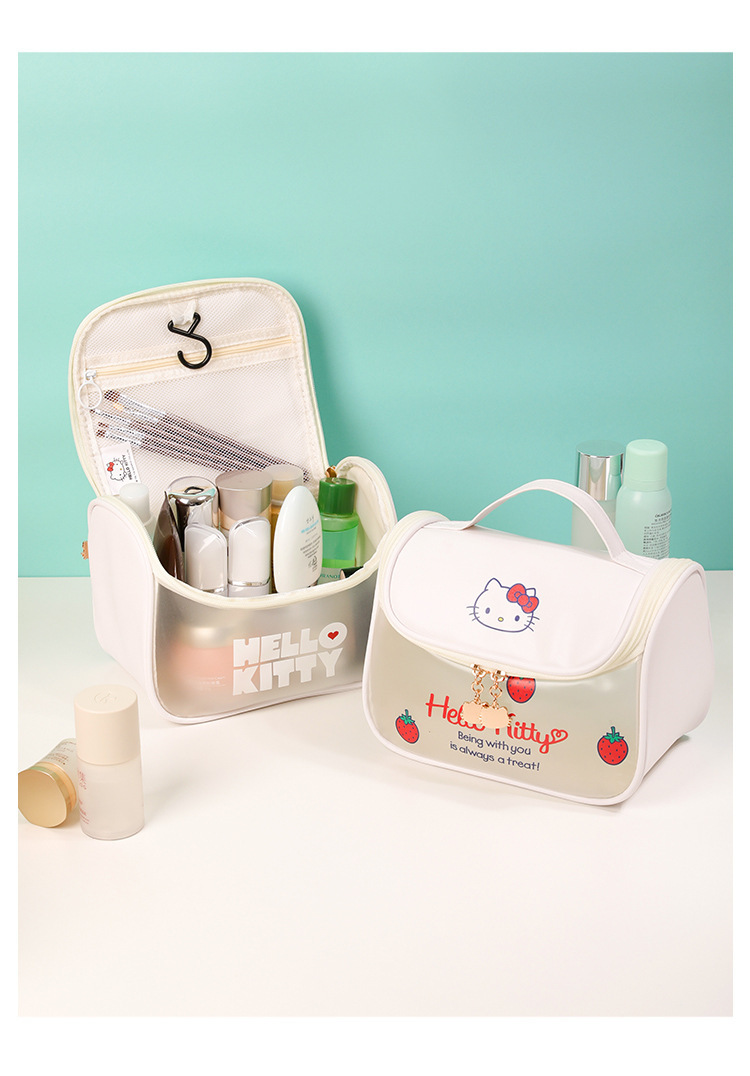 인기 있는 헬로키티 화장품 가방, 고급스럽고 대용량, 방수 휴대용 휴대용 후크 세면도구 보관 가방스토어 가기