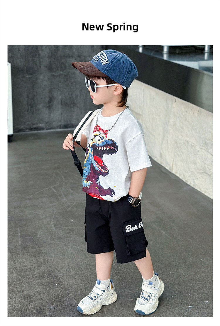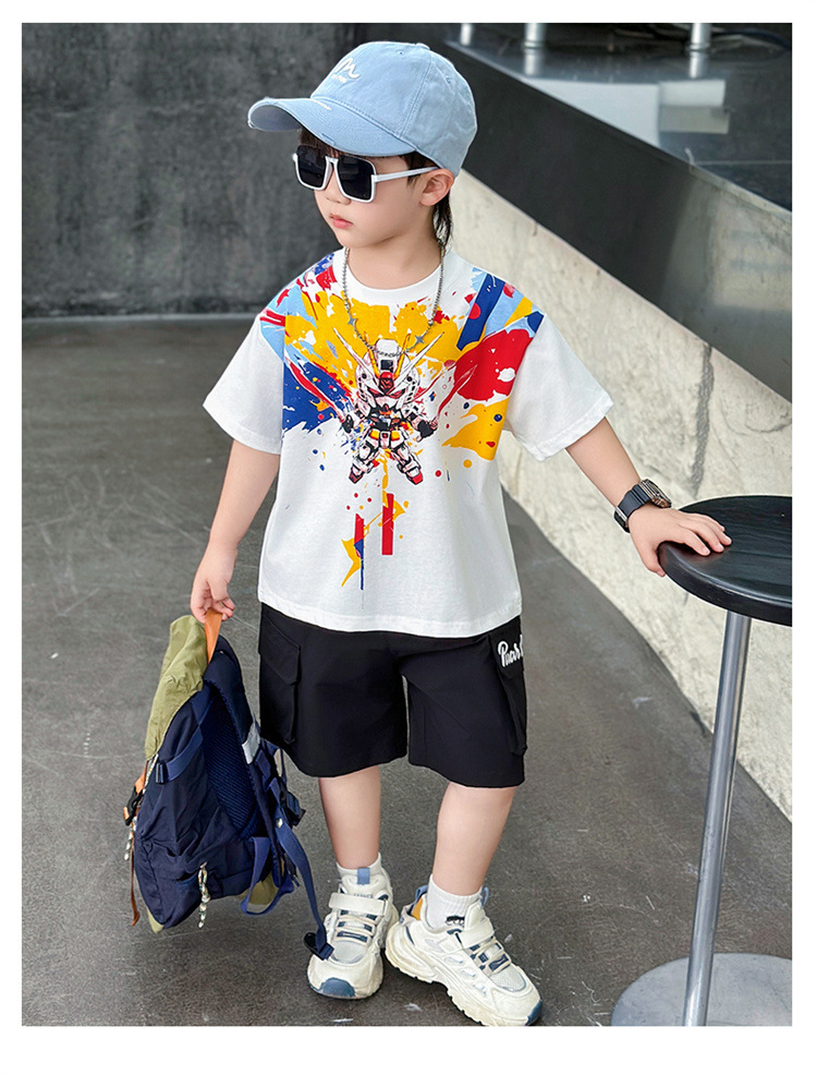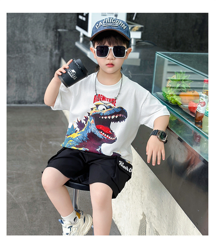 남아 여름옷, 크로스보더 아동복, 한국판 트렌디하고 쿨한 남아 베이비 인터넷 연예인 패셔너블한 반팔 투피스 얇은 옷 트렌디한 옷