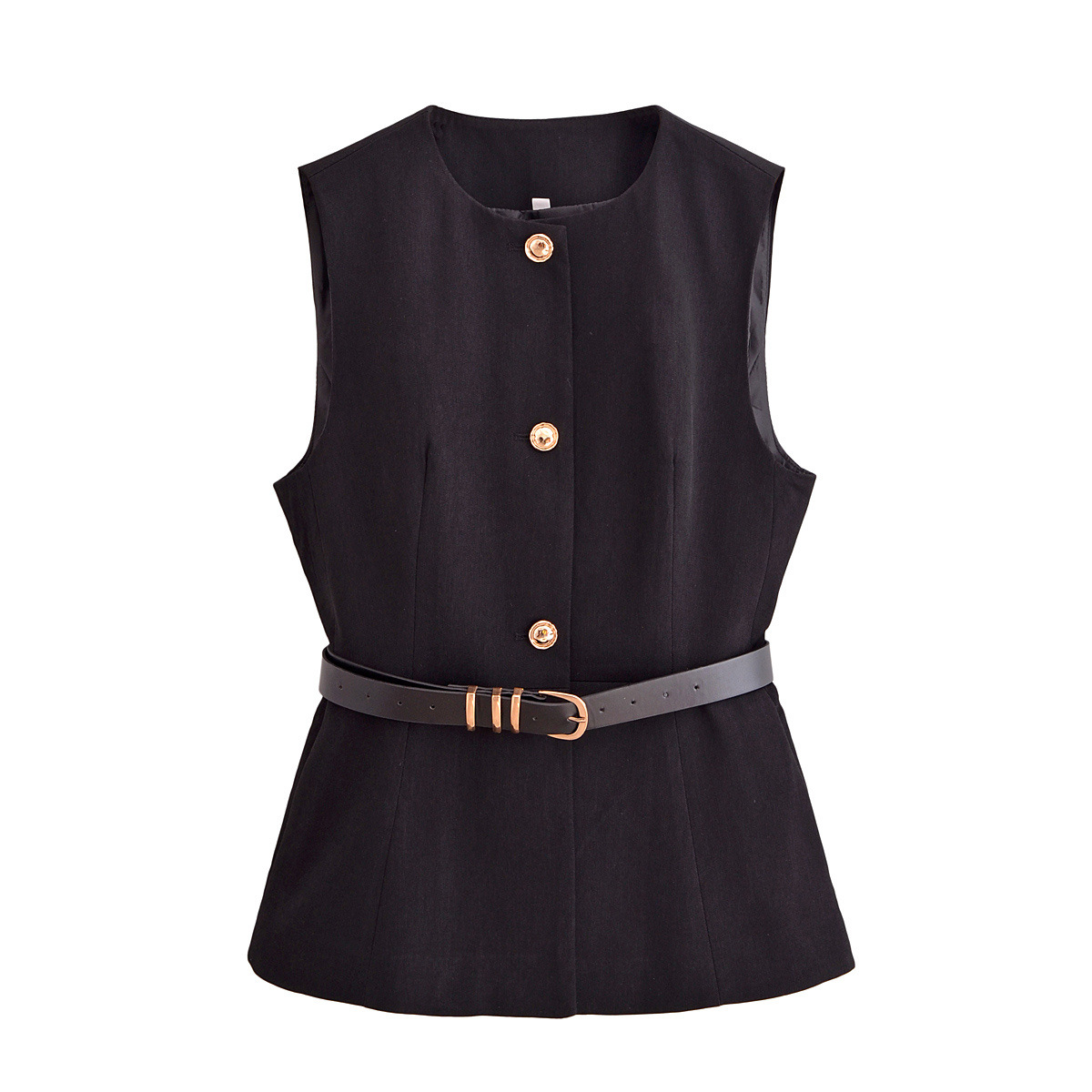 UC&ZA 국경 간 AliExpress 여성 유럽과 미국 스타일 프렌치 라운드 넥 벨트 정장 조끼 9300525