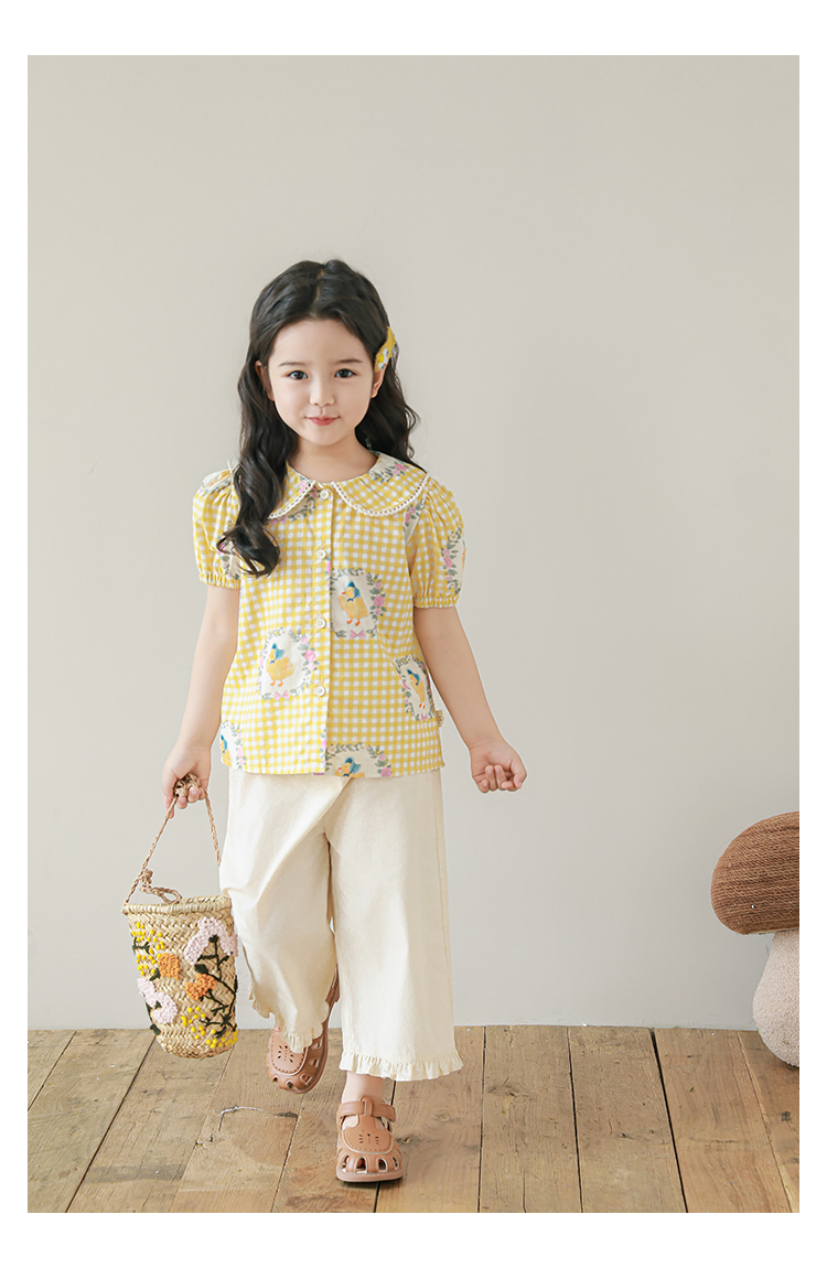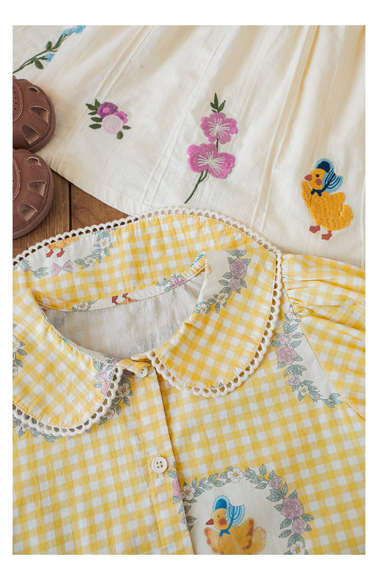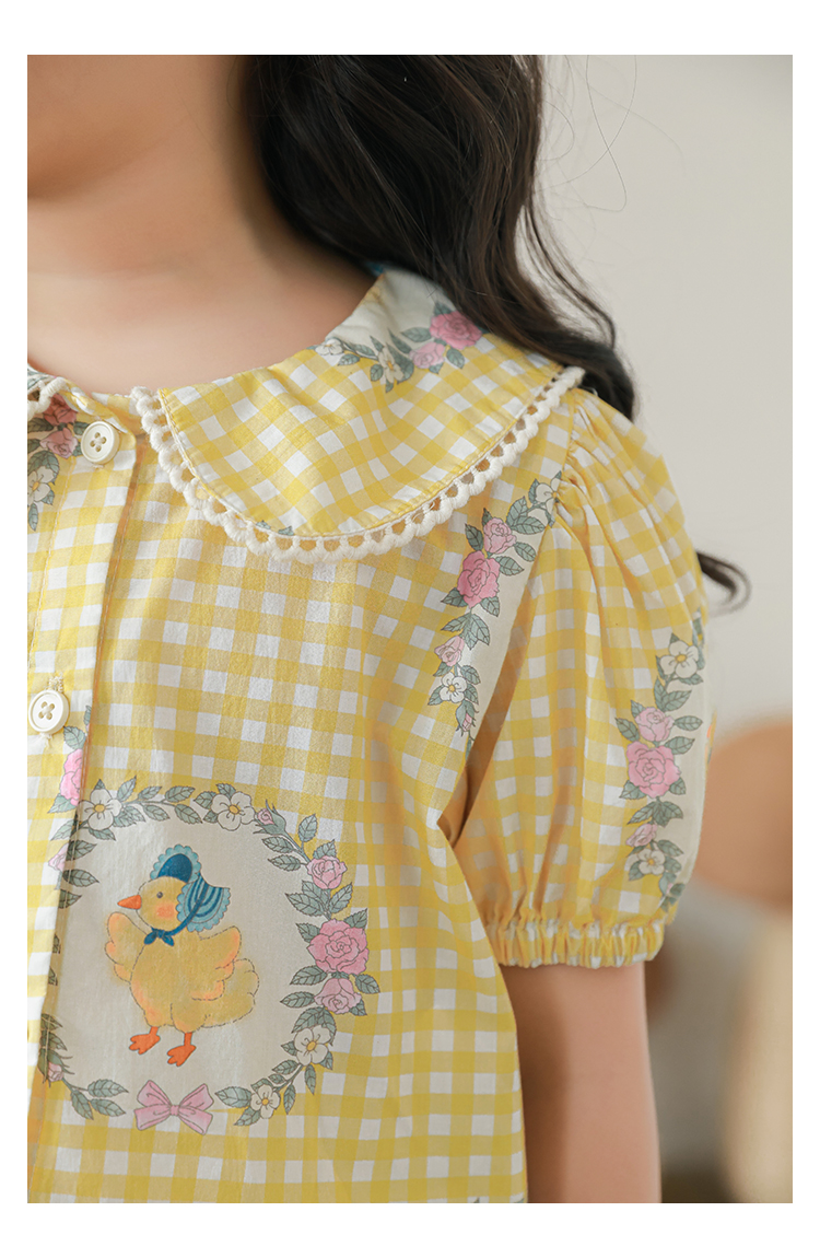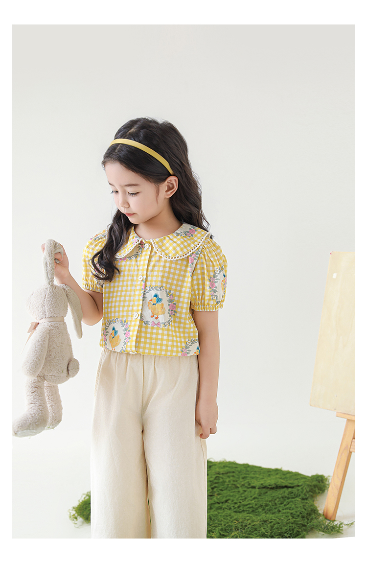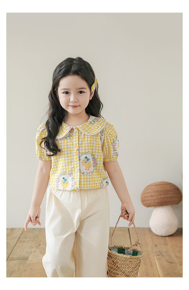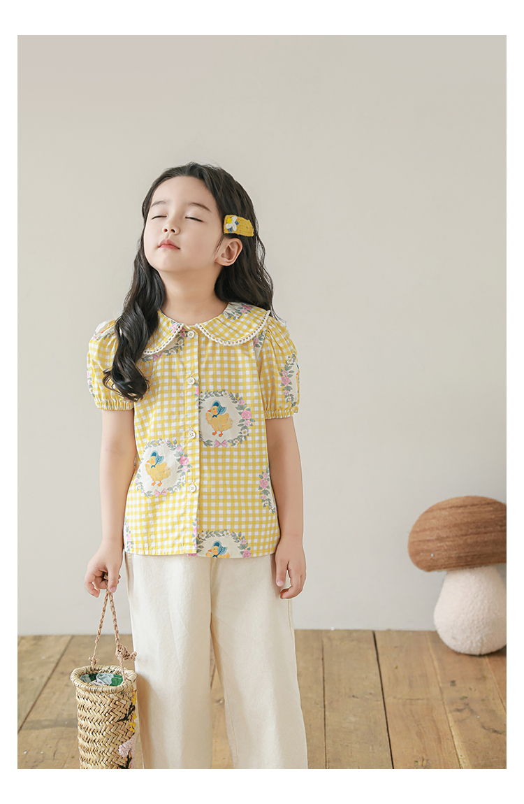 • 반팔 셔츠 체크무늬 노란색 오리 X5037