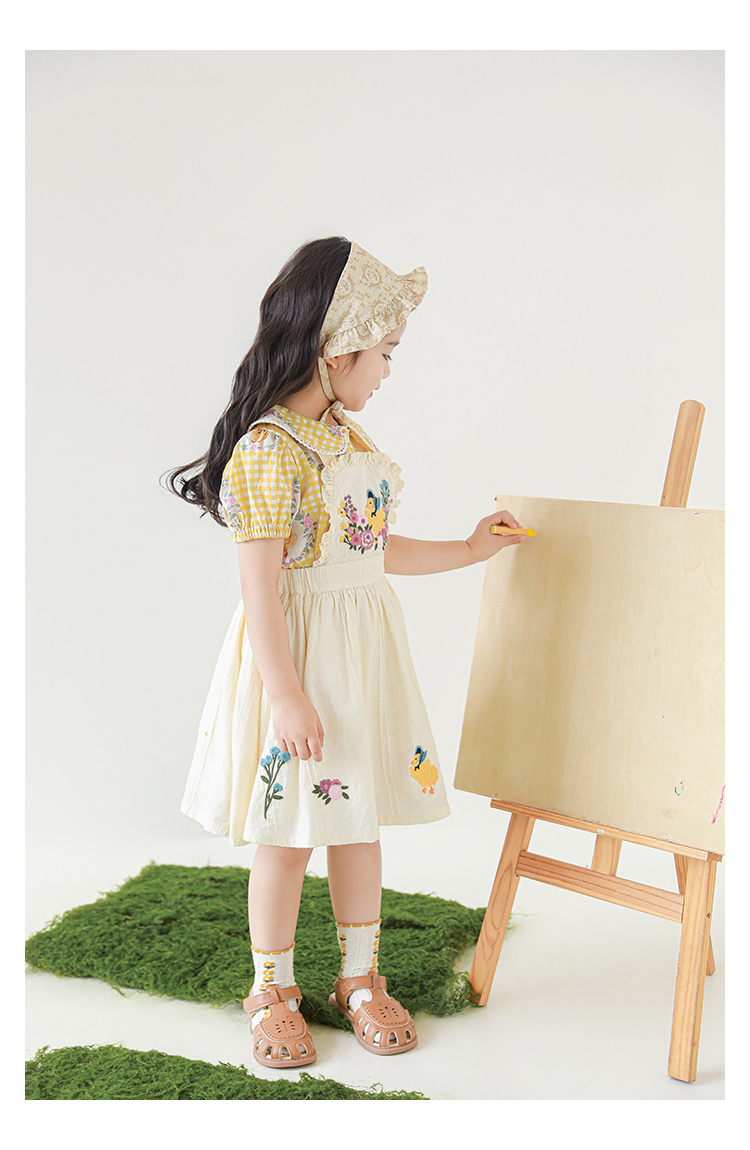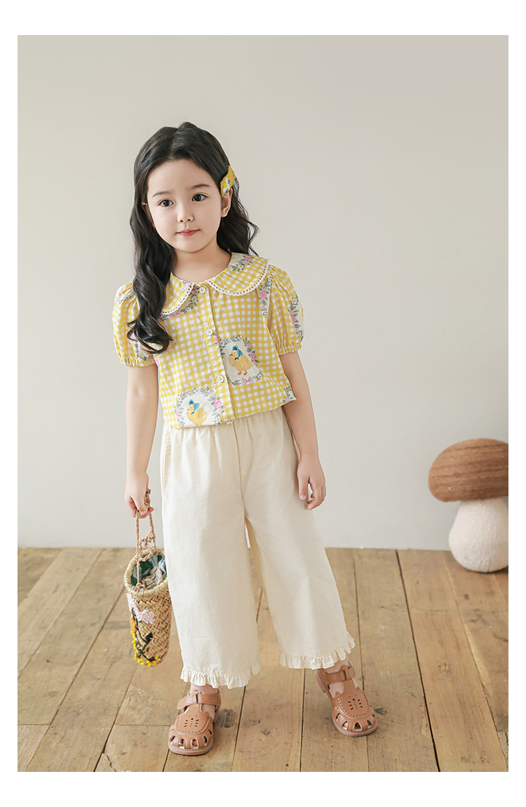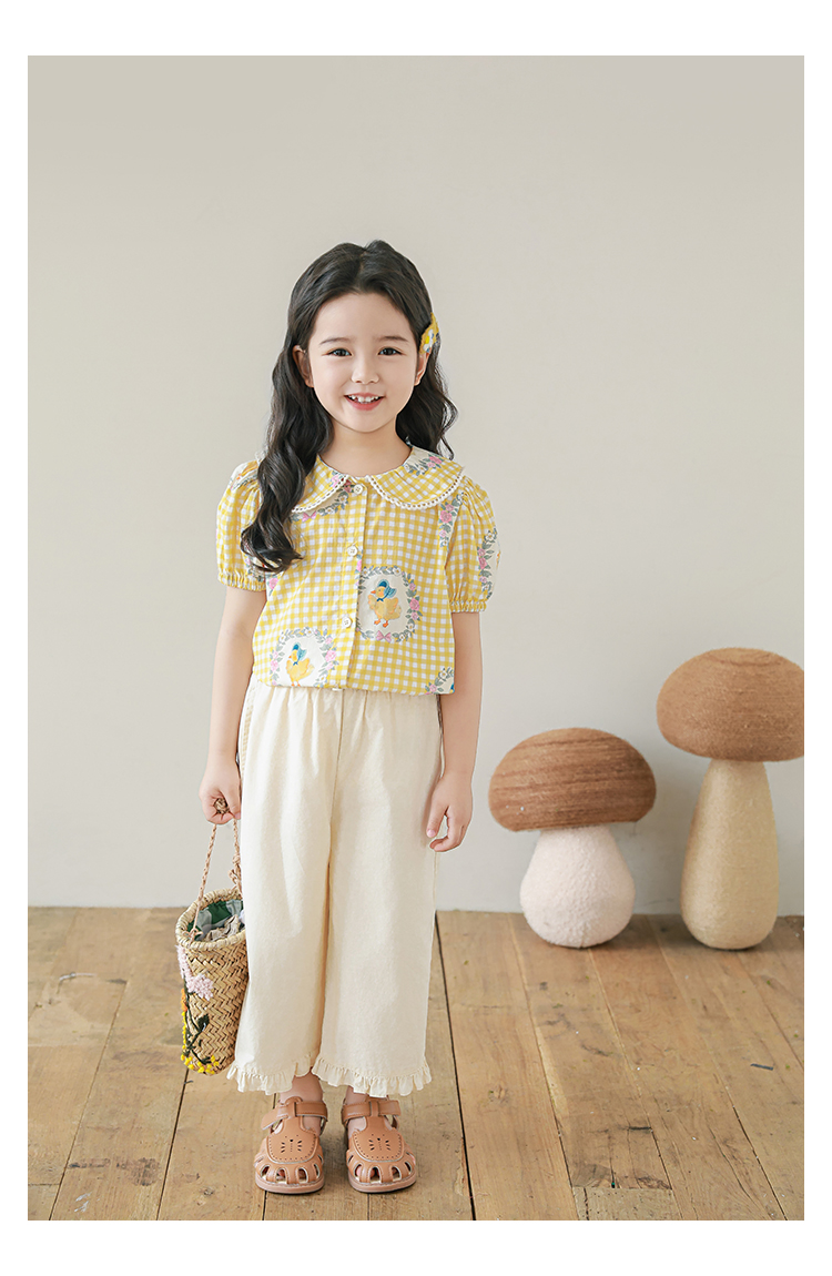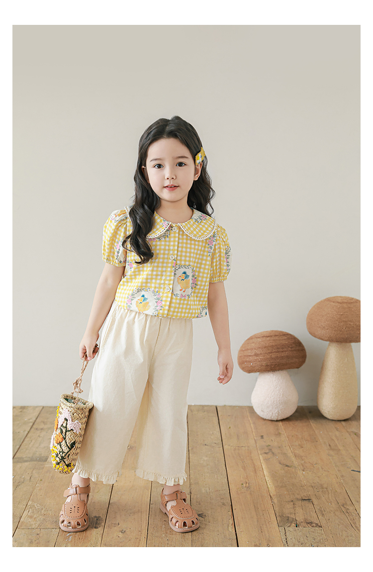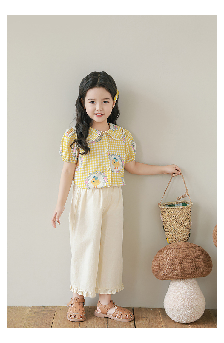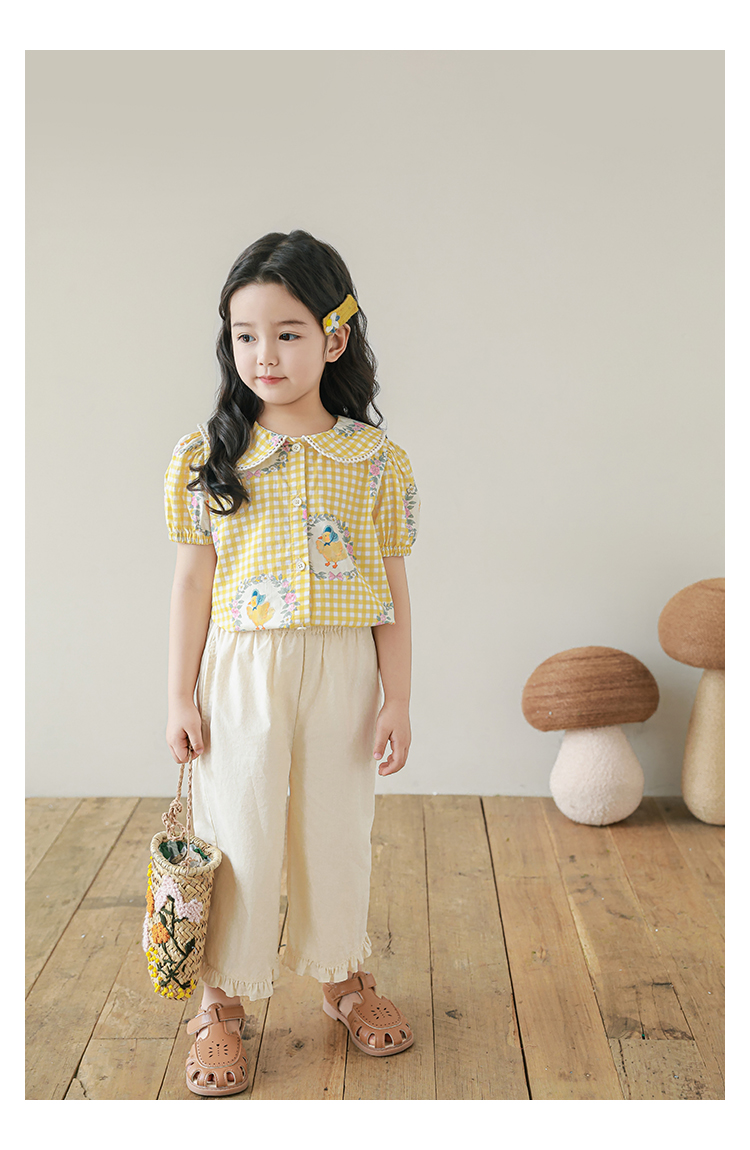 • 반팔 셔츠 체크무늬 노란색 오리 X5037