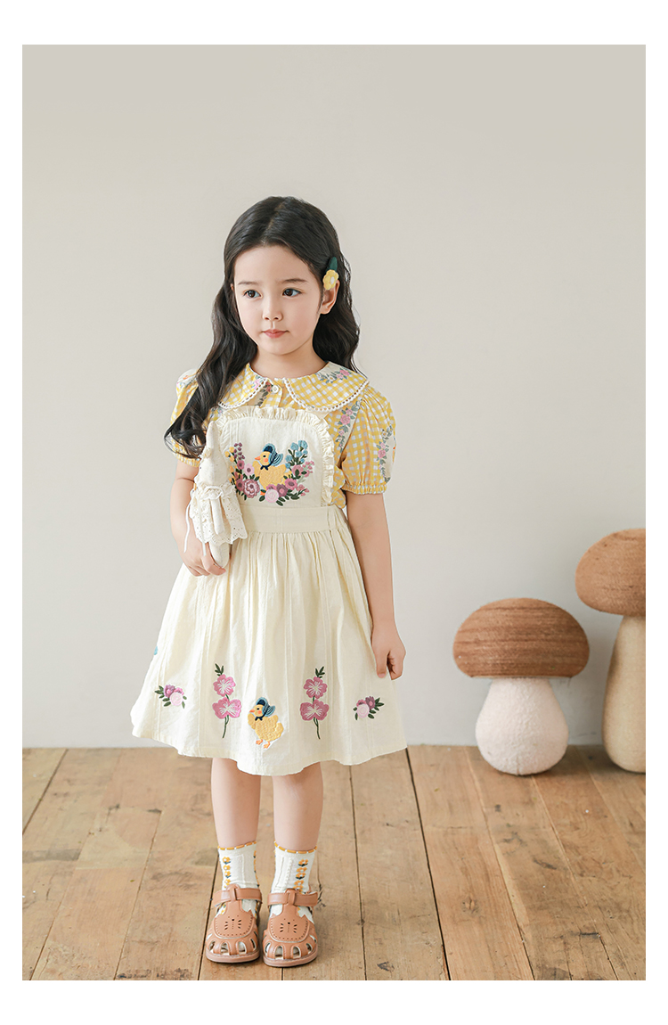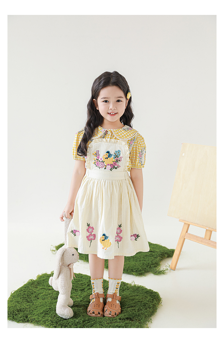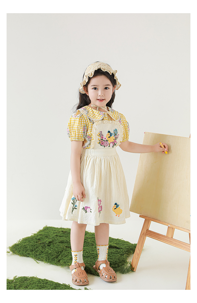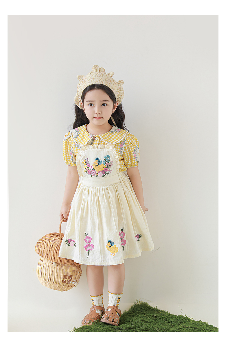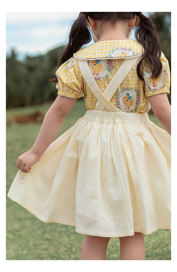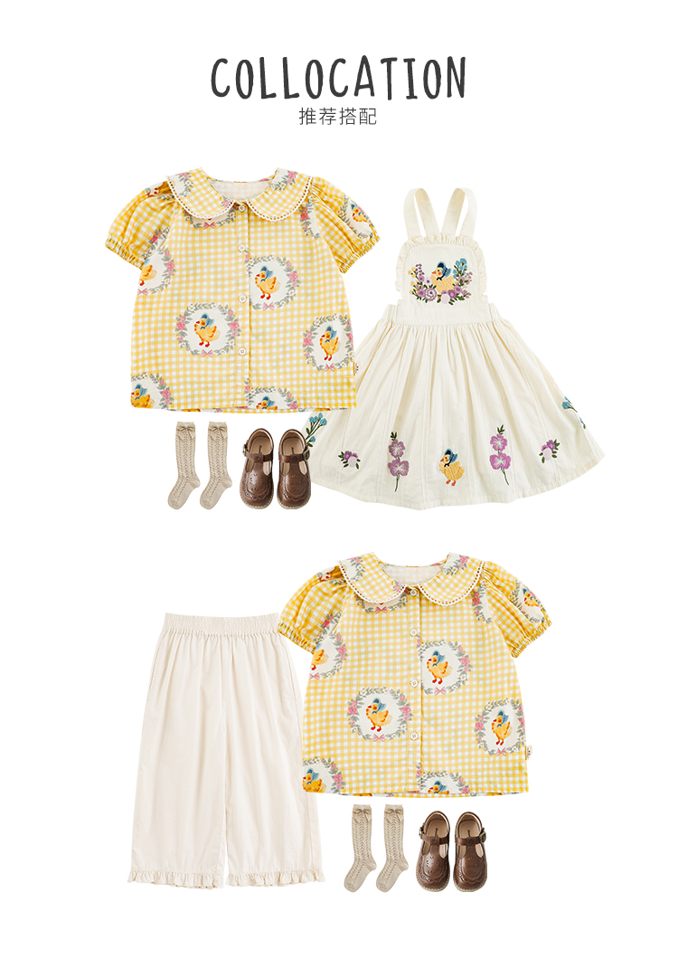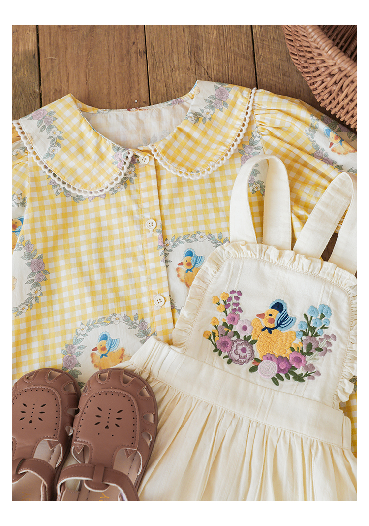 • 반팔 셔츠 체크무늬 노란색 오리 X5037
