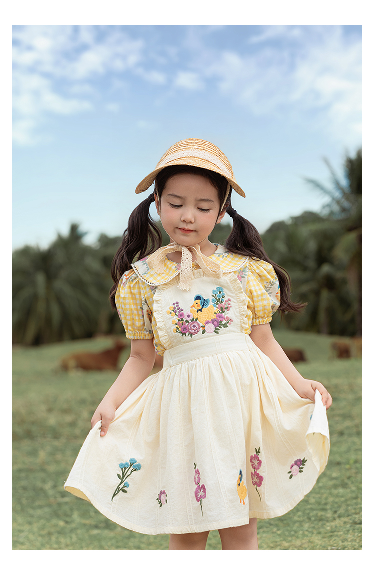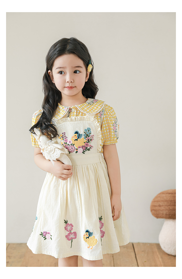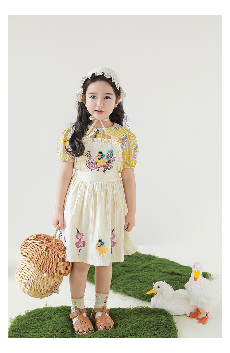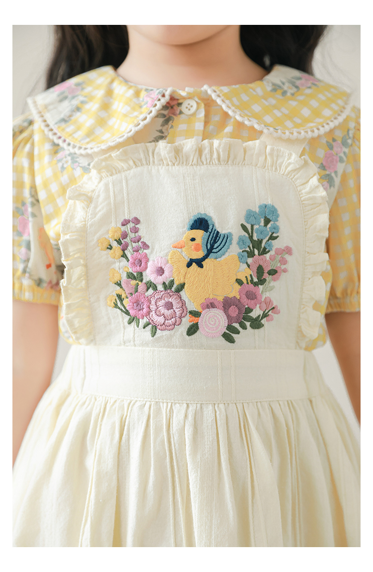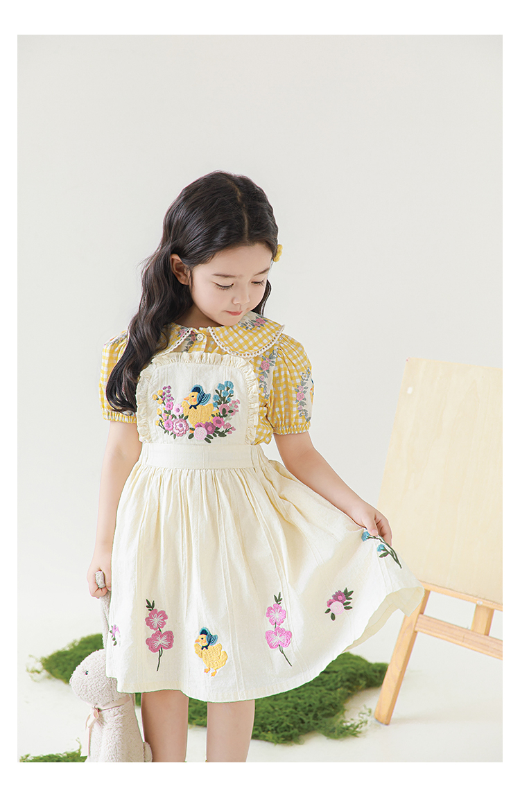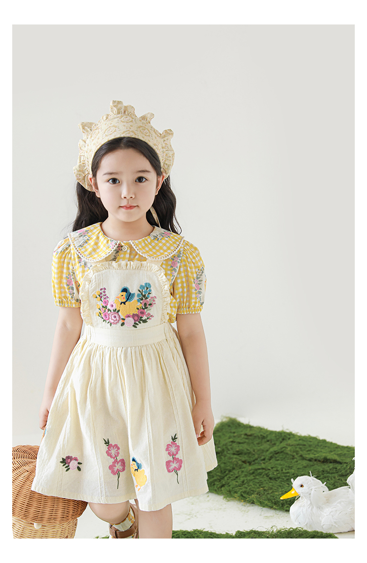 • 반팔 셔츠 체크무늬 노란색 오리 X5037