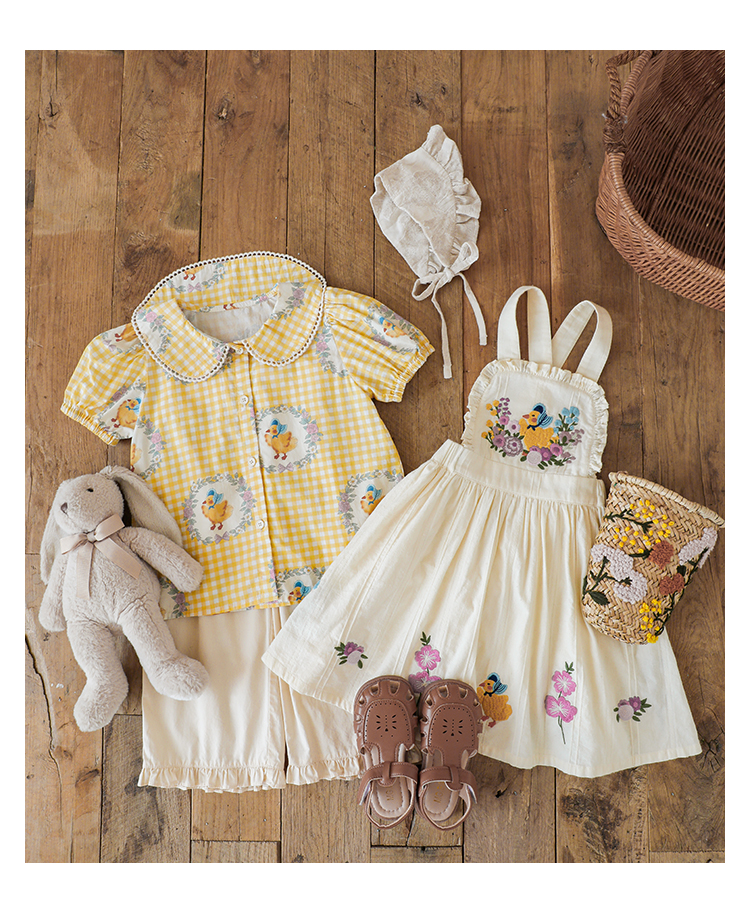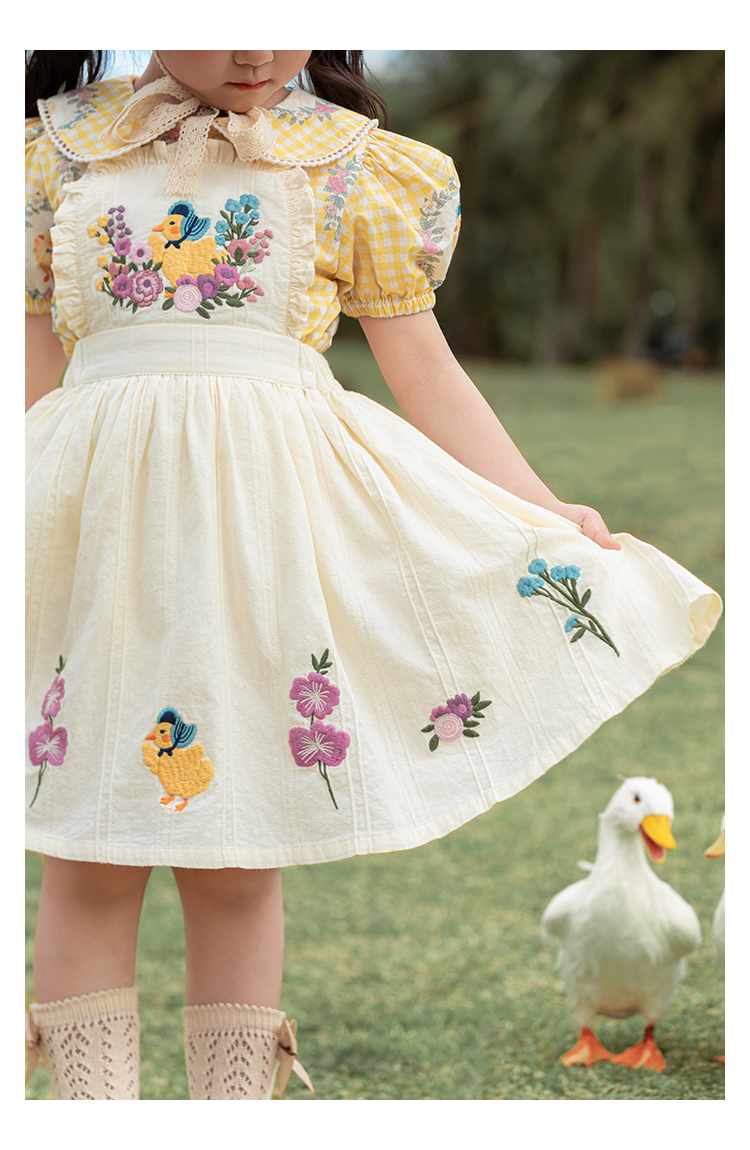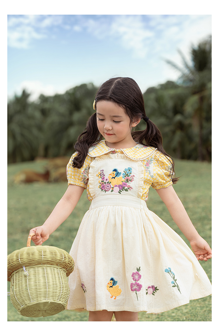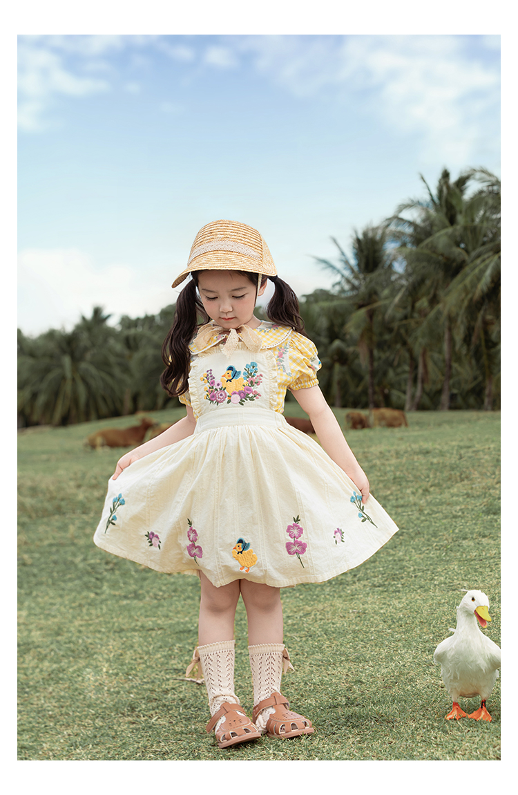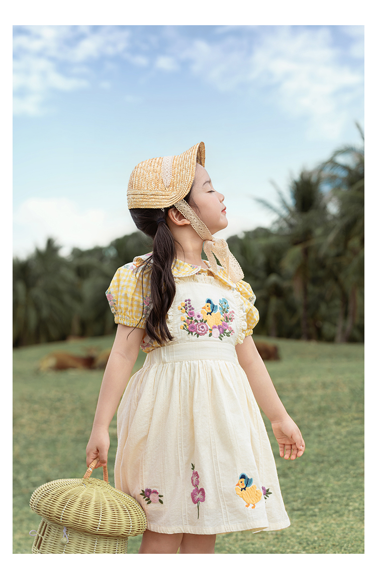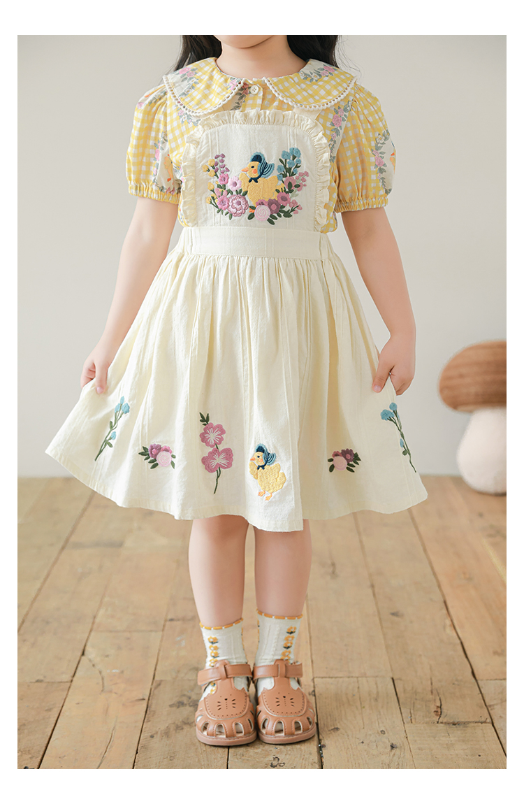• 반팔 셔츠 체크무늬 노란색 오리 X5037