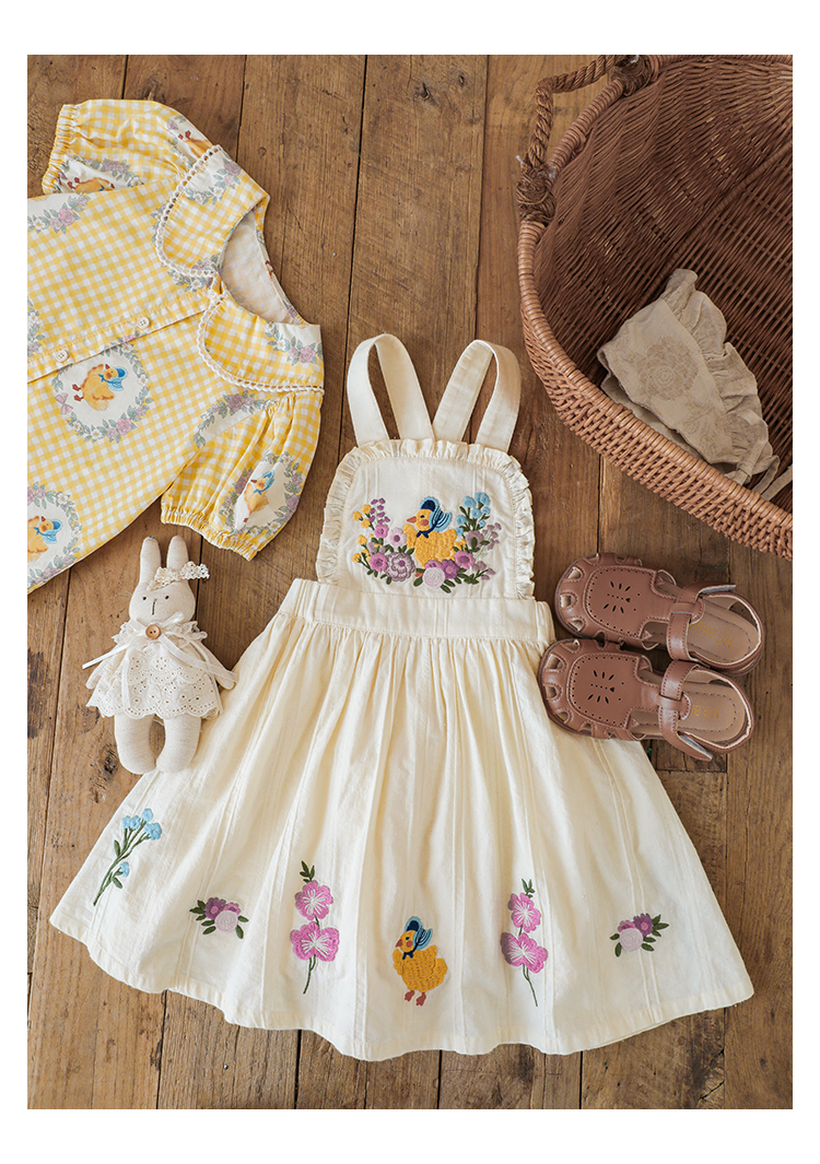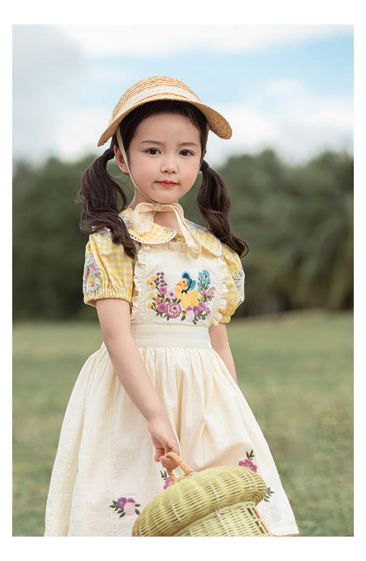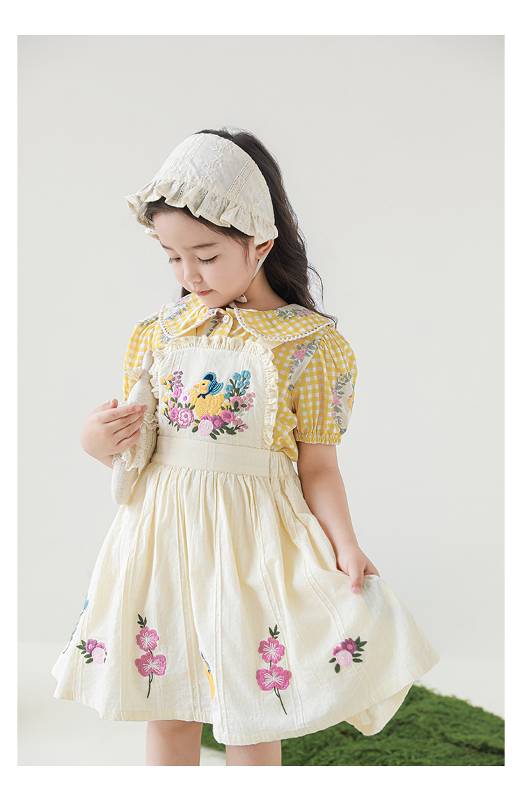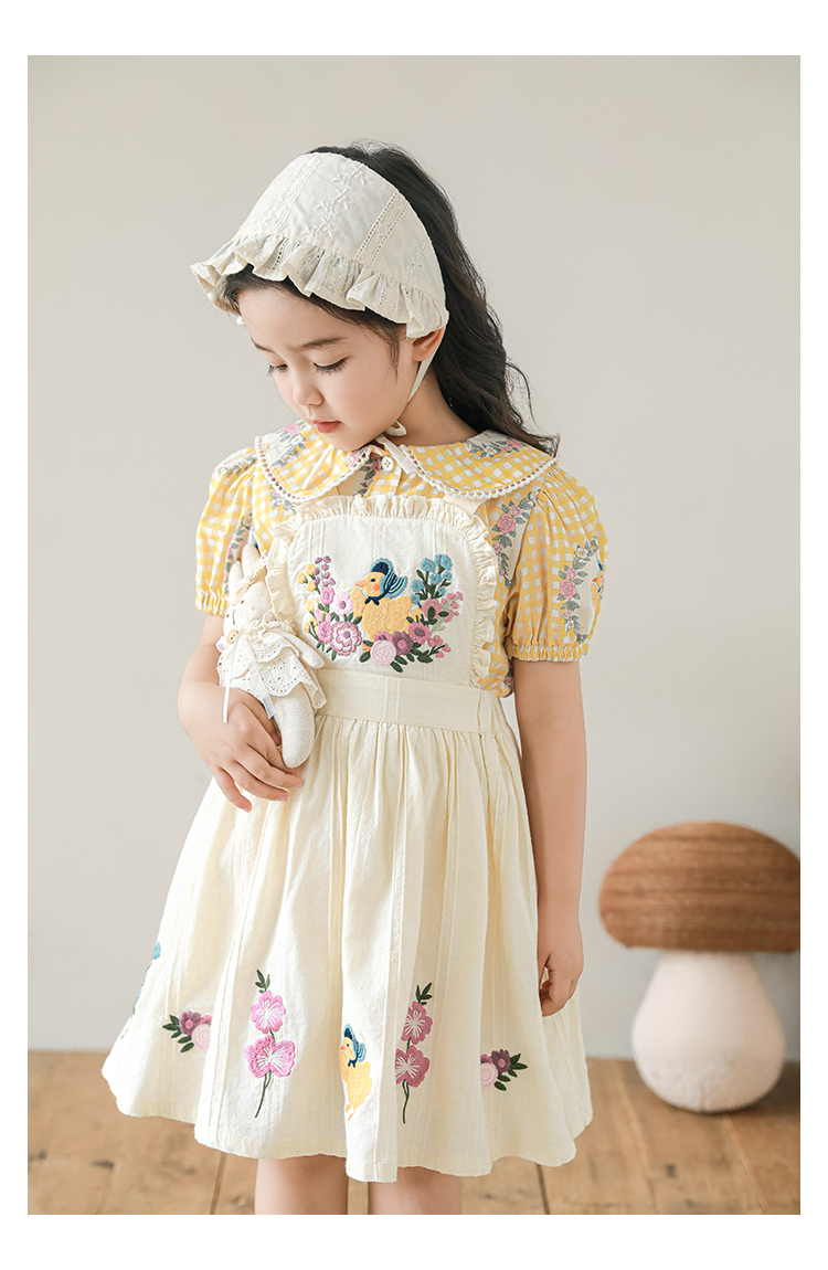 Wurib 소녀 2025 여름 동화 공주 원래 멋진 셔츠 어린이 귀여운 달콤한 서스펜더 스커트