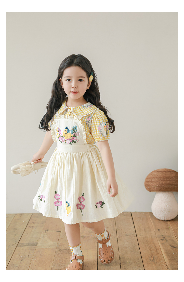 Wurib 소녀 2025 여름 동화 공주 원래 멋진 셔츠 어린이 귀여운 달콤한 서스펜더 스커트스토어 가기