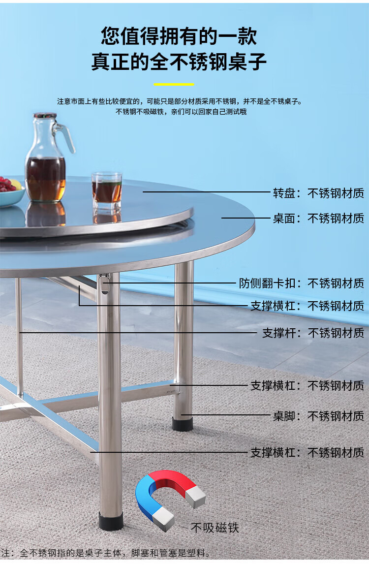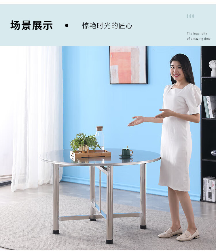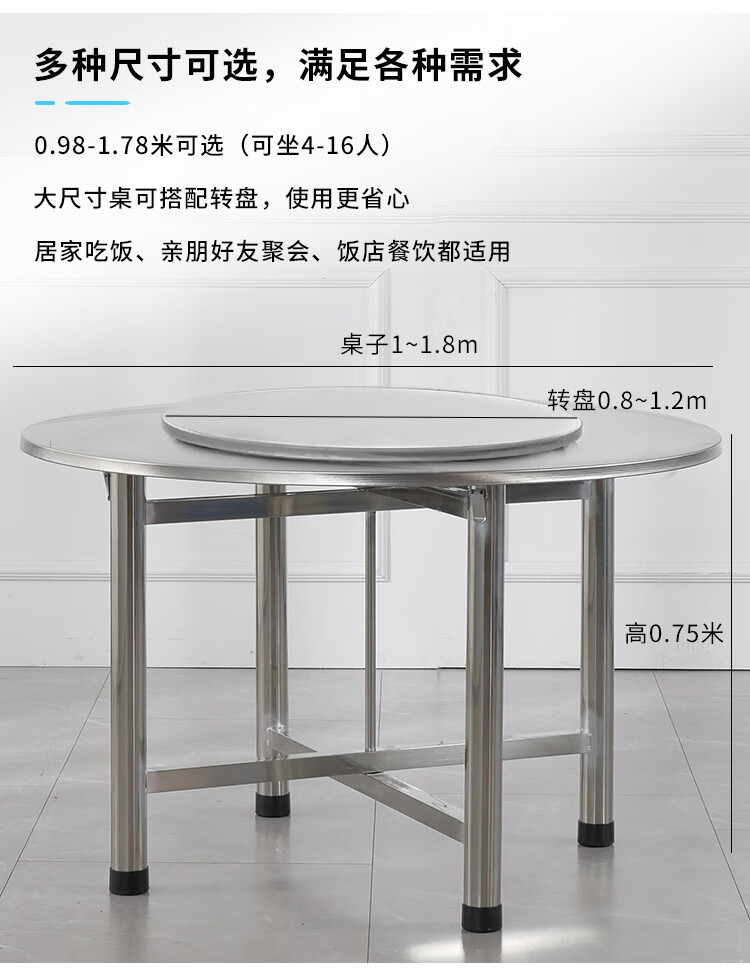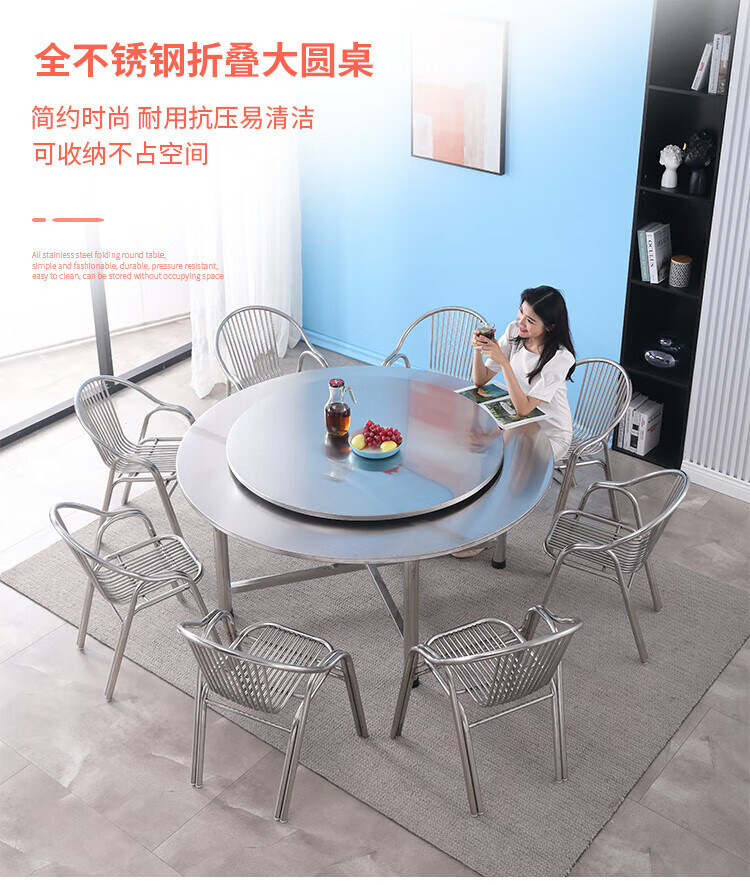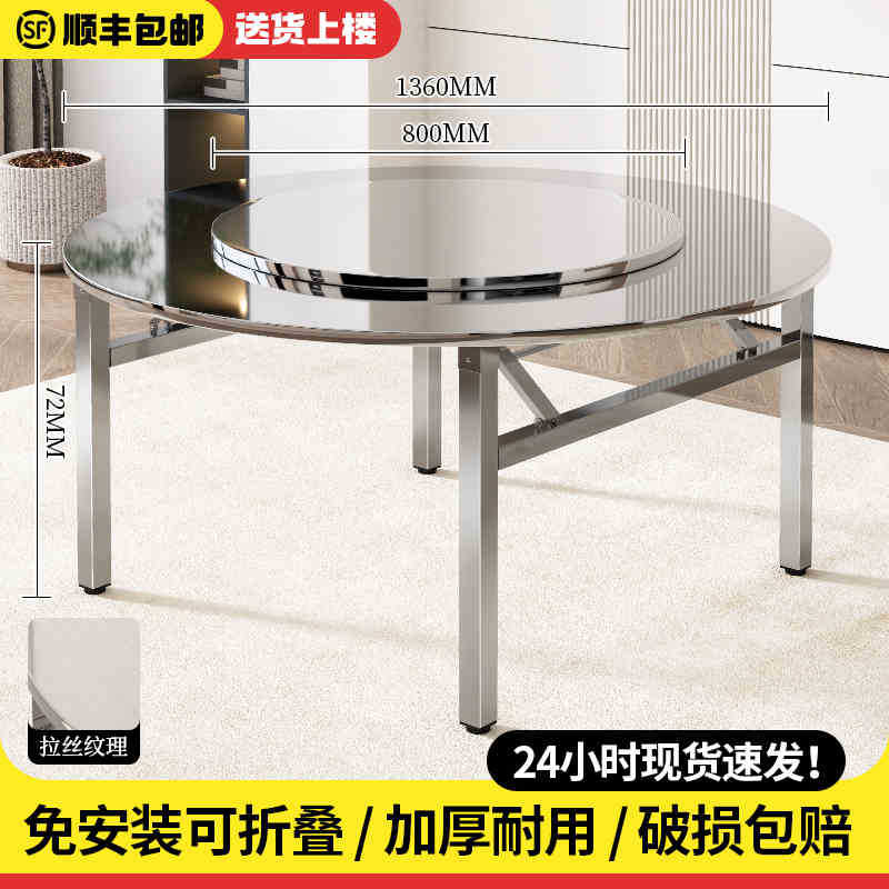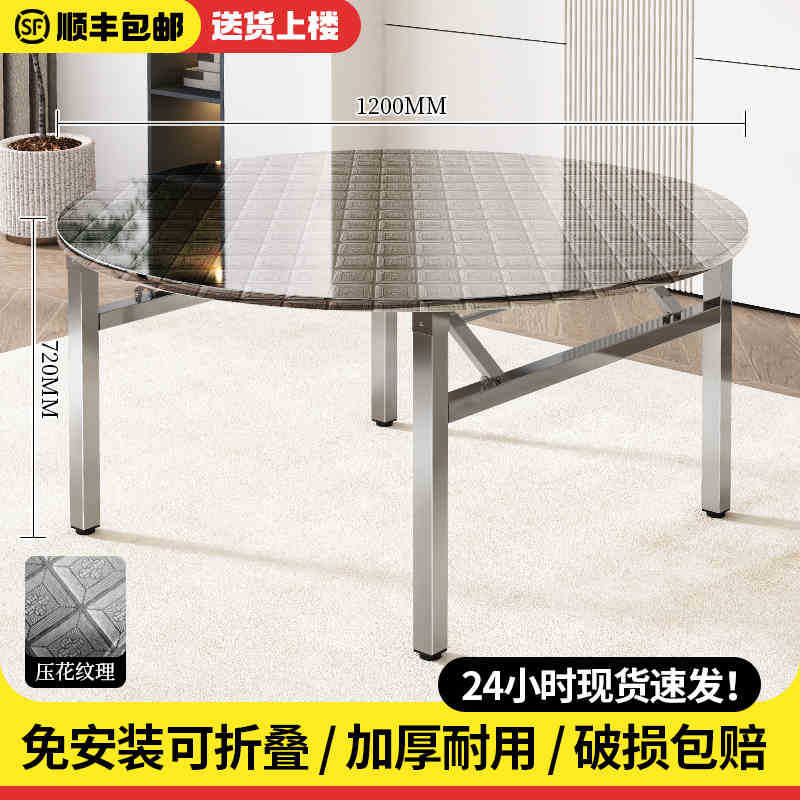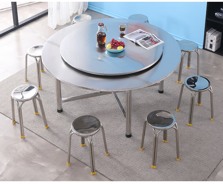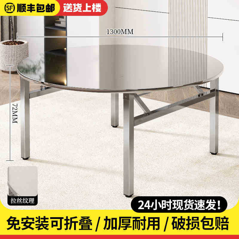 304 스테인레스 스틸 라운드 테이블 접히는 라운드 다이닝 테이블 가정용 큰 원탁 테이블 라운드 테이블 라운드 두꺼운 충칭스토어 가기