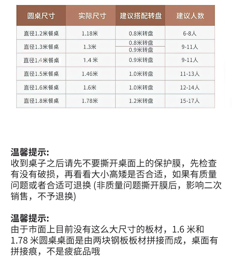 • 15-두꺼운 모델 1.8m 둥근 결합 테이블 브러시 표면_ 1.2m 턴테이블