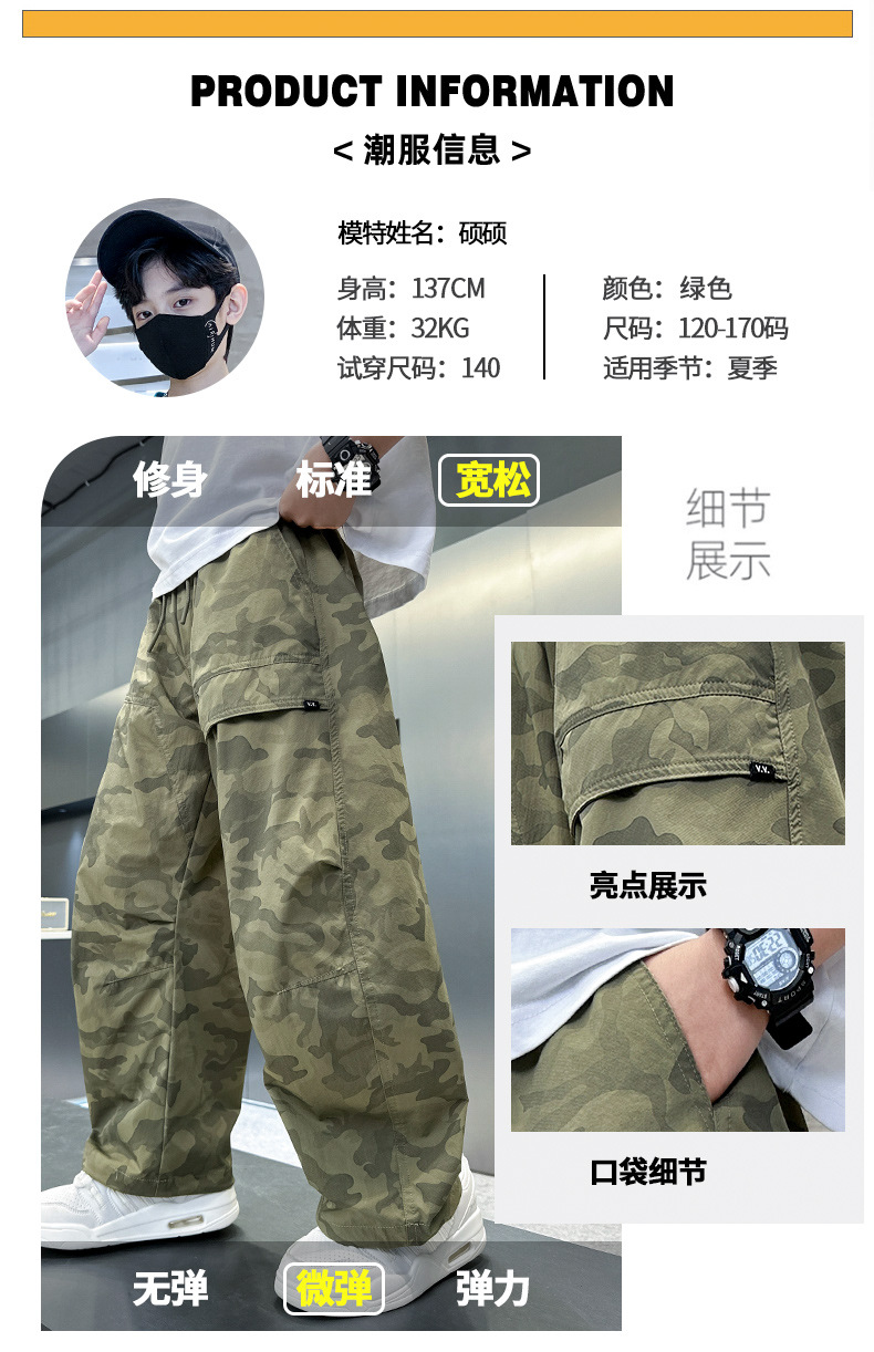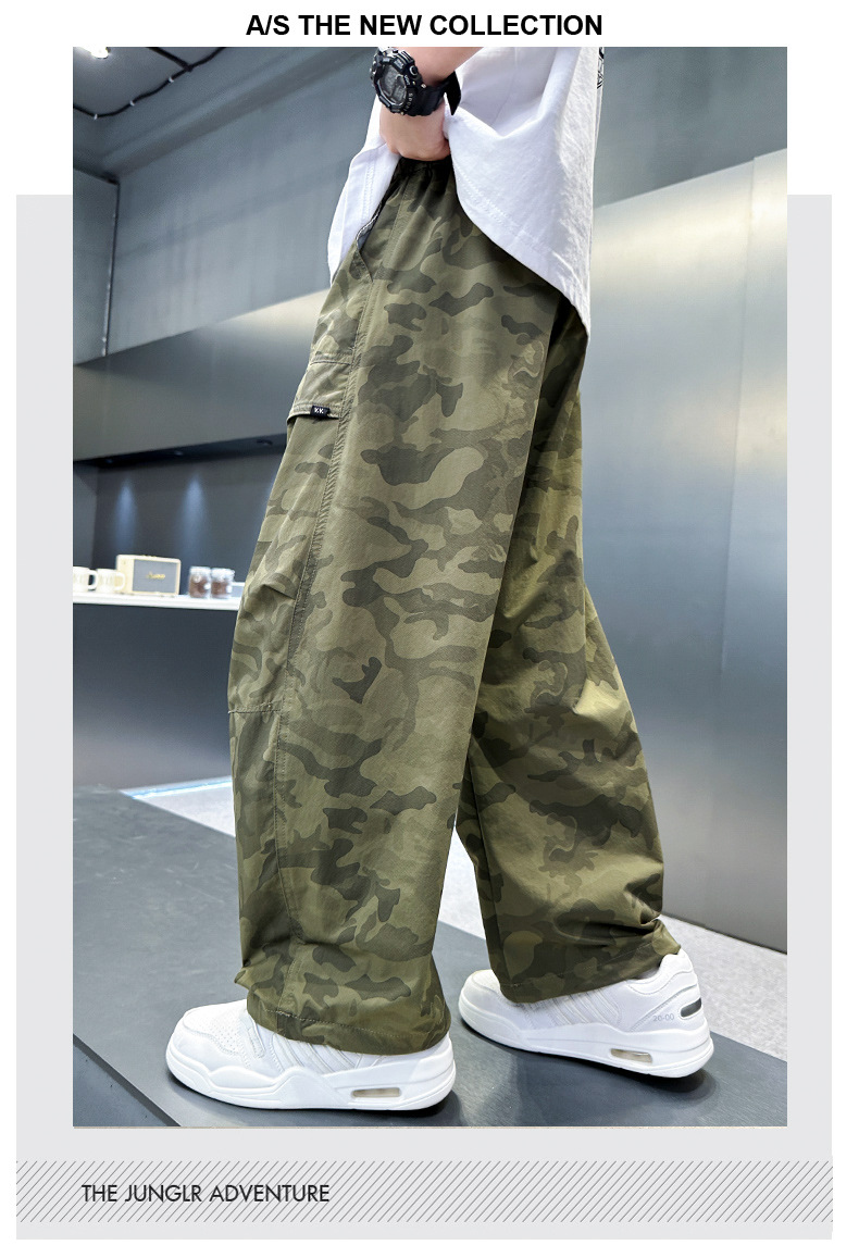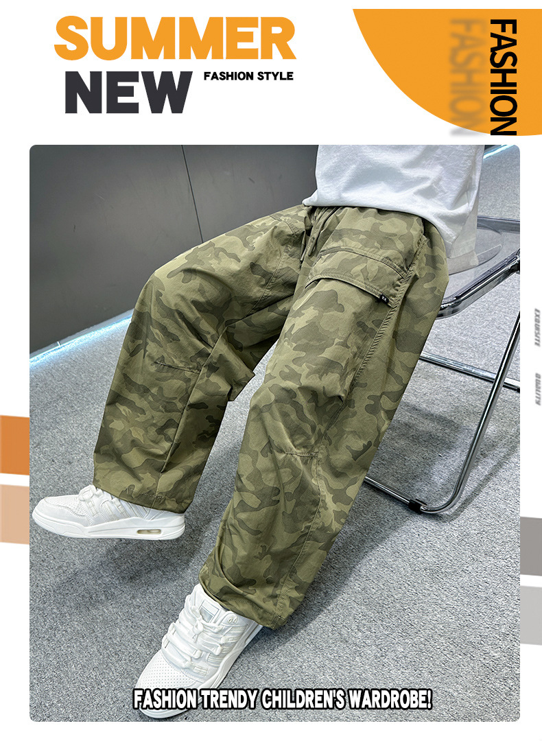 소년 여름 모기 방지 바지 2025 새로운 얇은 바지 큰 어린이 캐주얼 여름 느슨한 소년 위장 작업복스토어 가기