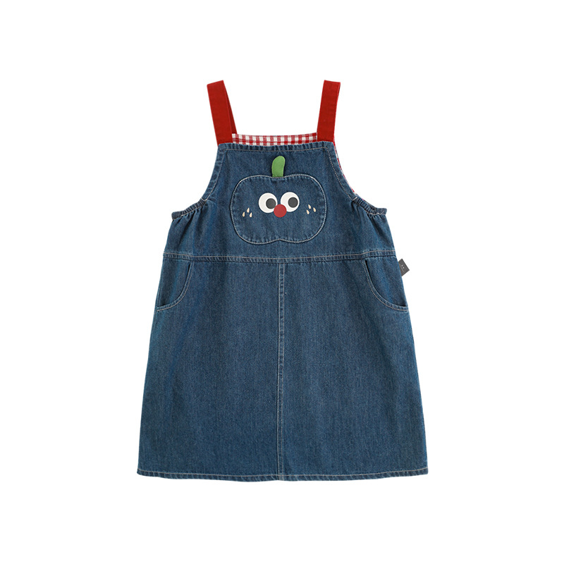 Wulib 한 소녀의 행복한 농장 시리즈 2025 여름 어린이 사과 모양의 옷깃 셔츠 데님 반바지스토어 가기