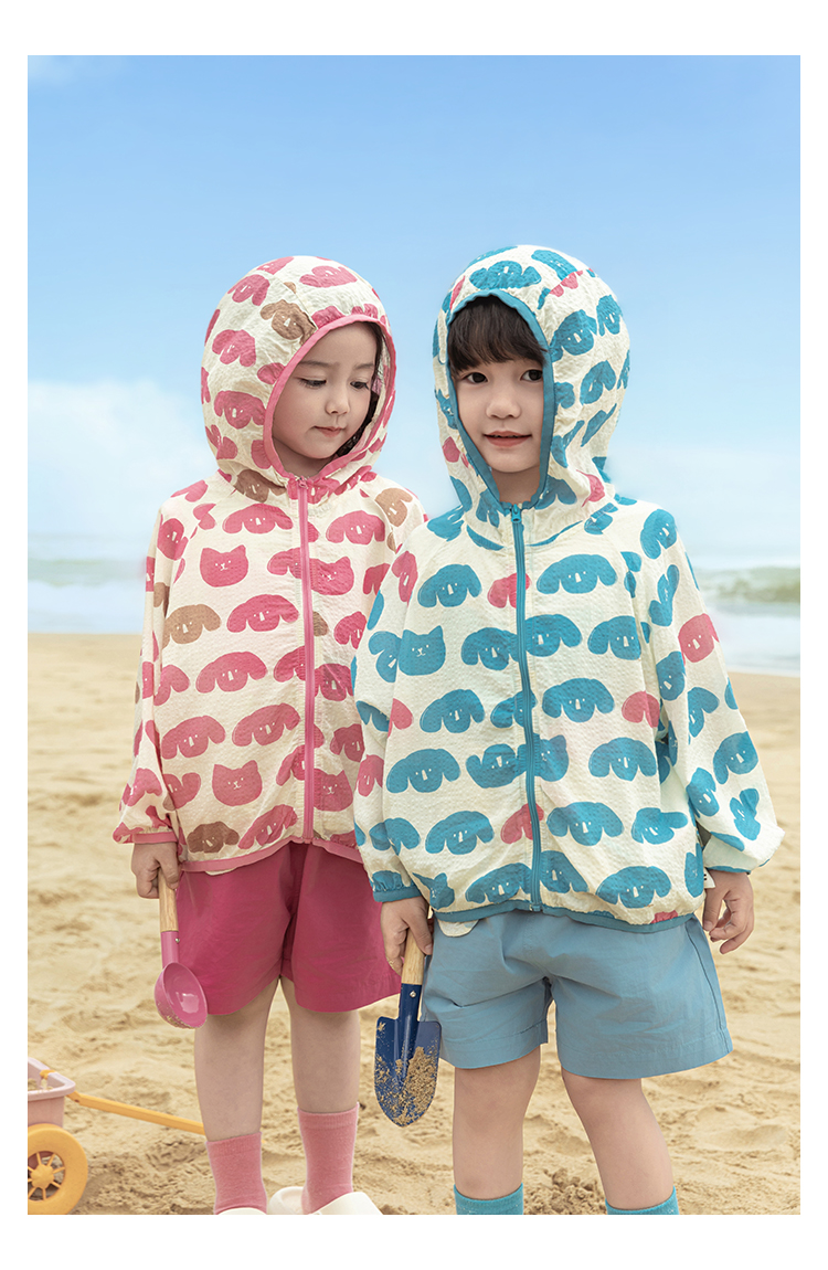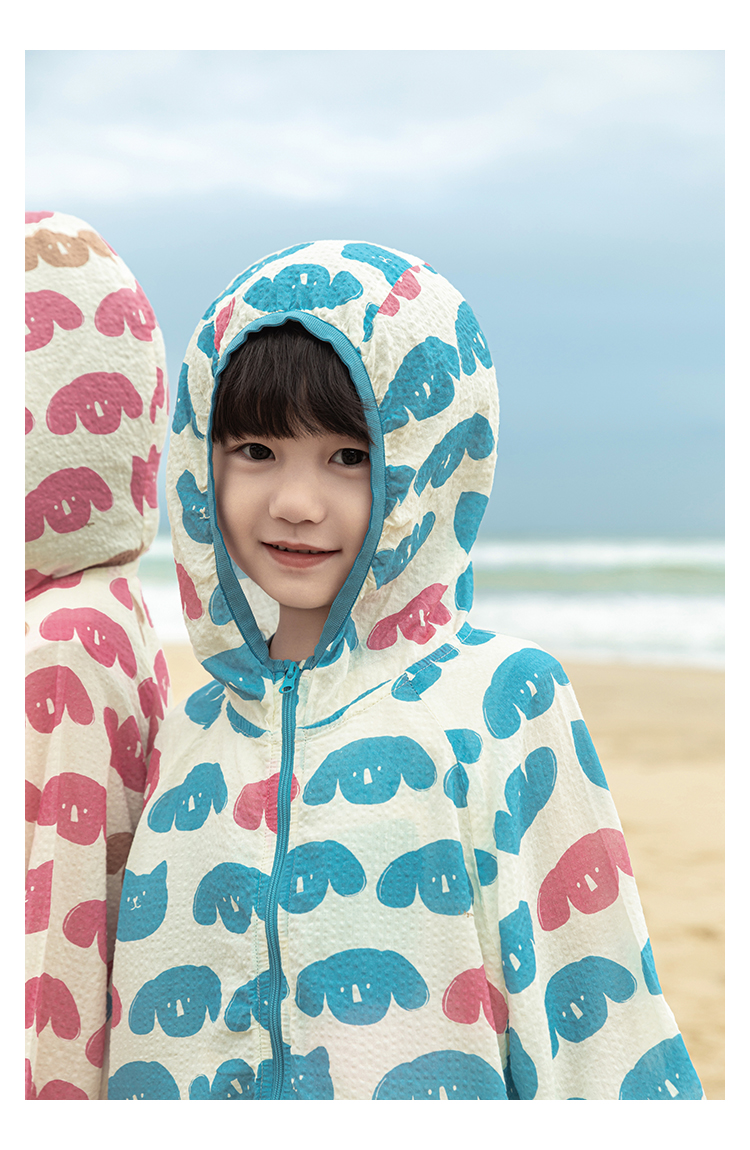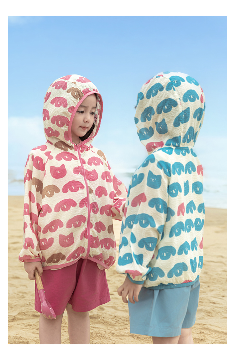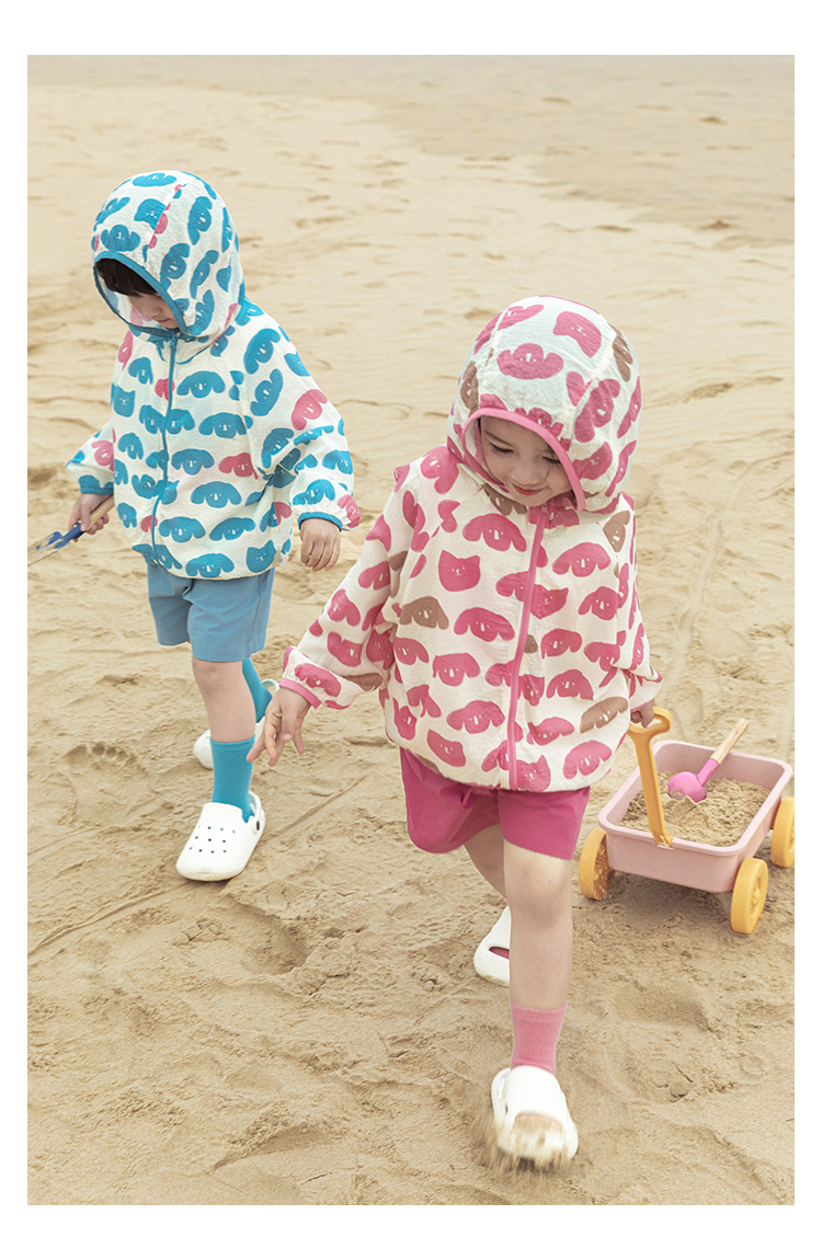 Wulibuyi 소녀의 재미있는 야외 후드 자외선 차단 의류 여름 새로운 어린이의 가볍고 시원한 자외선 차단 재킷 유행스토어 가기