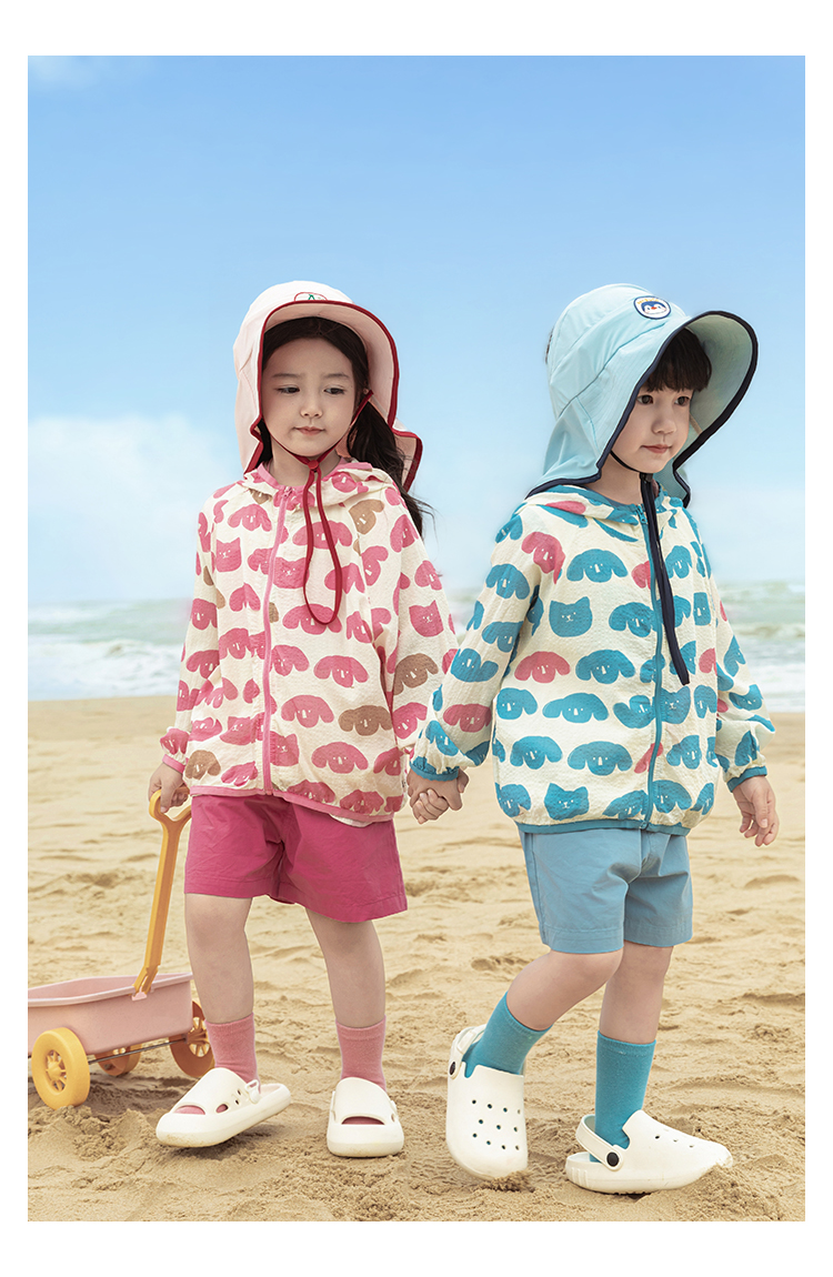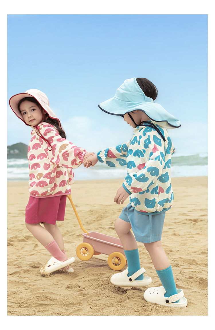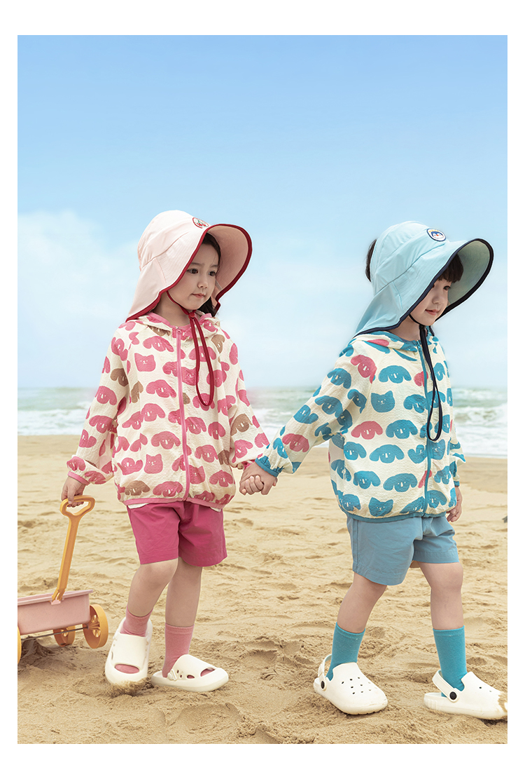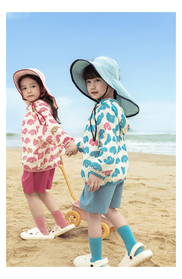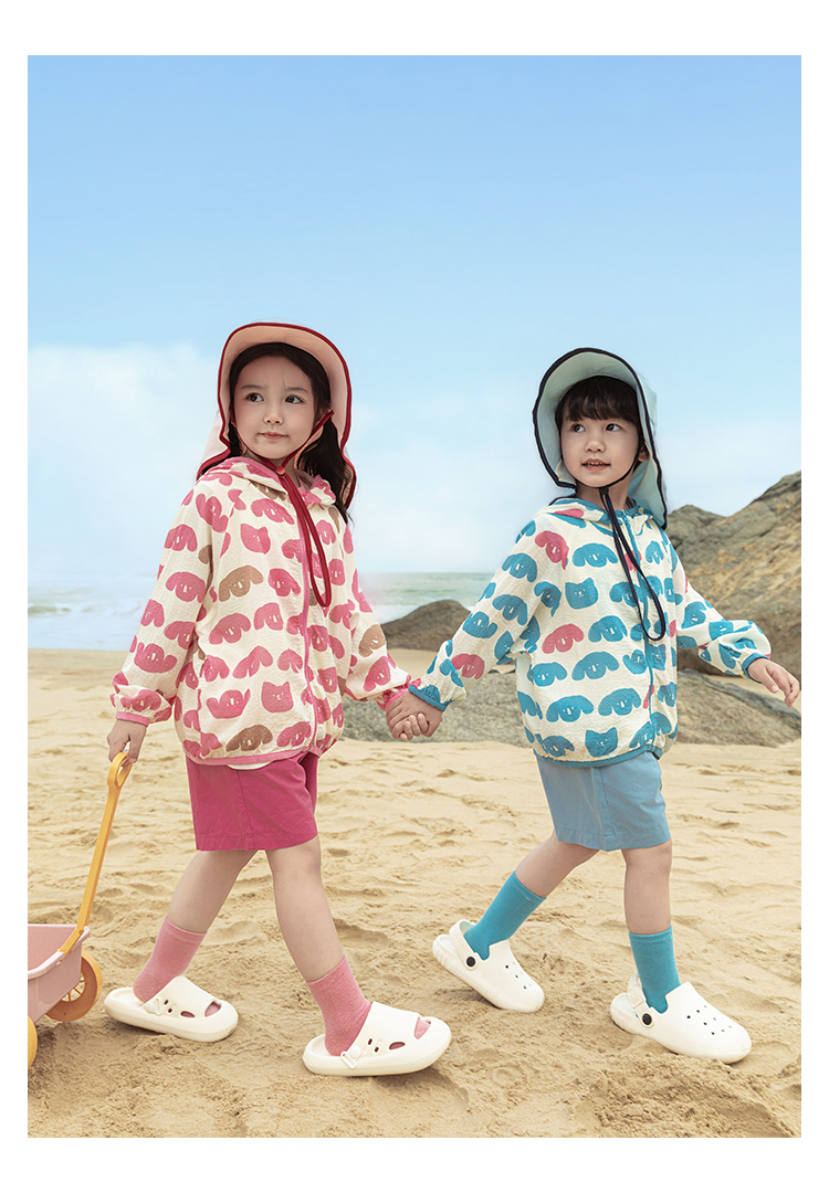 Wulibuyi 소녀의 재미있는 야외 후드 자외선 차단 의류 여름 새로운 어린이의 가볍고 시원한 자외선 차단 재킷 유행스토어 가기