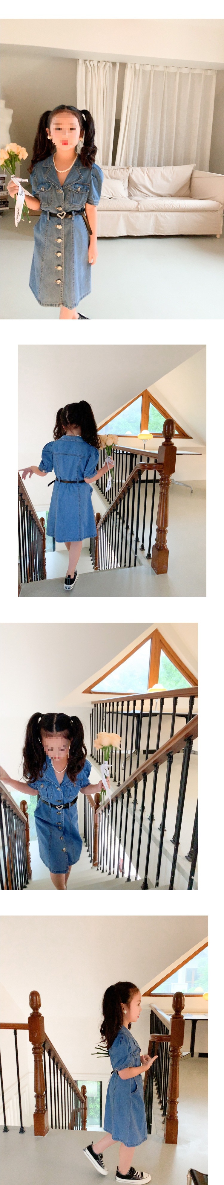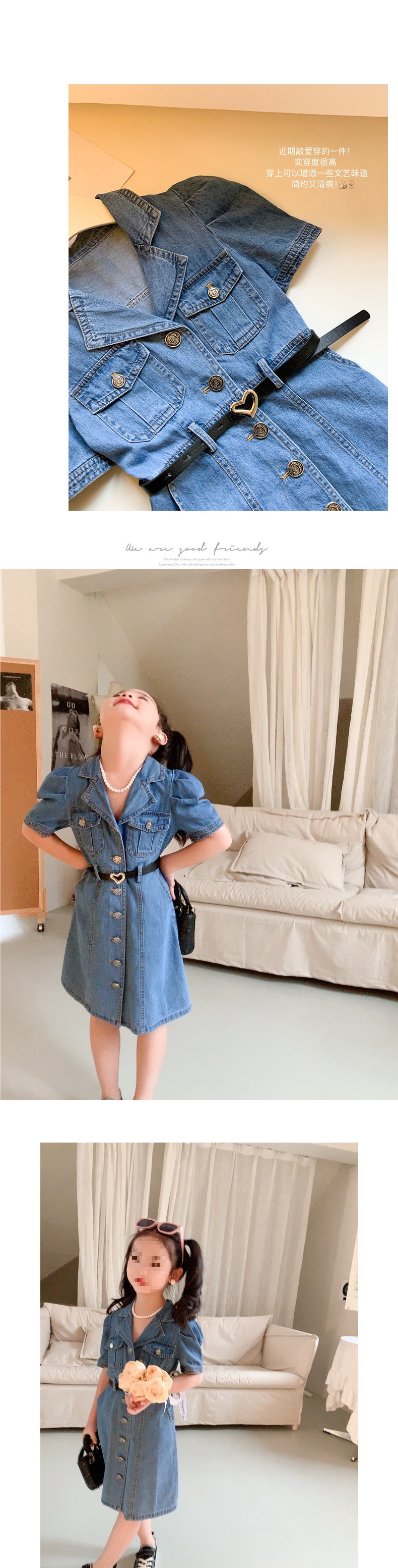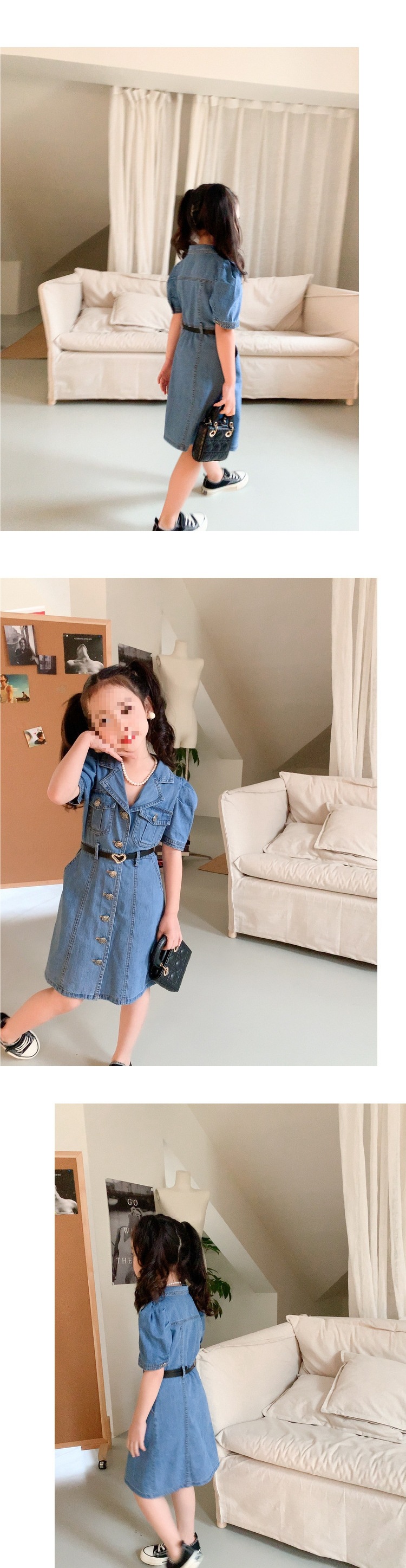2024 여름 소녀 패션 데님 원피스 얇은 버블 슬리브 기질 레트로 올 매치 버튼 스커트 트렌드스토어 가기