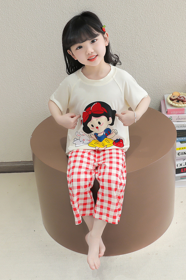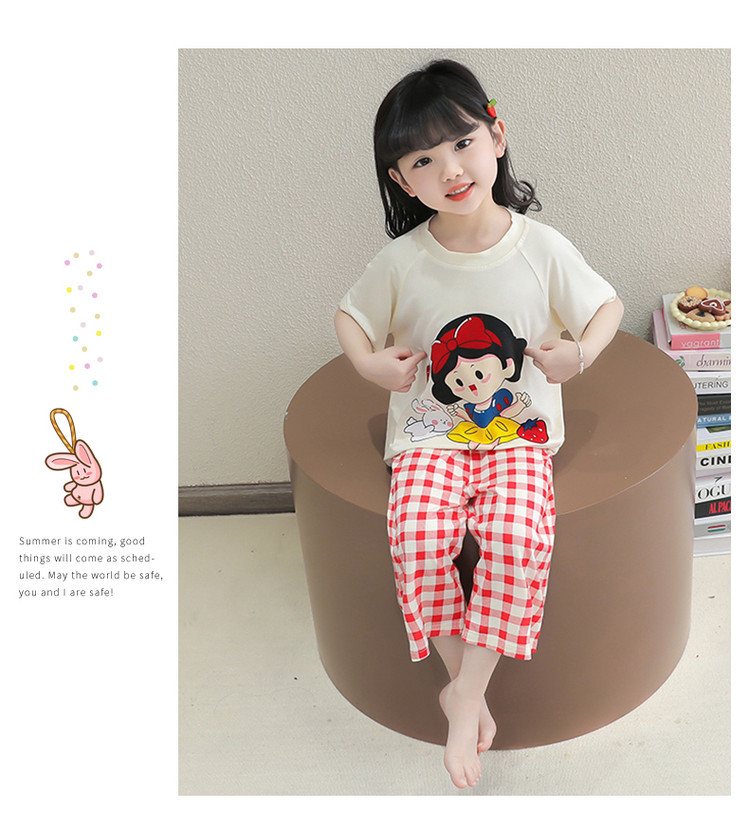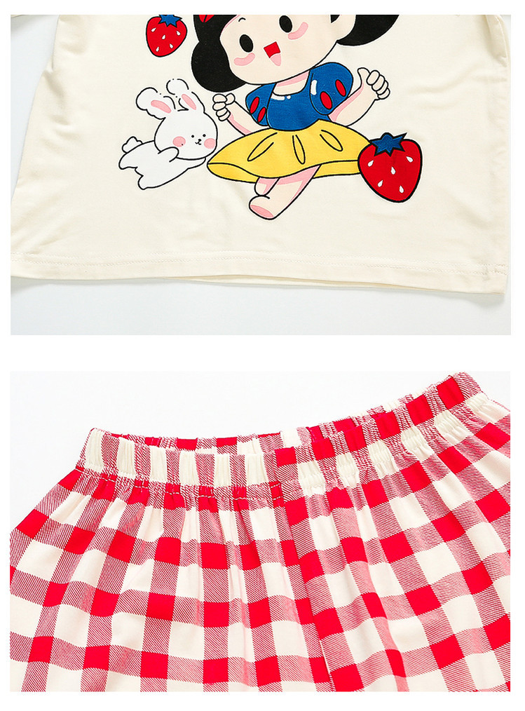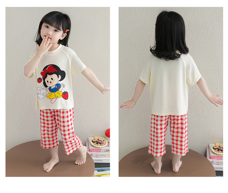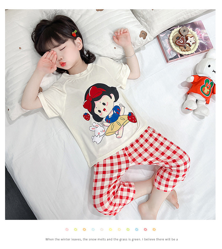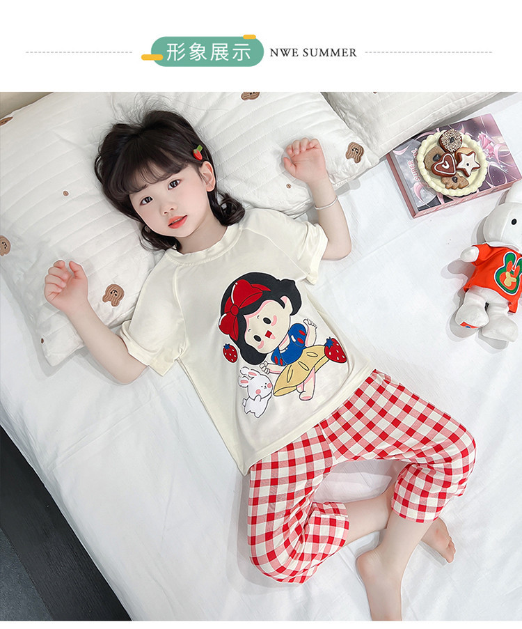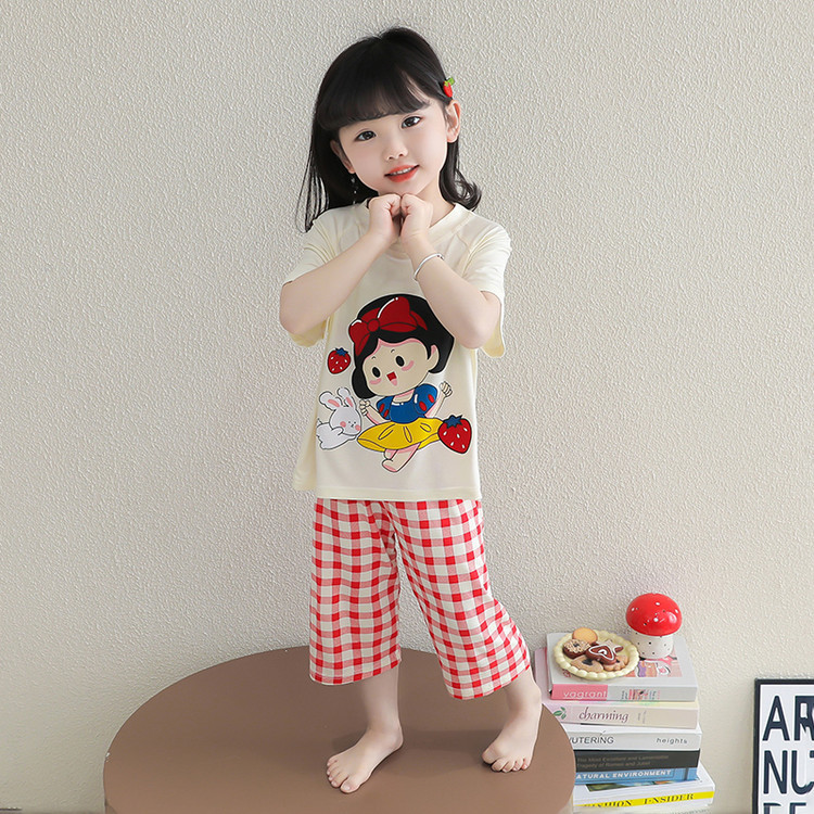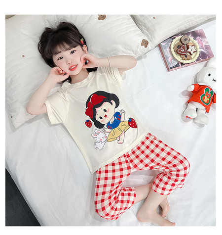 소녀의 만화 잠옷 여름 얇은 서양 스타일 소녀 아기 백설 공주 짧은 소매 Prellis 바지 홈 의류 세트스토어 가기