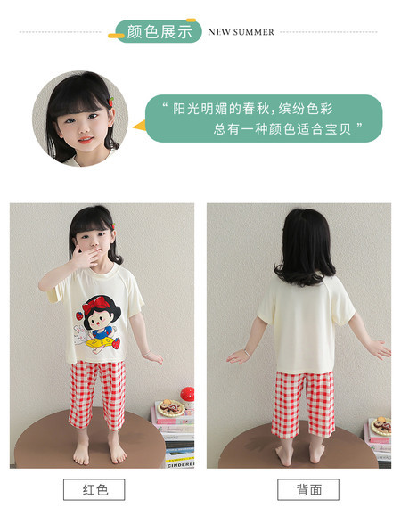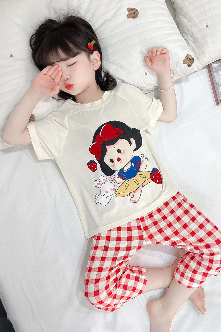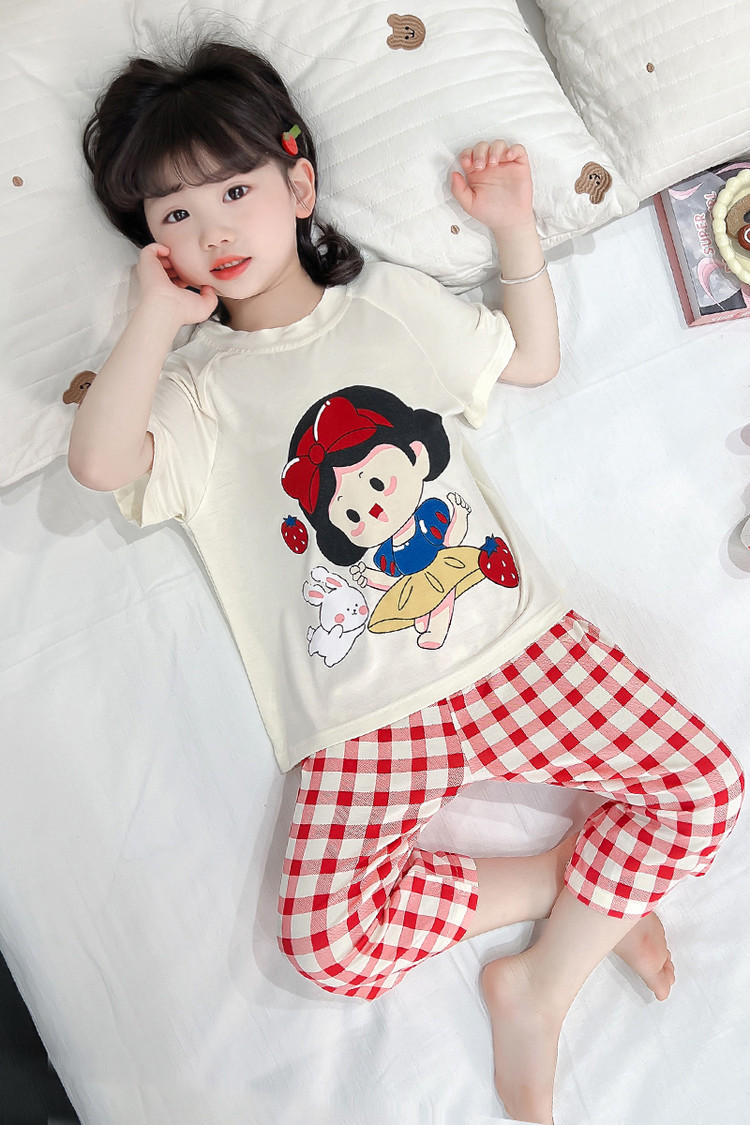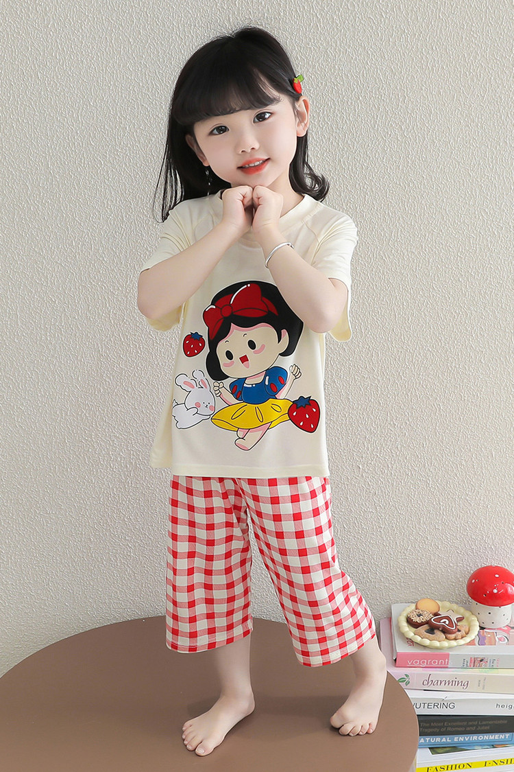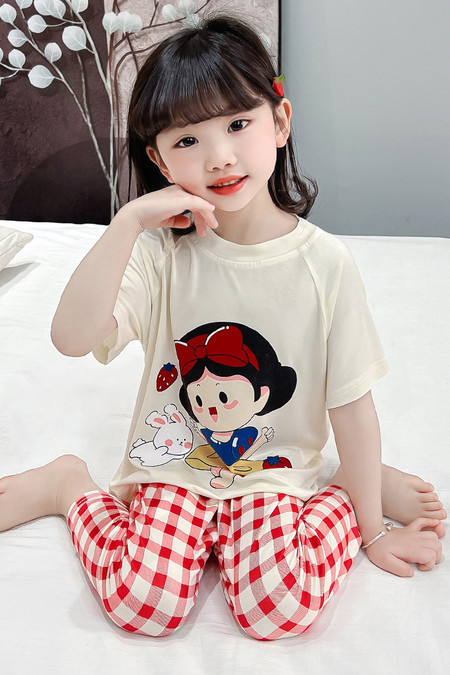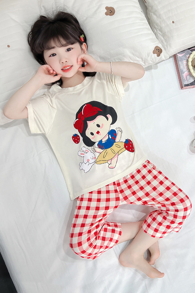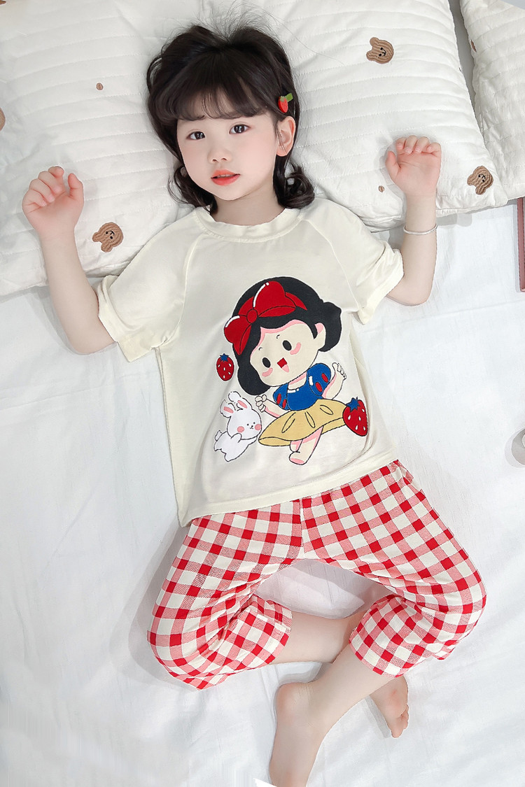 소녀의 만화 잠옷 여름 얇은 서양 스타일 소녀 아기 백설 공주 짧은 소매 Prellis 바지 홈 의류 세트스토어 가기