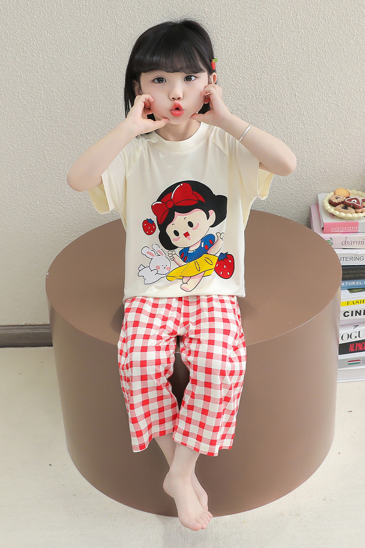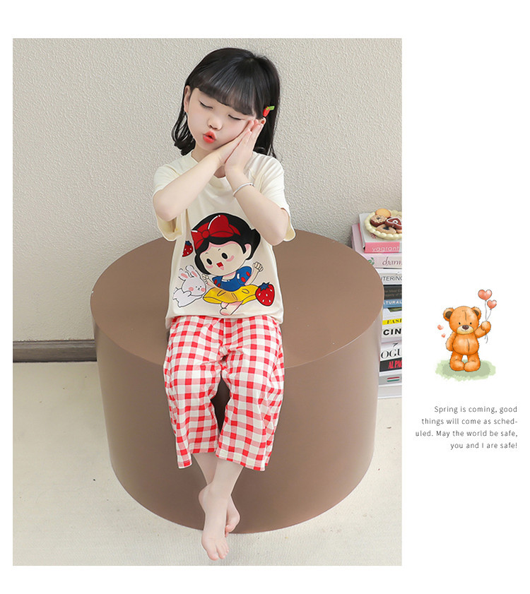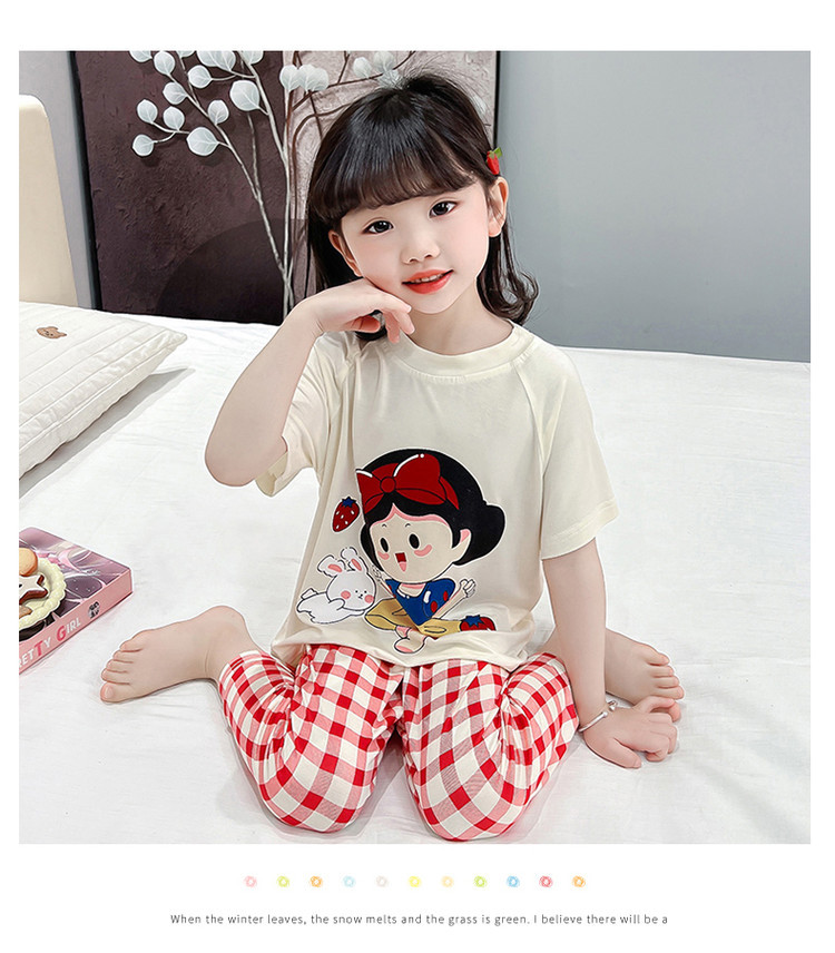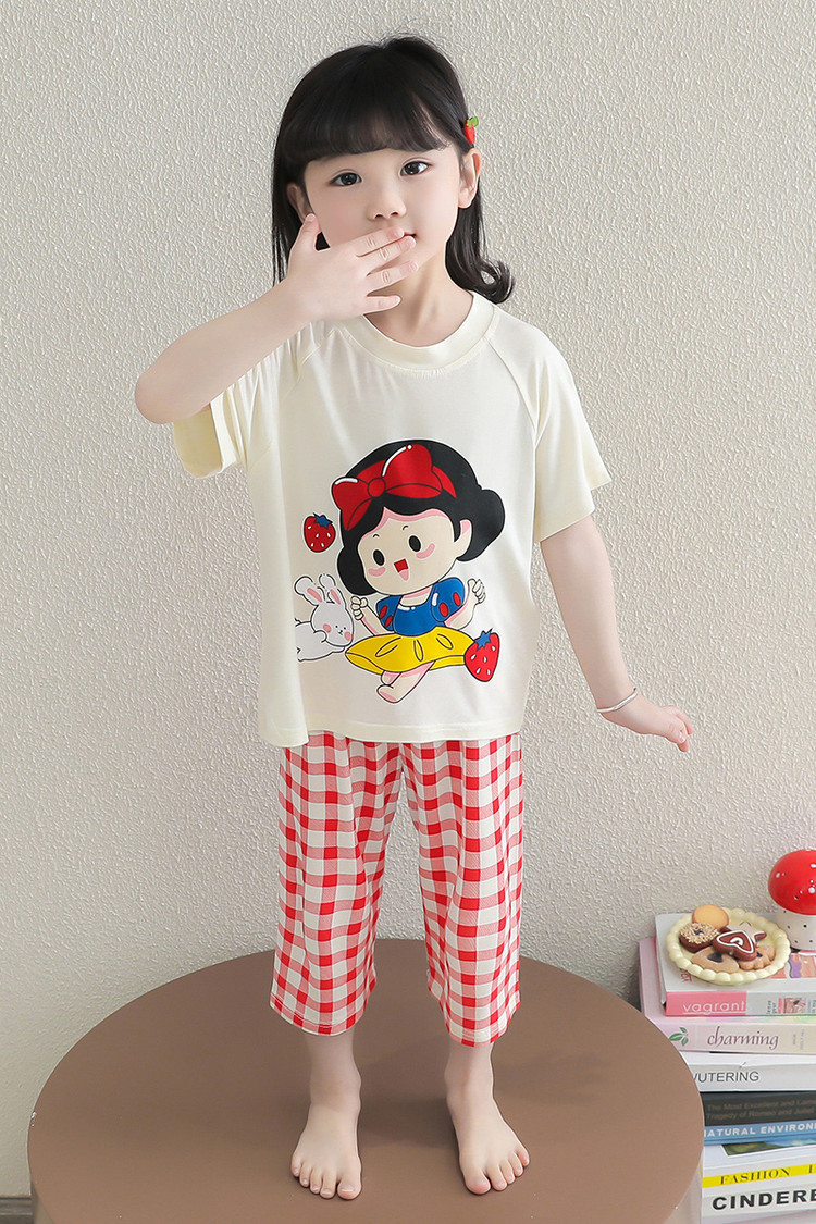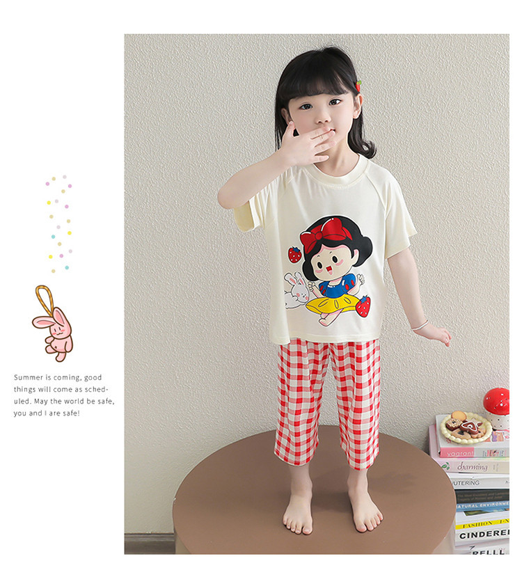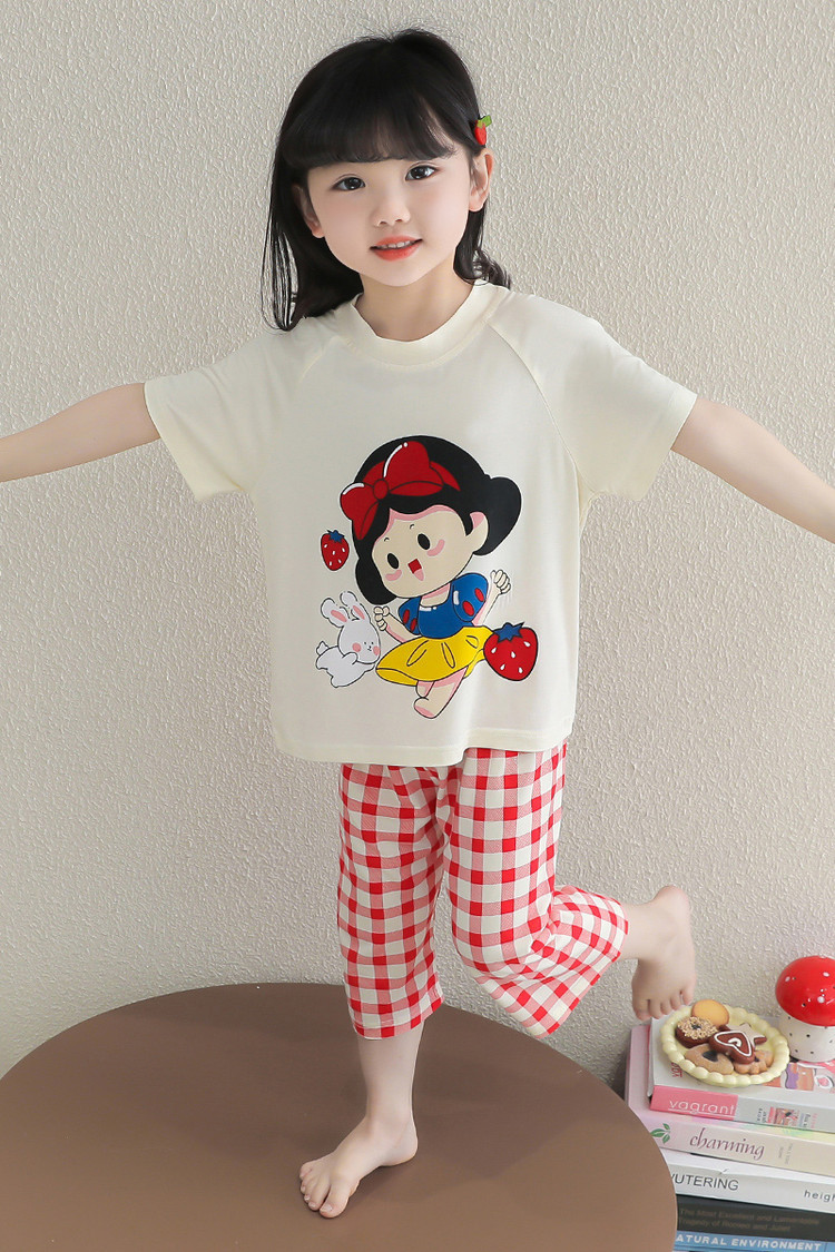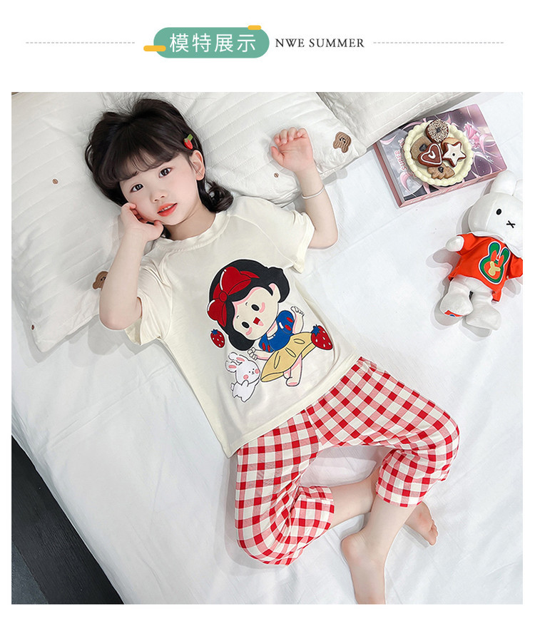 소녀의 만화 잠옷 여름 얇은 서양 스타일 소녀 아기 백설 공주 짧은 소매 Prellis 바지 홈 의류 세트스토어 가기