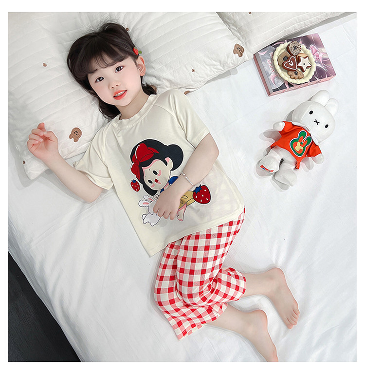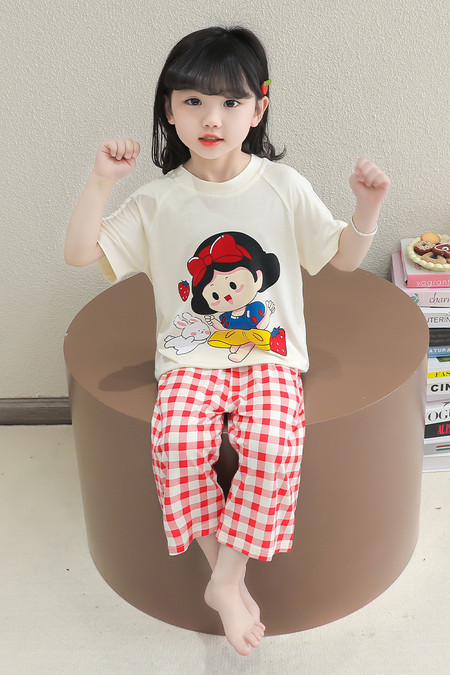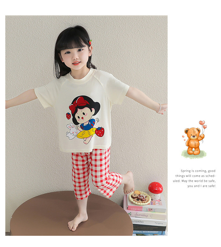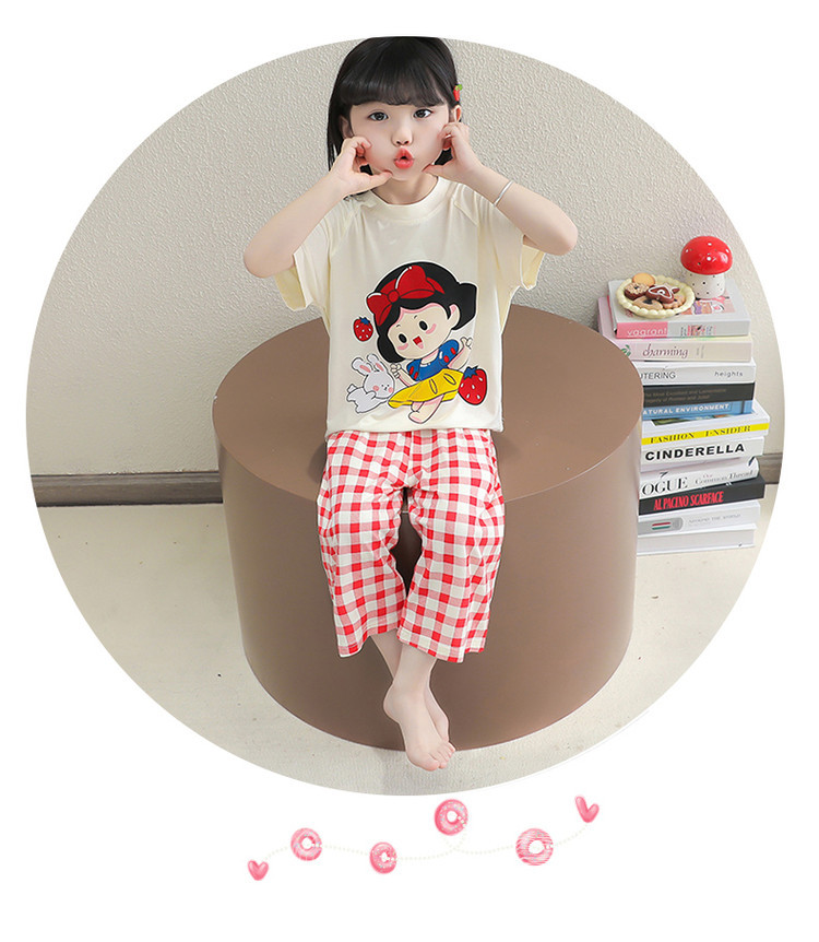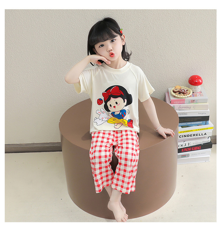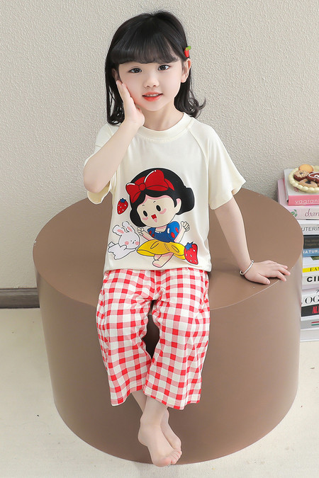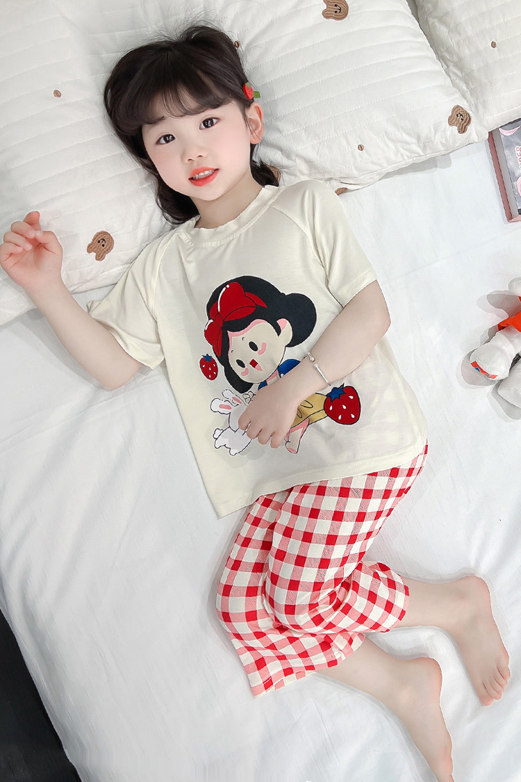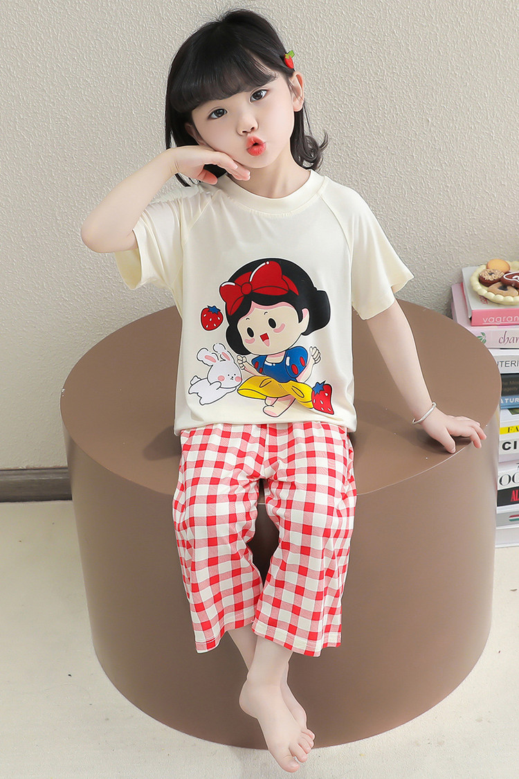 소녀의 만화 잠옷 여름 얇은 서양 스타일 소녀 아기 백설 공주 짧은 소매 Prellis 바지 홈 의류 세트스토어 가기