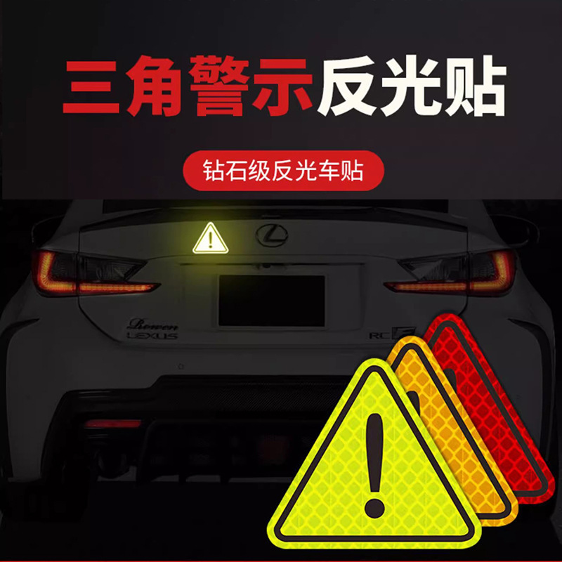 삼각형 경고 반사 스티커 안전 경고 스티커 바디 스크래치 커버 창조적 인 성격 장식 자동차 스티커스토어 가기